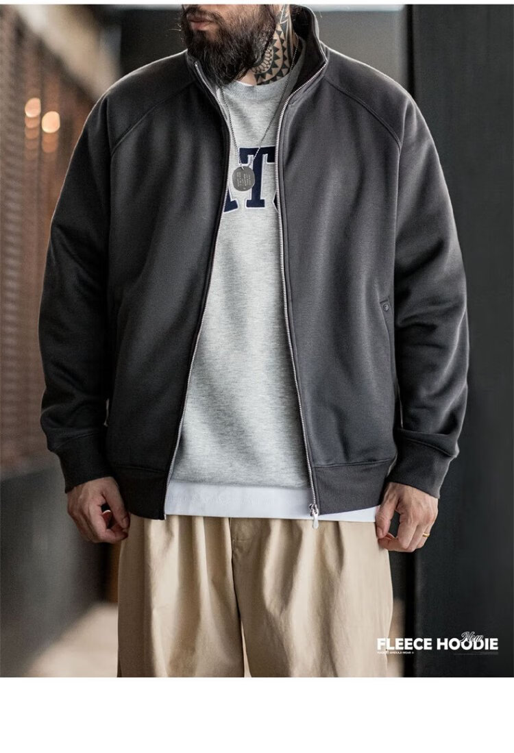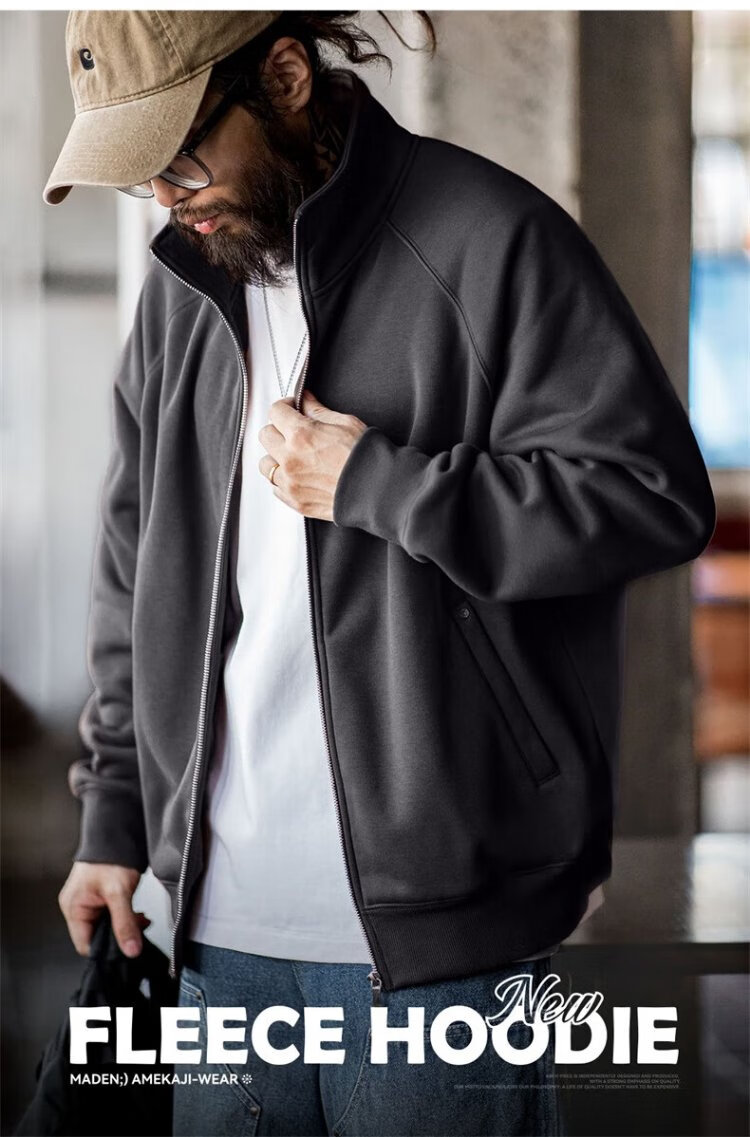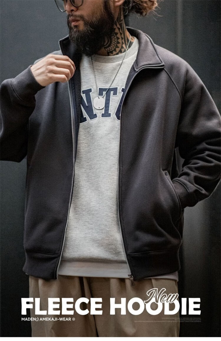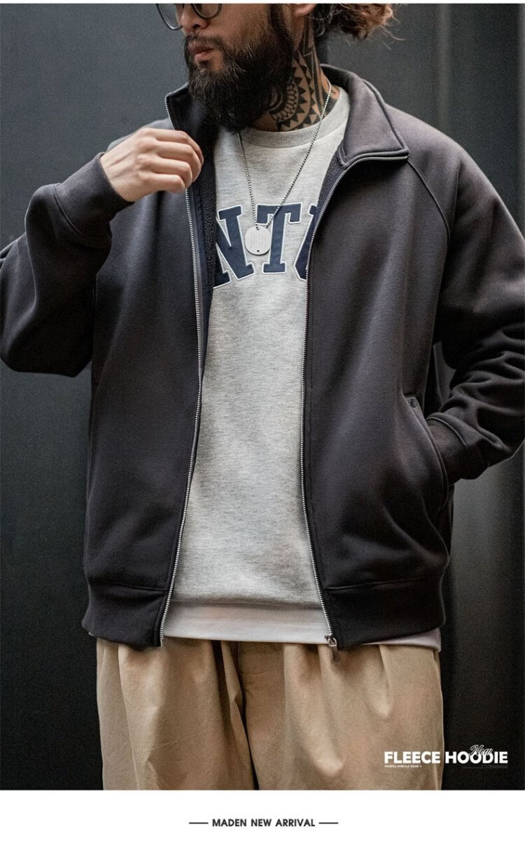 Madden Workwear American Casual Polar Fleece Cardigan Sweatshirt Men's Autumn Stand Collar Velvet Sports Zipper Jacket Dark Gray L