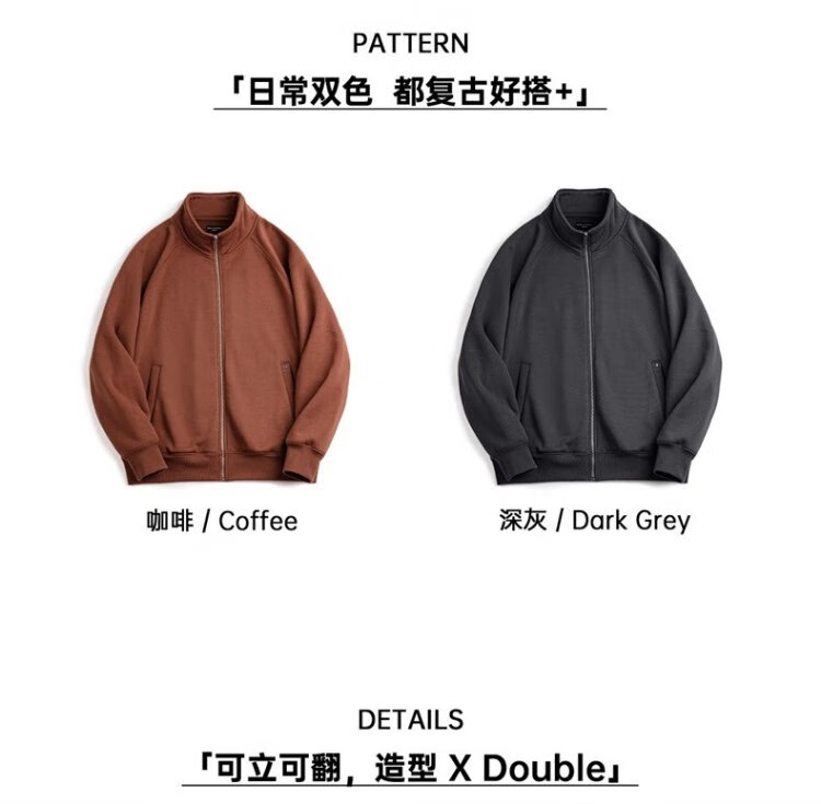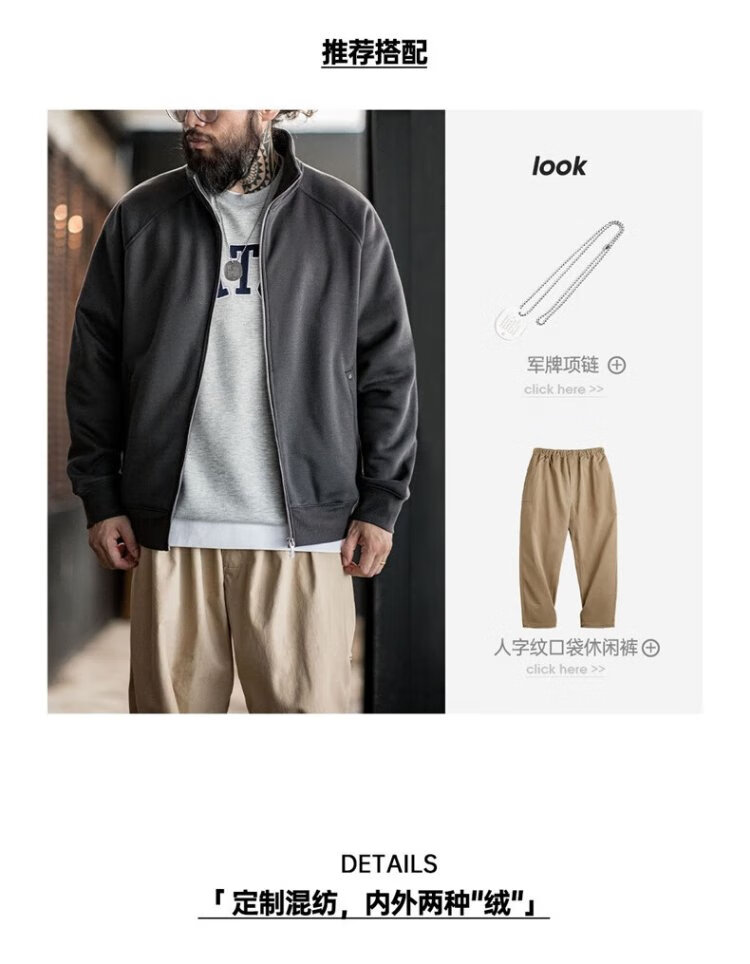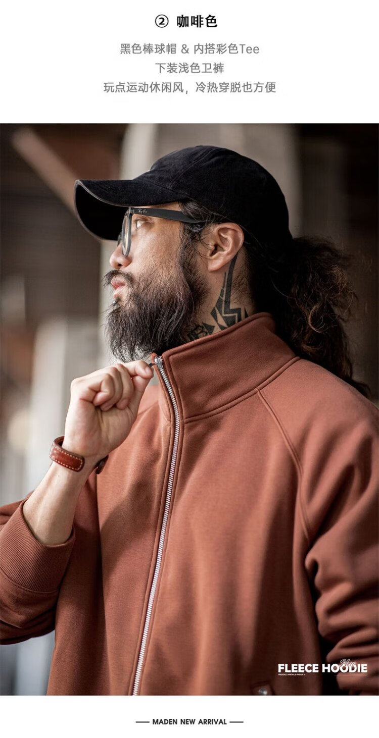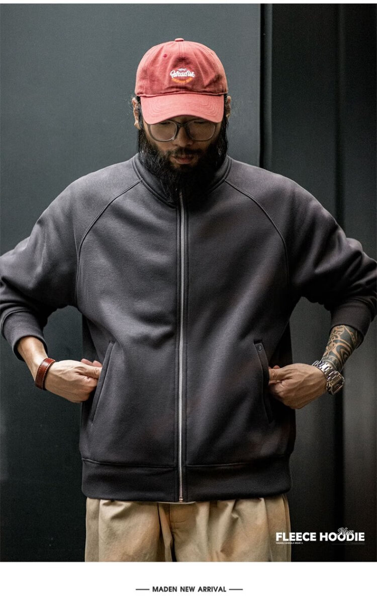 Madden Workwear American Casual Polar Fleece Cardigan Sweatshirt Men's Autumn Stand Collar Velvet Sports Zipper Jacket Dark Gray L
