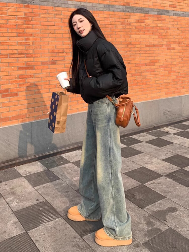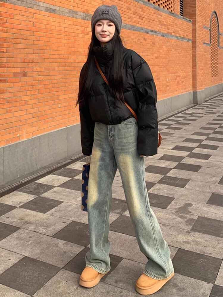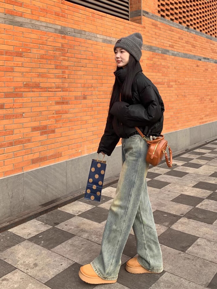 Cotton yellow mud blue slim versatile jeans for women in autumn and winter new casual pants for women loose straight wide legs plus velvet 9269 yellow mud blue plus velvet high quality 41.5 M 93-104Jin Jin equals 0.5 kg