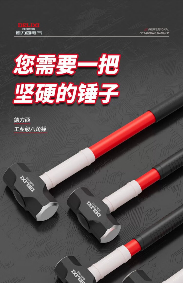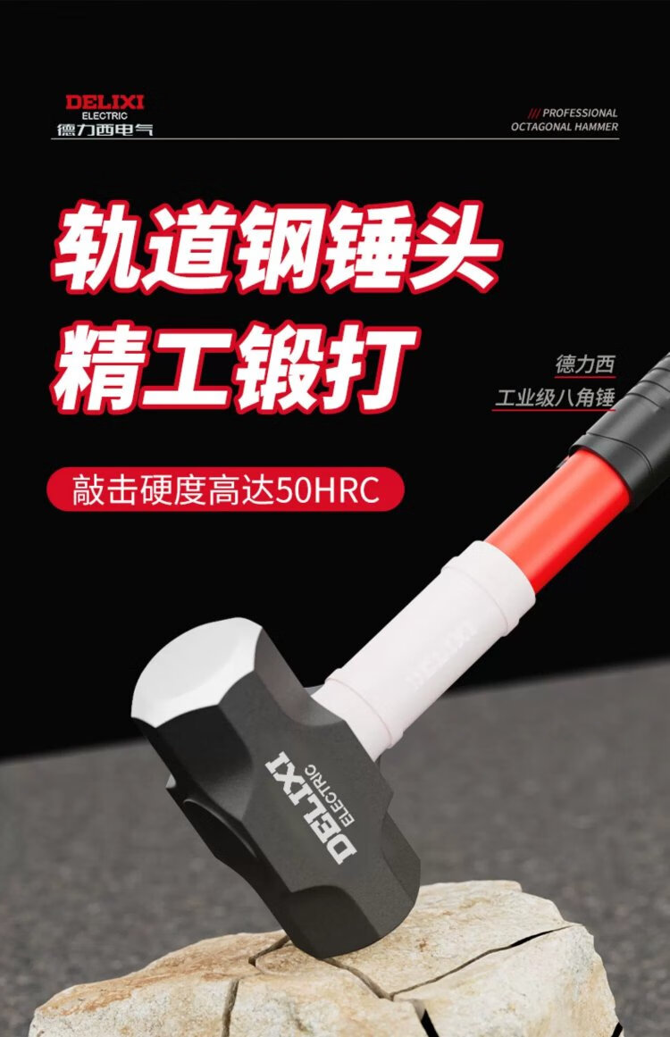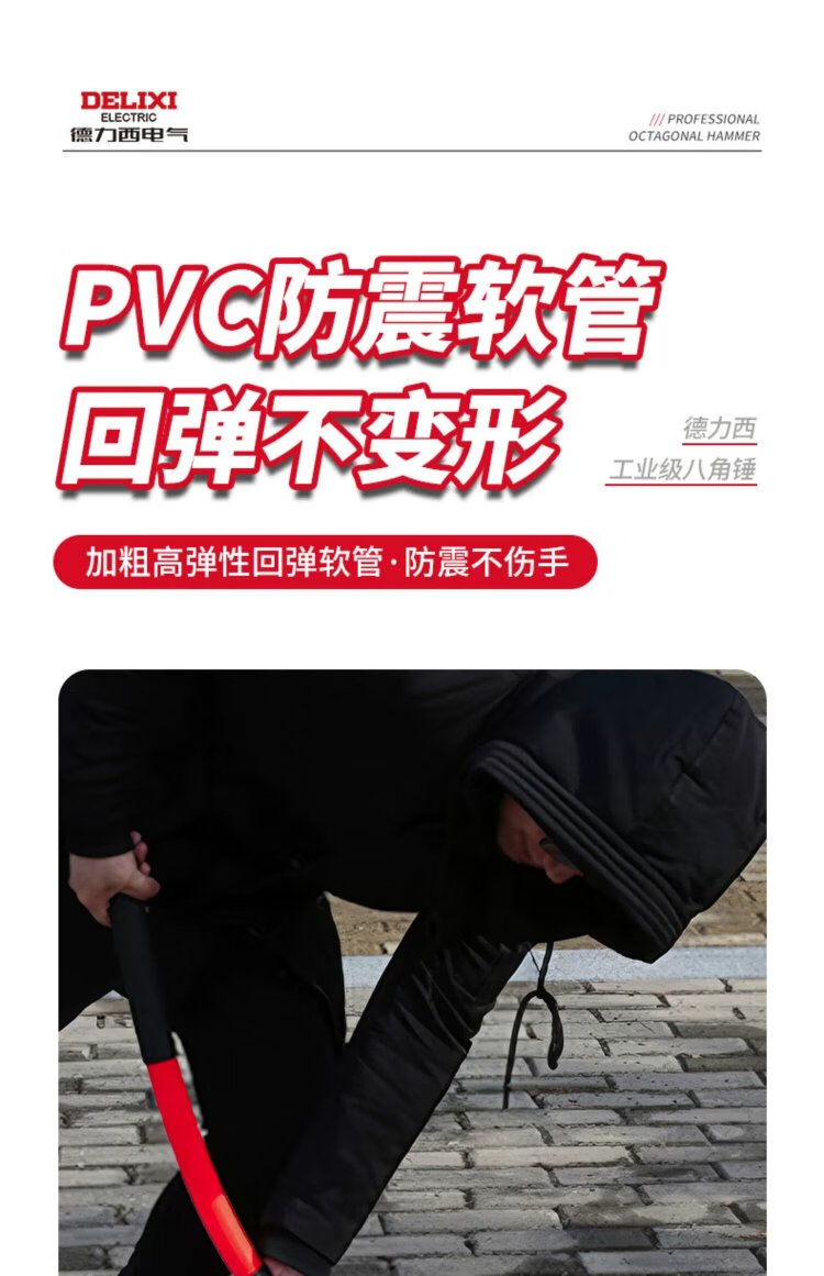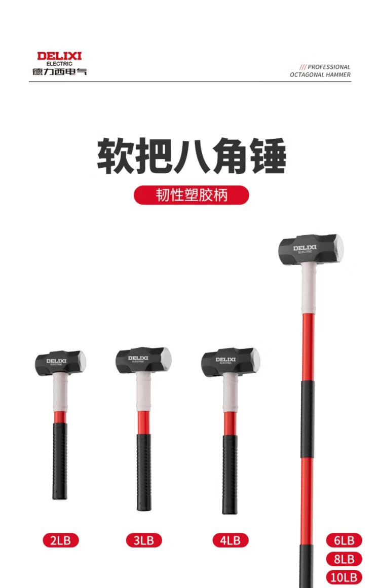 Delixi sledge hammer soft handle demolition tool rubber handle eight pound hammer construction site wall smashing artifact large hammer 8LB soft handle sledge hammer tough plastic handle + gloves