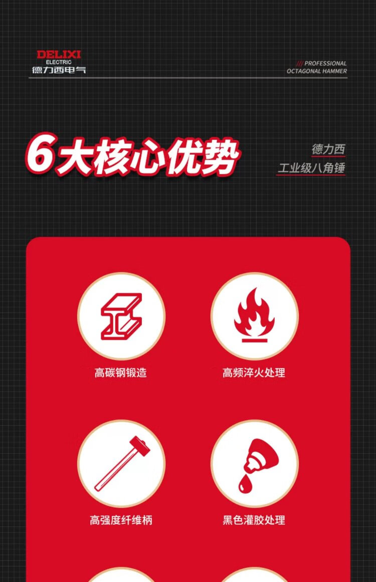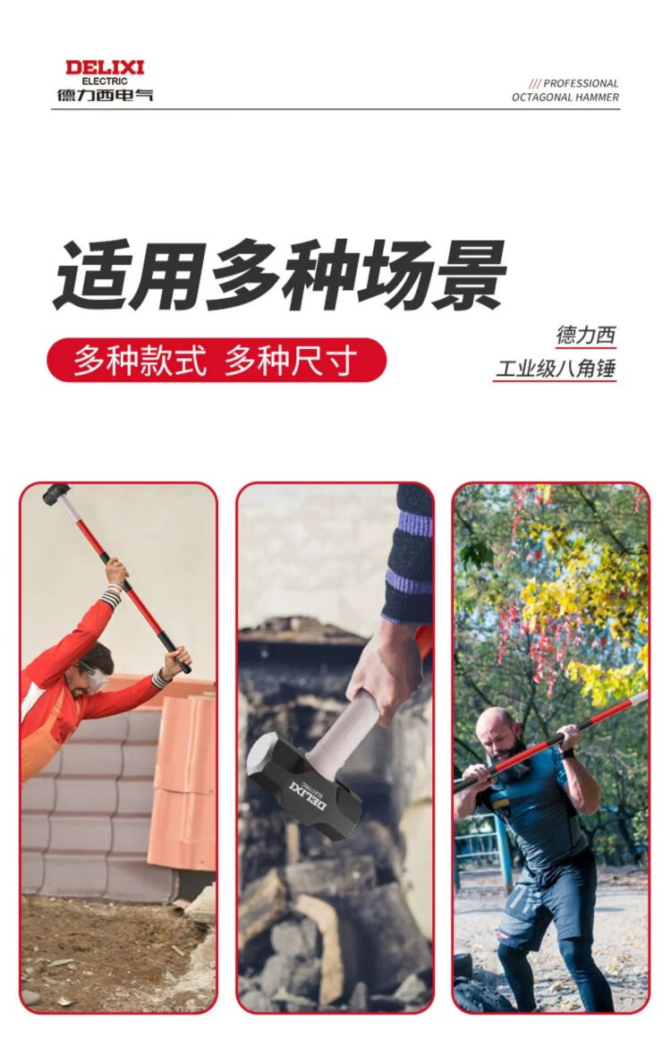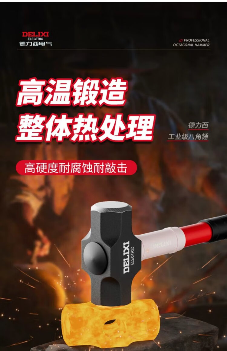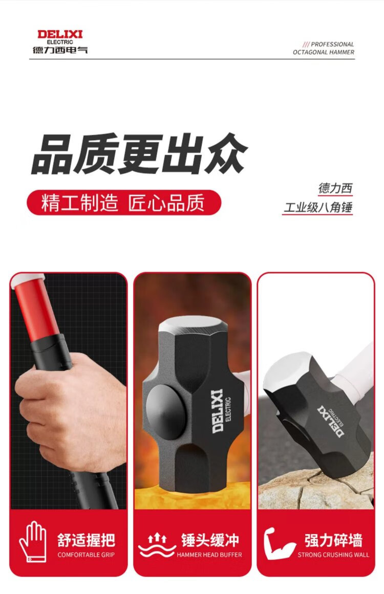 Delixi sledge hammer soft handle demolition tool rubber handle eight pound hammer construction site wall smashing artifact large hammer 8LB soft handle sledge hammer tough plastic handle + gloves