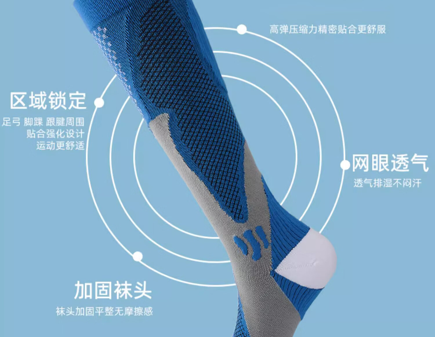 Leopard dive compression socks running stockings marathon socks pressure socks sports men and women professional fitness basketball jump rope stockings blue + black two pairs of S/M suitable for shoe sizes 36-40 compression package cushioning and wear-resistant