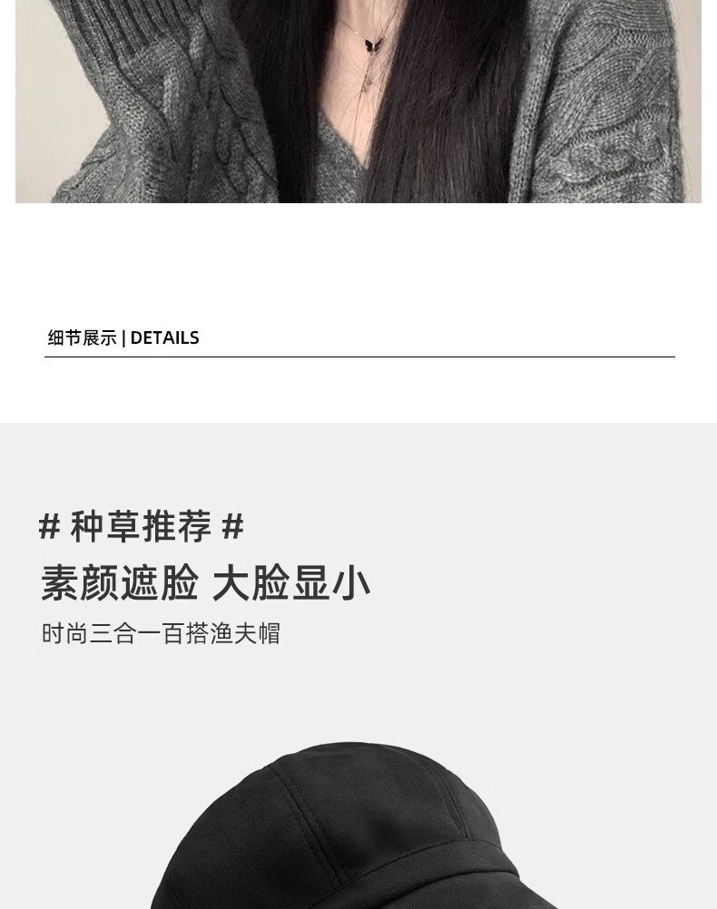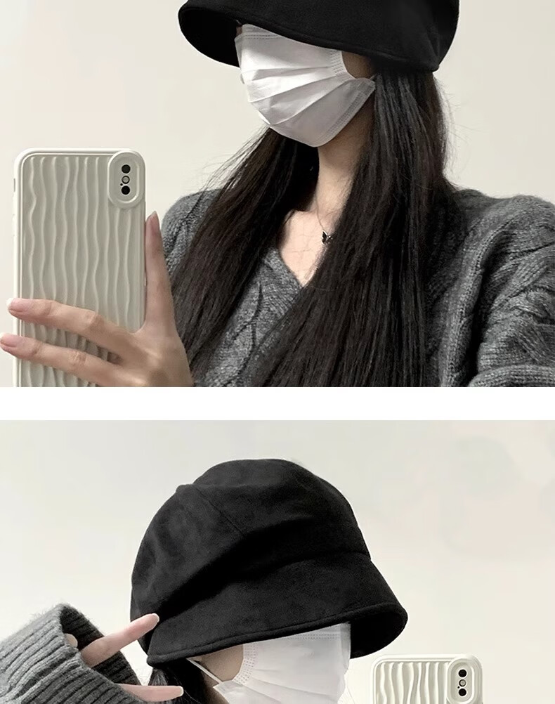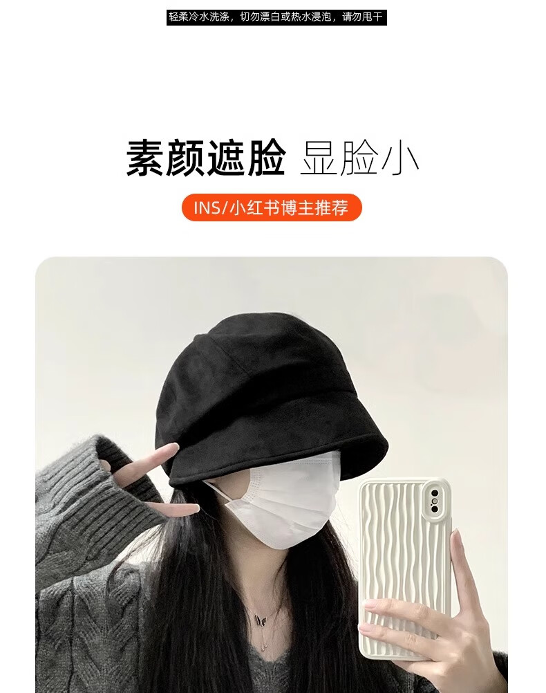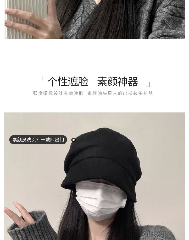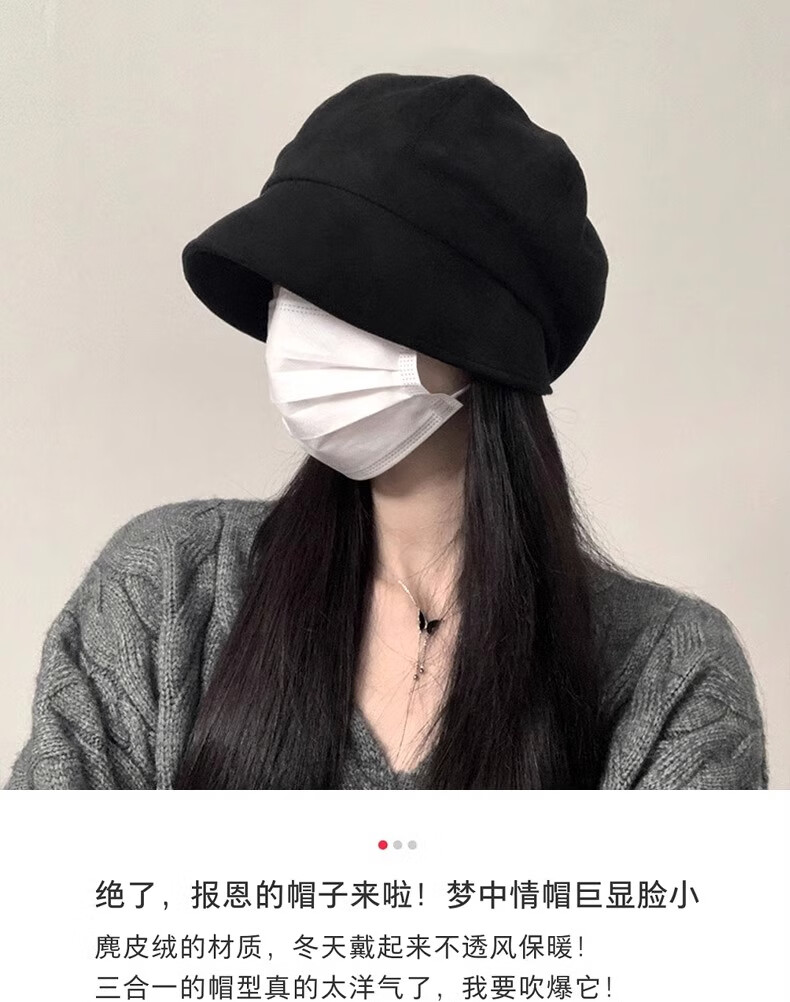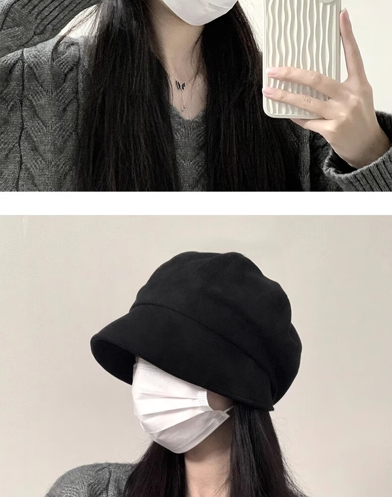 Qiao丂Beret Autumn and Winter Women's Fisherman Hat Versatile 2024 Spring and Summer New Big Head Circumference Showing Face Small Korean Printmaker Hat Three-in-One Beret