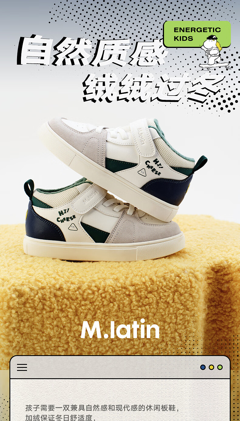 M.Latin shopping mall same style children's casual shoes winter wear new boys' spliced wear-resistant anti-skid shoes medium green size 26