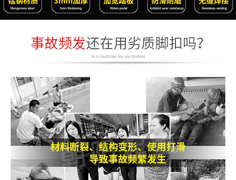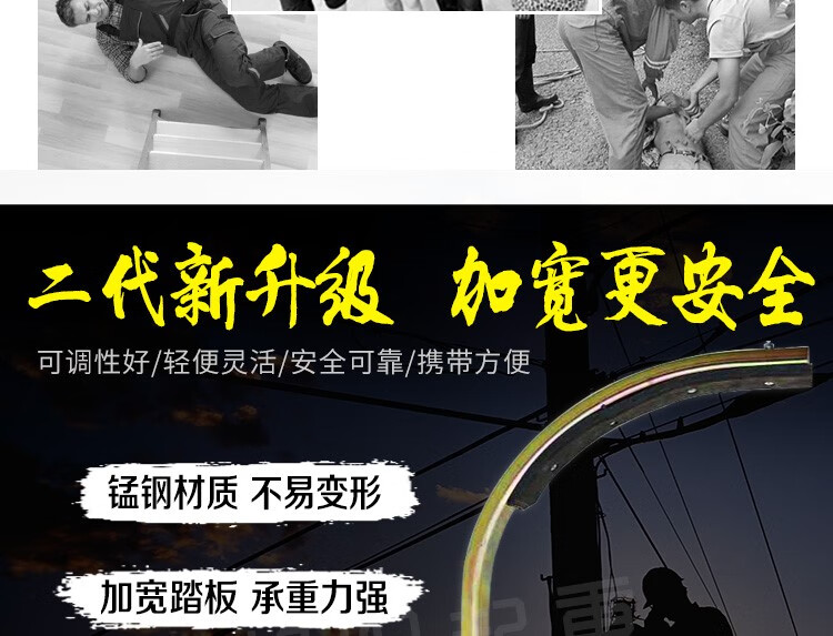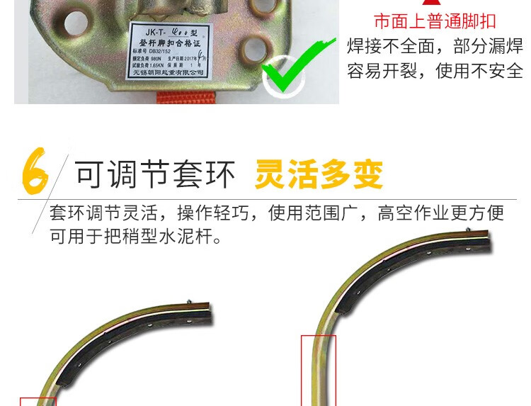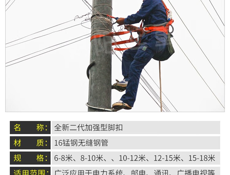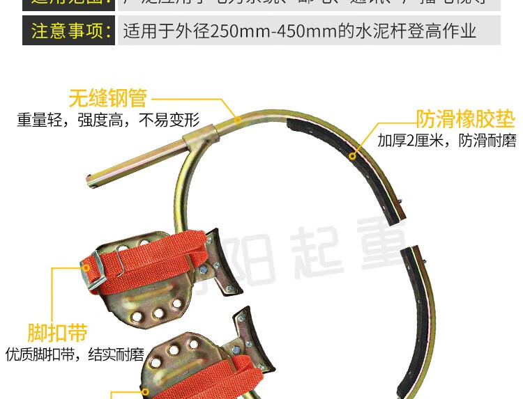 Foot hook climbing pole foot climbing power electrician cement climbing foot buckle pole climbing device electric pole artifact telegraph pole 400 type manganese steel triangle pipe + safety belt set