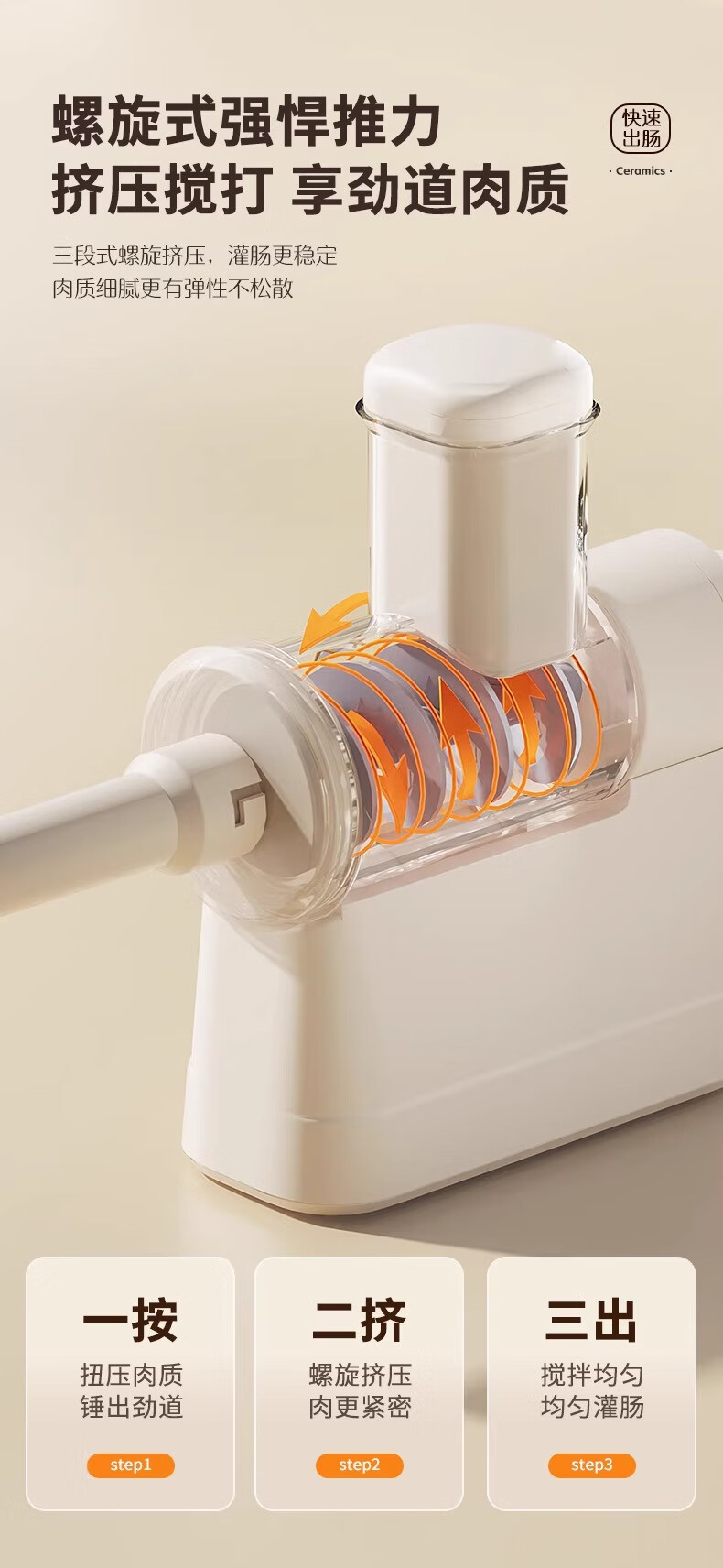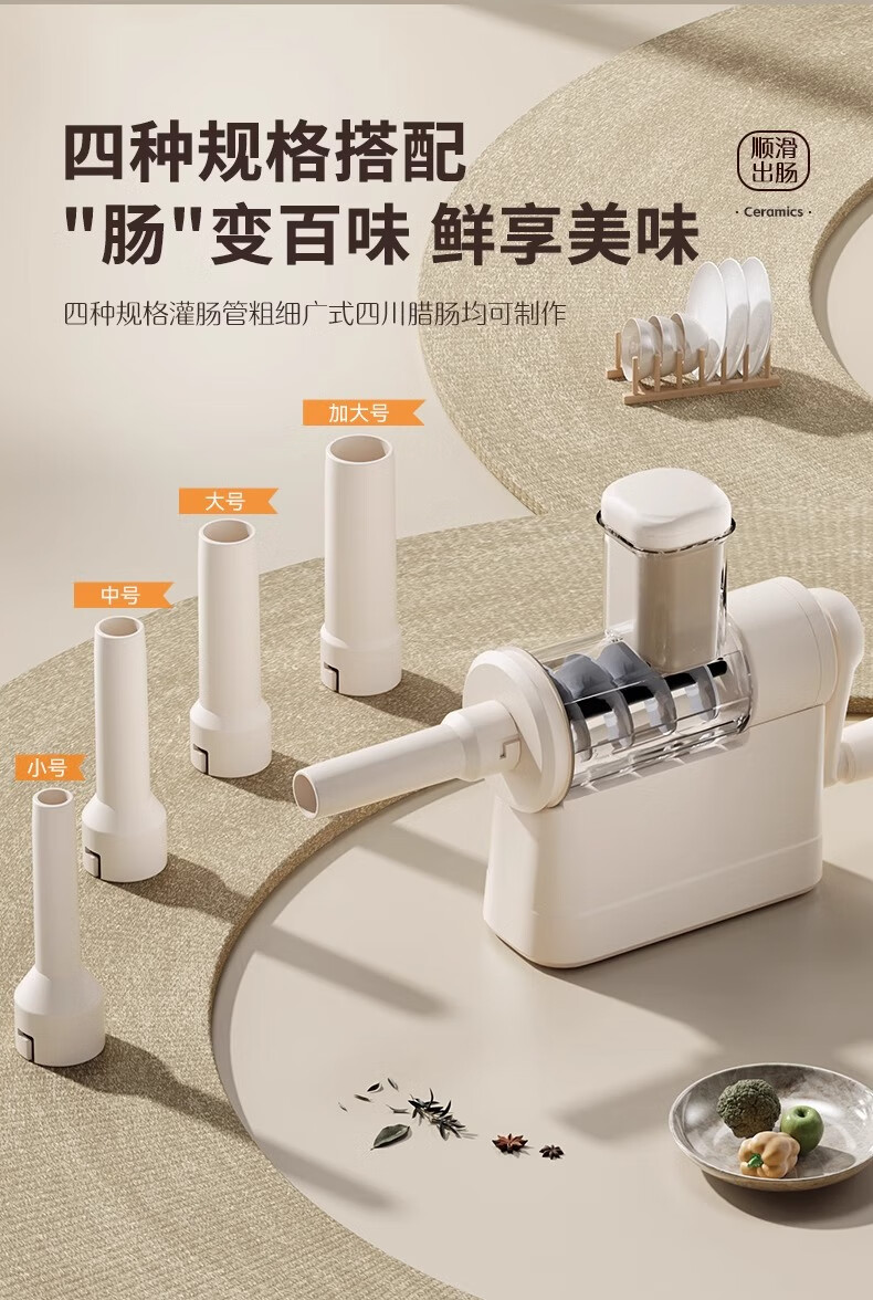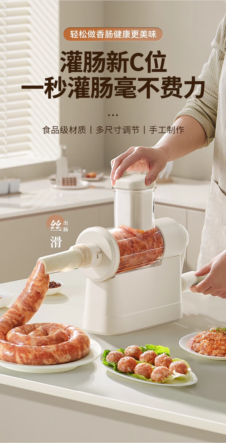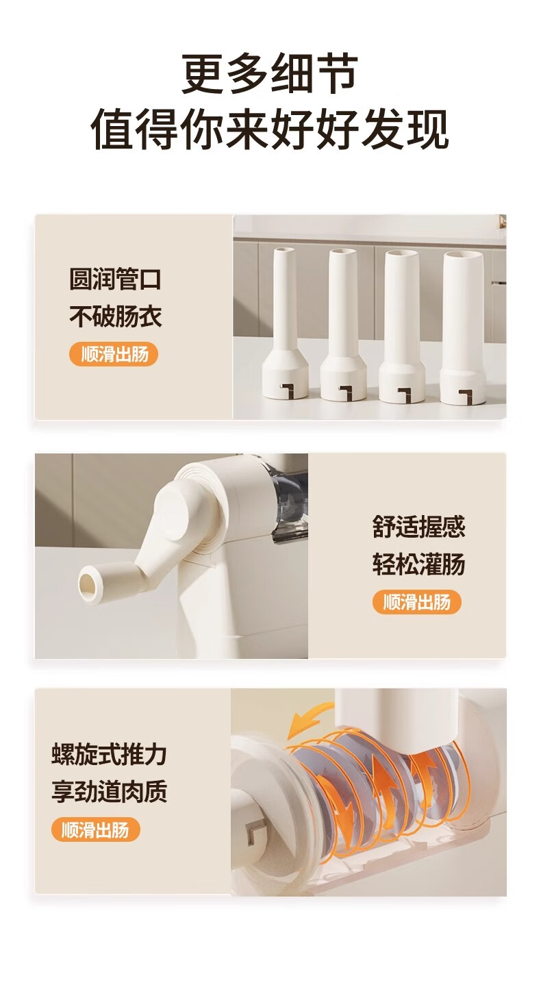 Jingyan Sausage Machine Household Food Grade Sausage Machine Sausage Machine Hand-Cranked Sausage Sausage Can Sausage Tool Casing Artifact White 3 Tubes + Casings + Cotton Thread + 100 Gloves Spiral Multi-function Sausage Machine
