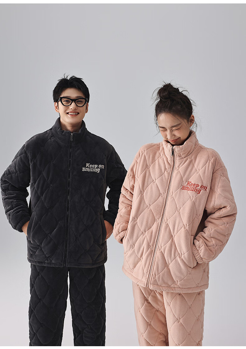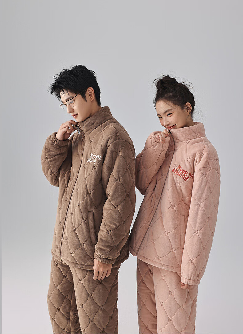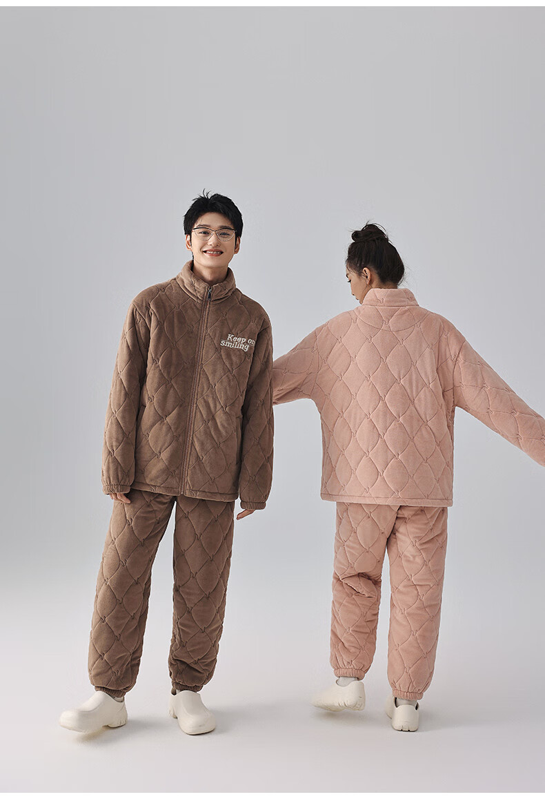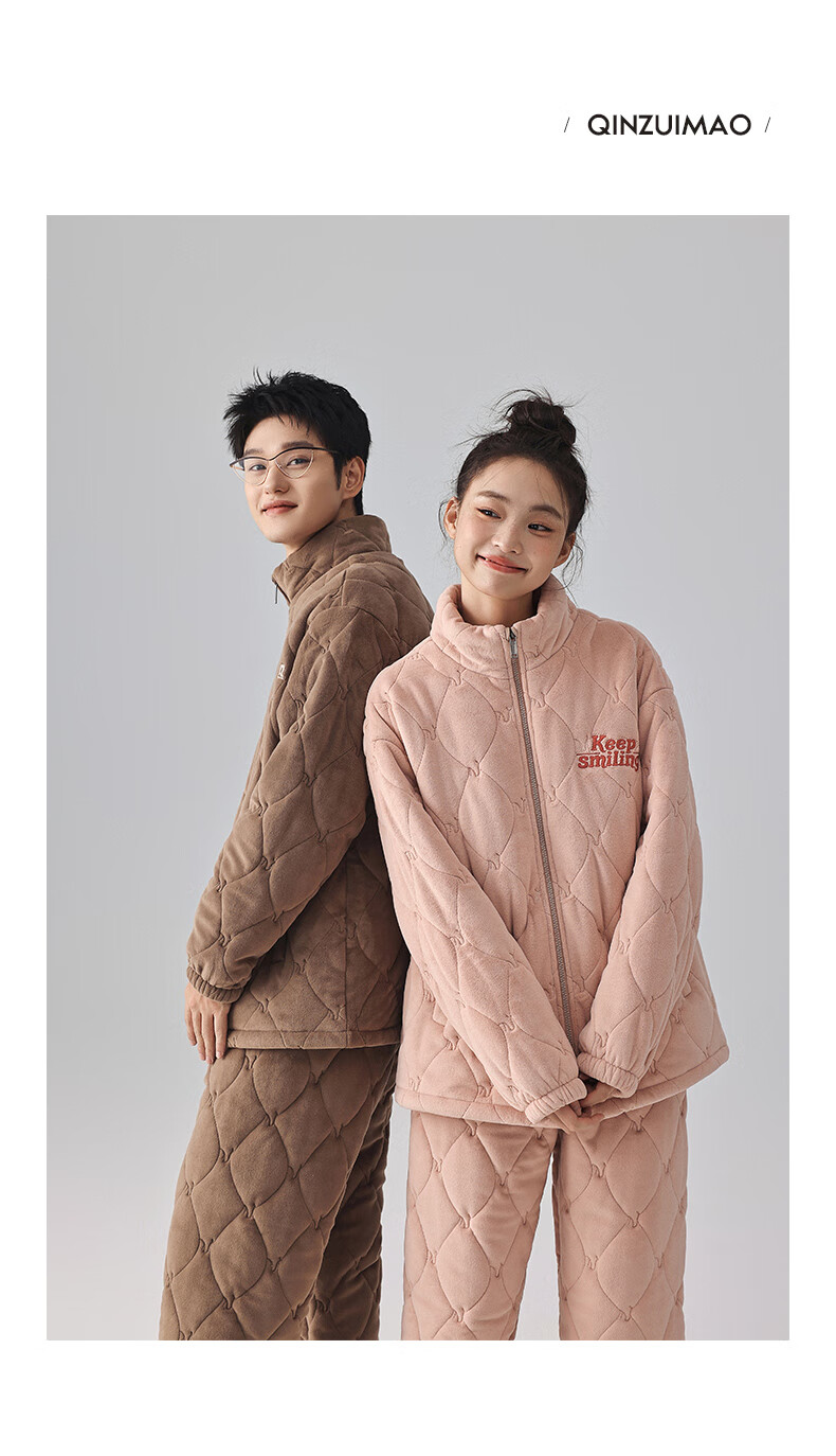 Kissing Cat Three-layer Thickened Island Velvet Couple's Quilted Pajamas Women's Winter Men's Suit Home Clothes Warm Outerwear 7023 Peach Pink Women's L