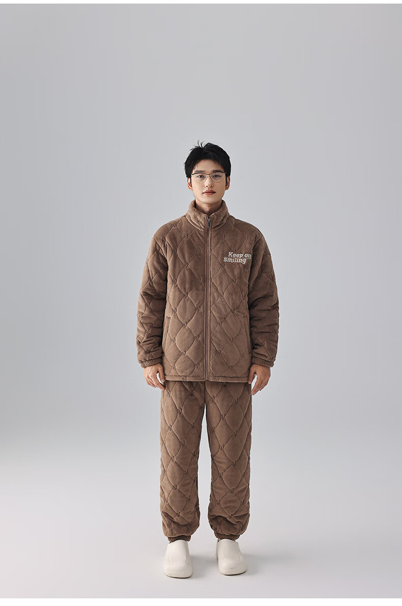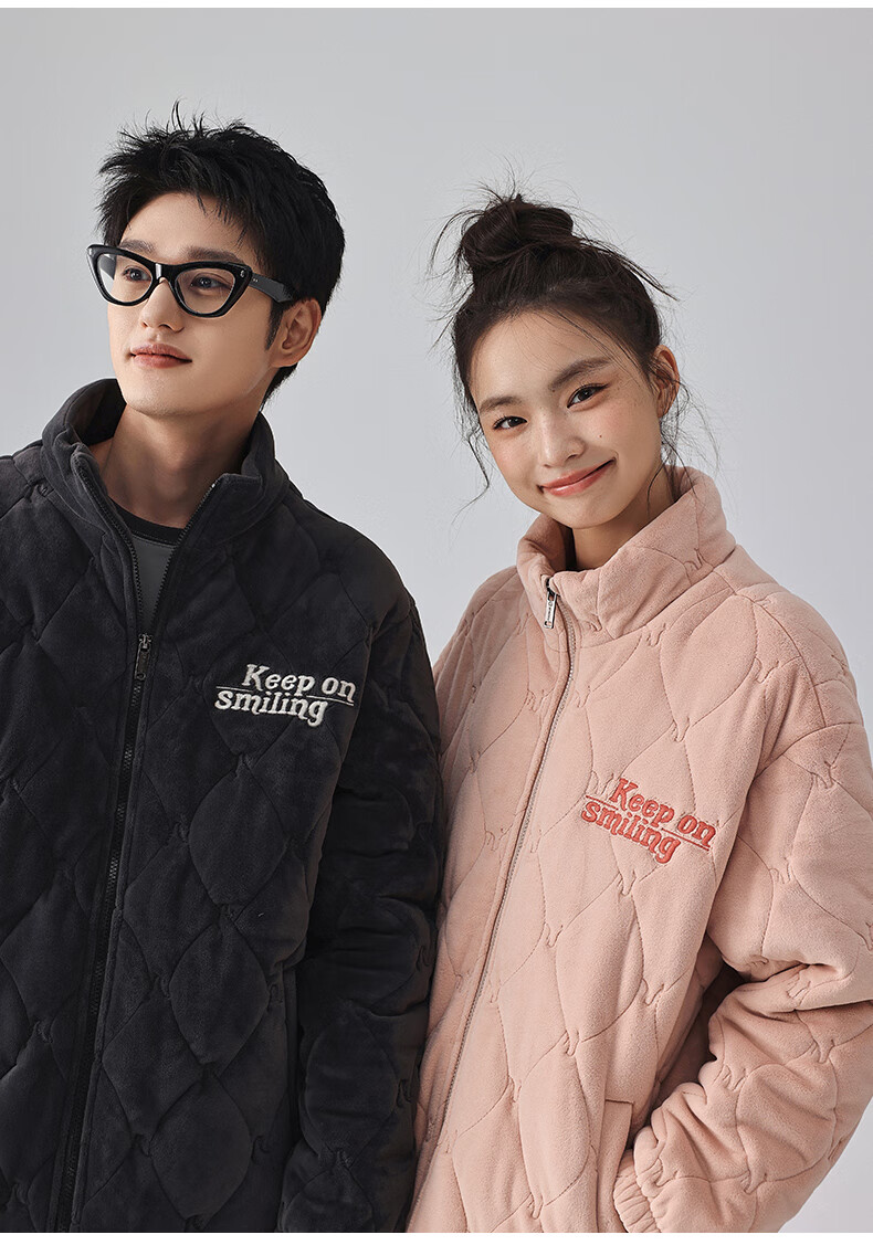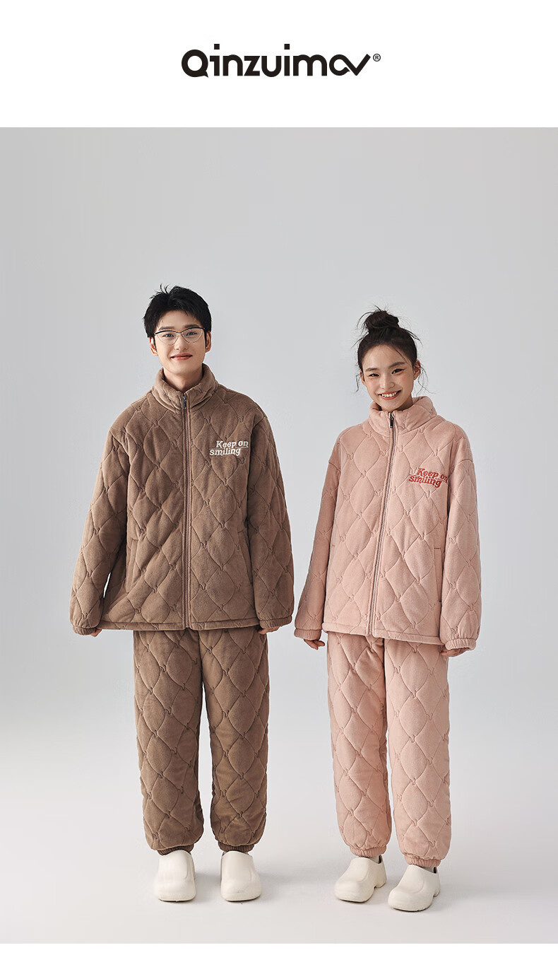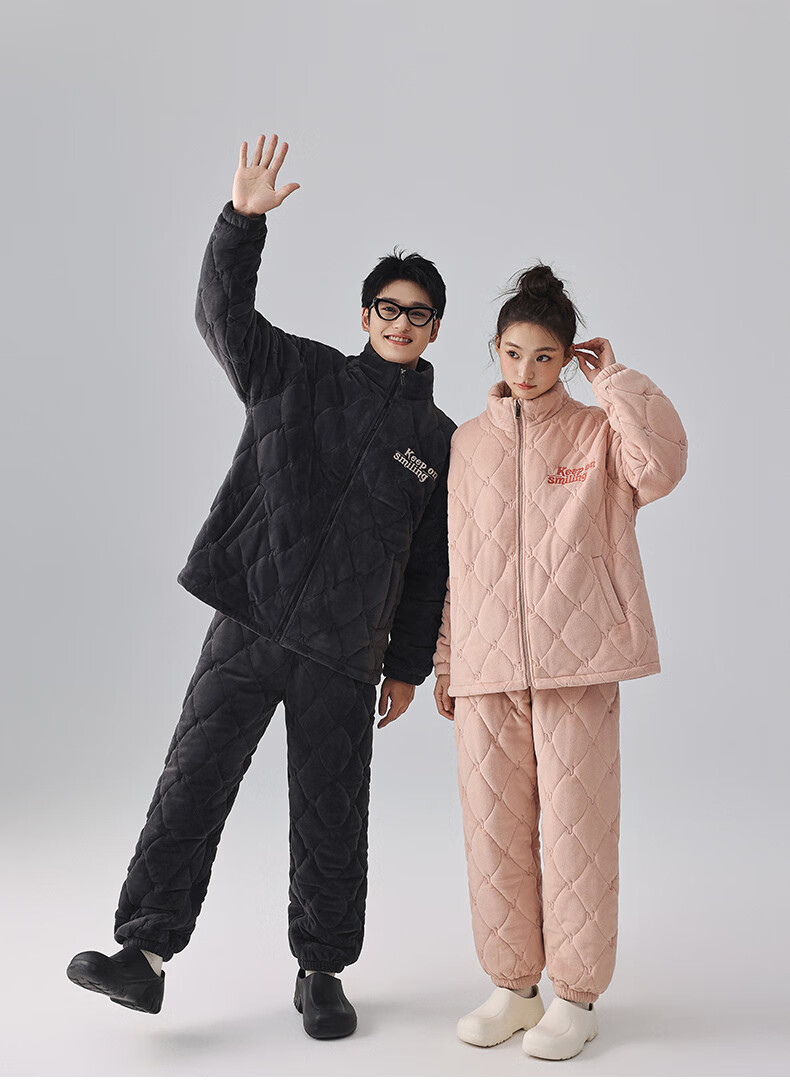 Kissing Cat Three-layer Thickened Island Velvet Couple's Quilted Pajamas Women's Winter Men's Suit Home Clothes Warm Outerwear 7023 Peach Pink Women's L