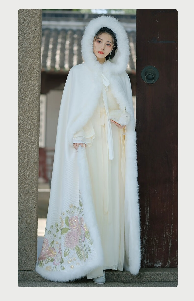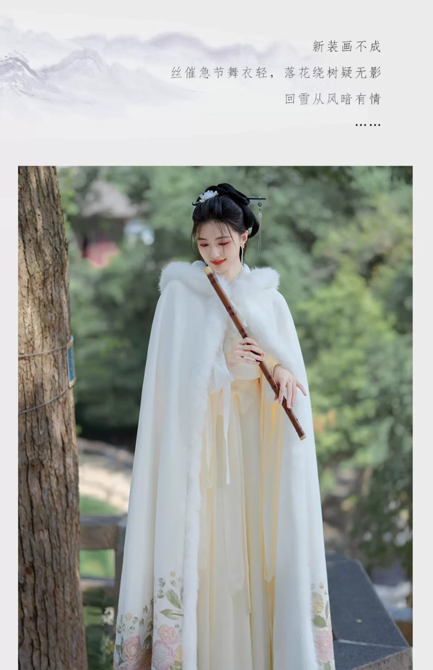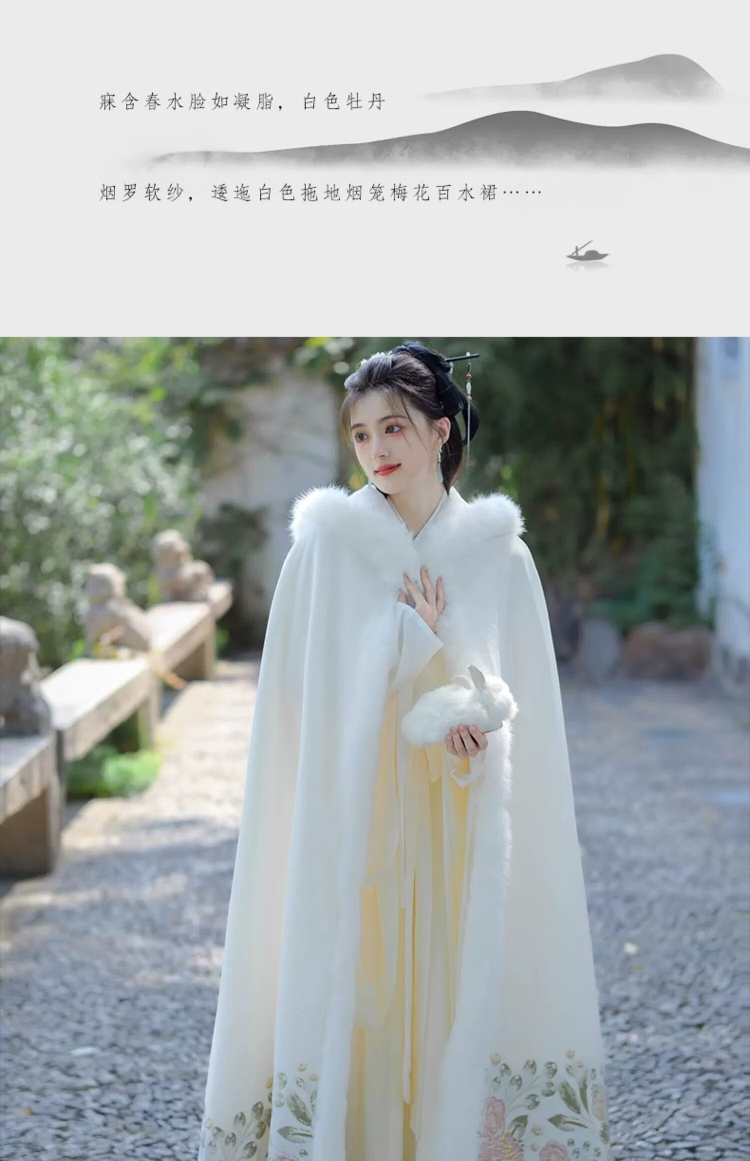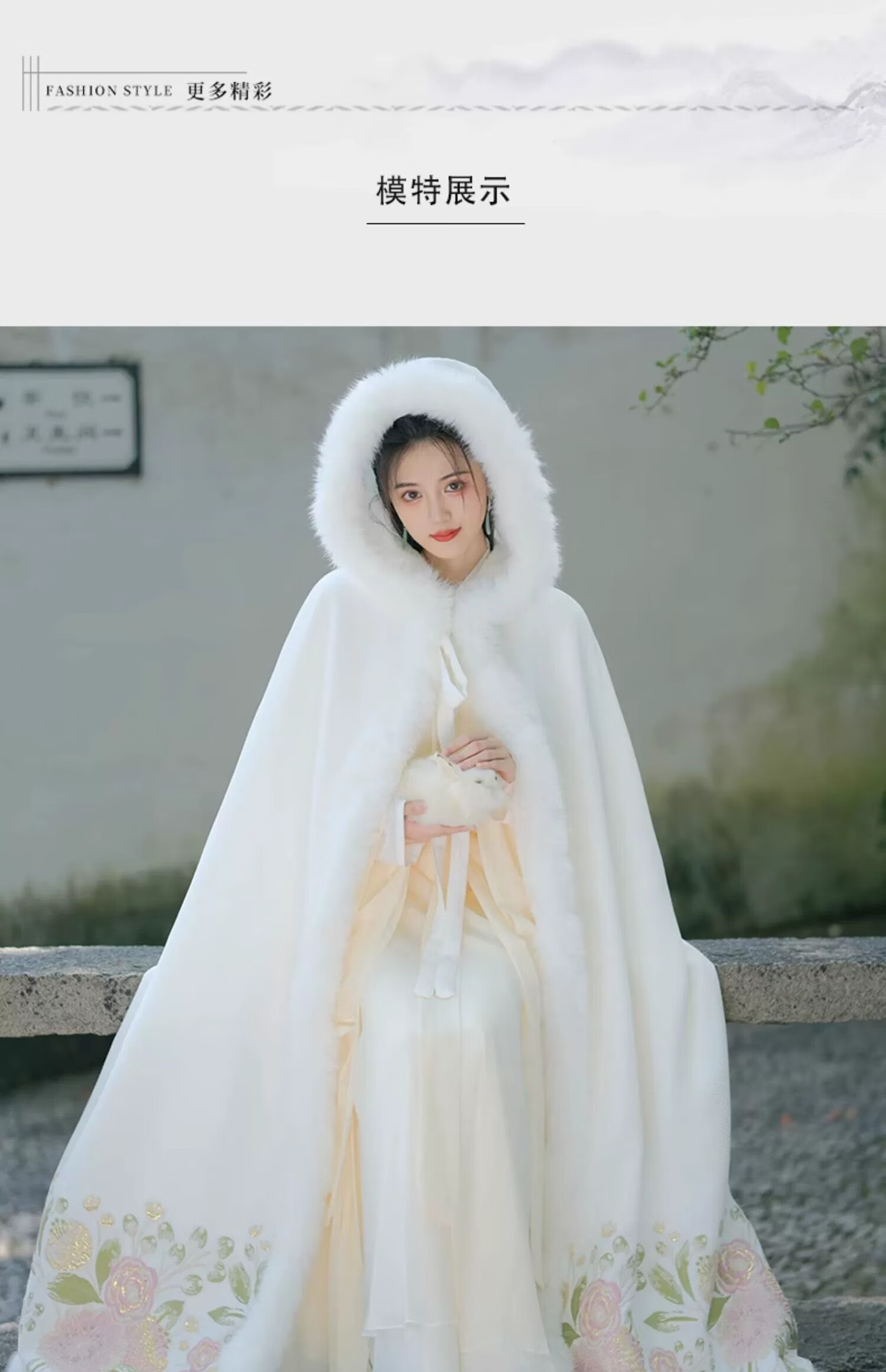 Libaixin Cloak Hanfu Women 2025 Autumn and Winter New White Long Velvet Thickened Ancient Costume Cape Super Fairy Ancient Style Shawl White One Size Thickened Shawl