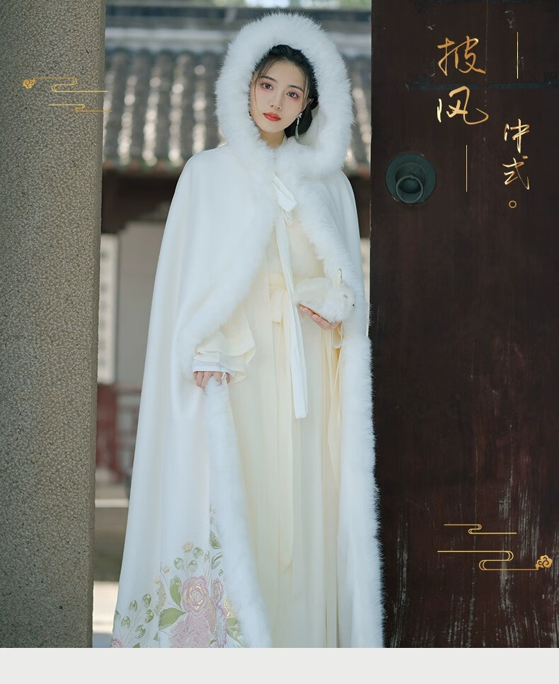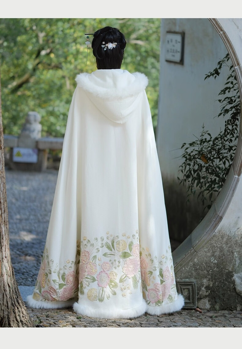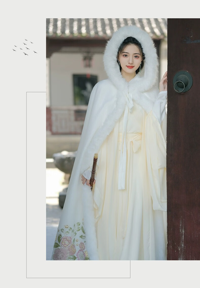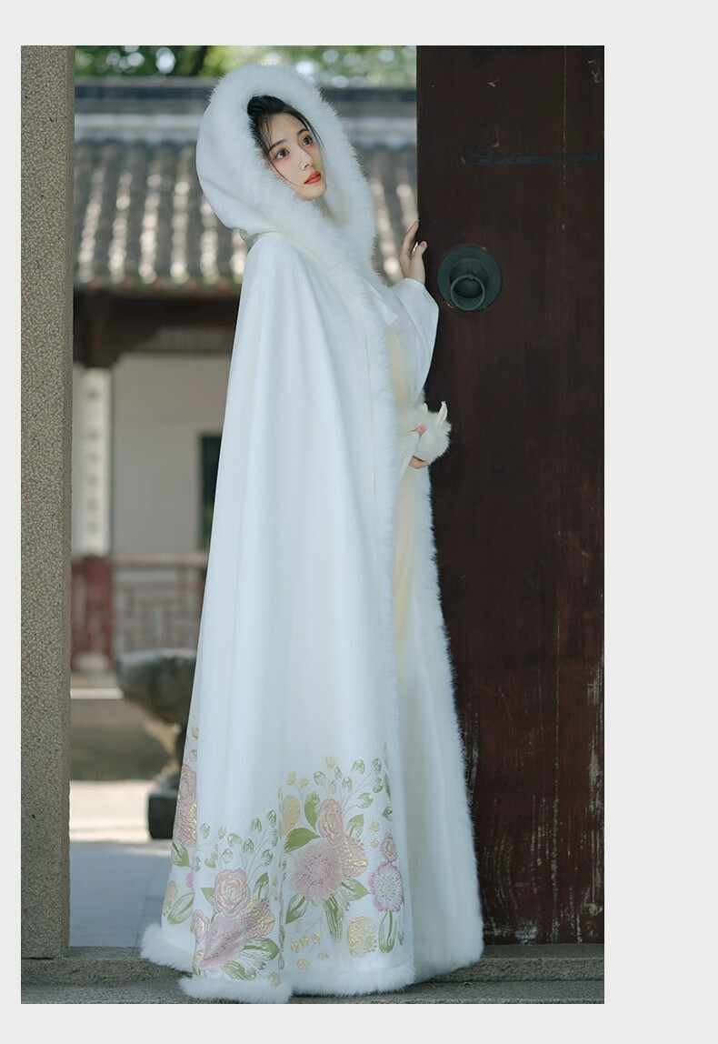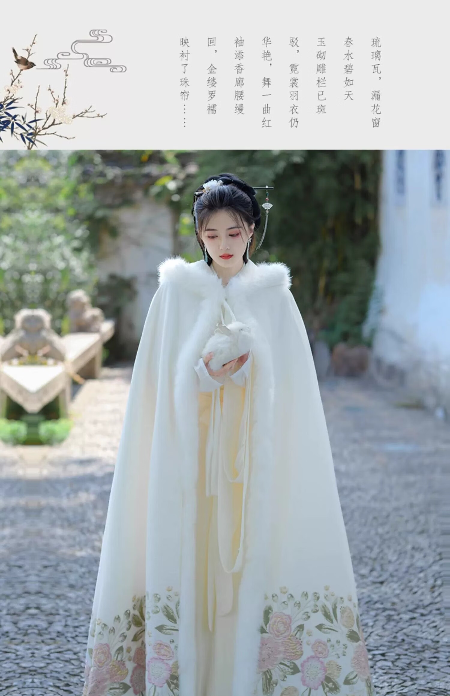 Libaixin Cloak Hanfu Women 2025 Autumn and Winter New White Long Velvet Thickened Ancient Costume Cape Super Fairy Ancient Style Shawl White One Size Thickened Shawl