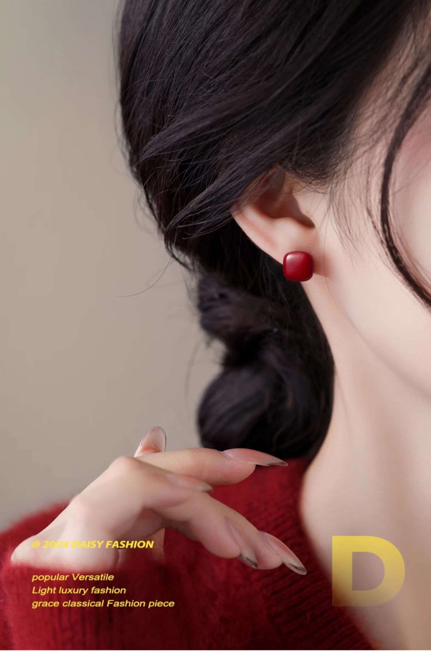 DAISY DREAMS 925 Silver Needle Ancora Red Sugar Cube Stud Earrings for Women 2025 New Year Hot Style Retro Earrings Red Ear Jewelry Retro Square Earrings 925 Silver Needles Pair