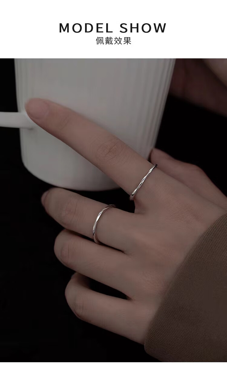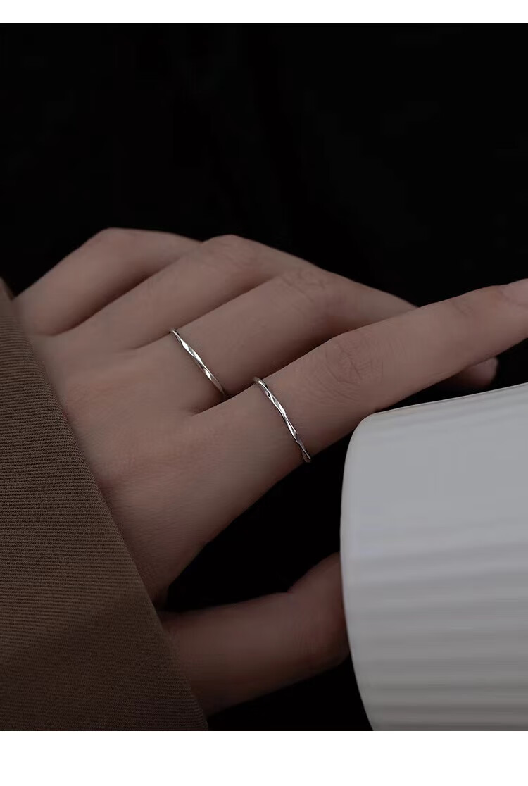 DL 1998 Fat Donglai same style plain ring 925 silver niche design index finger ring simple cold style ring versatile jewelry 925 silver thin wave ring opening adjustable