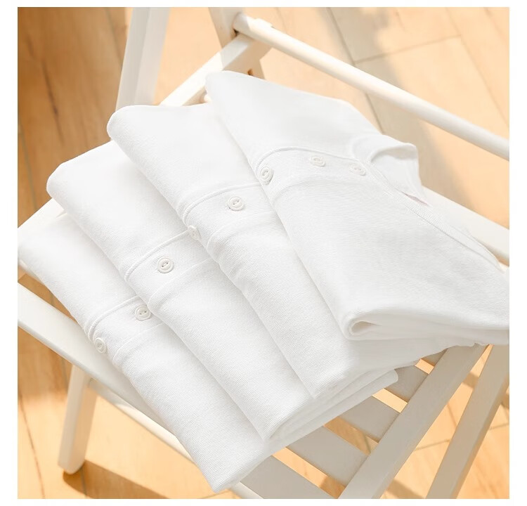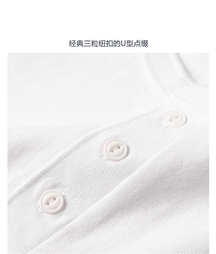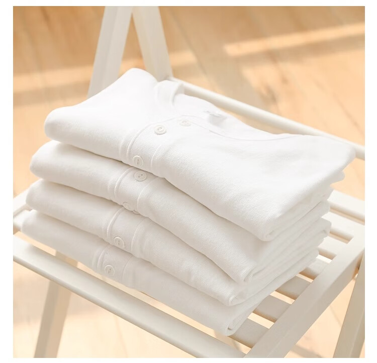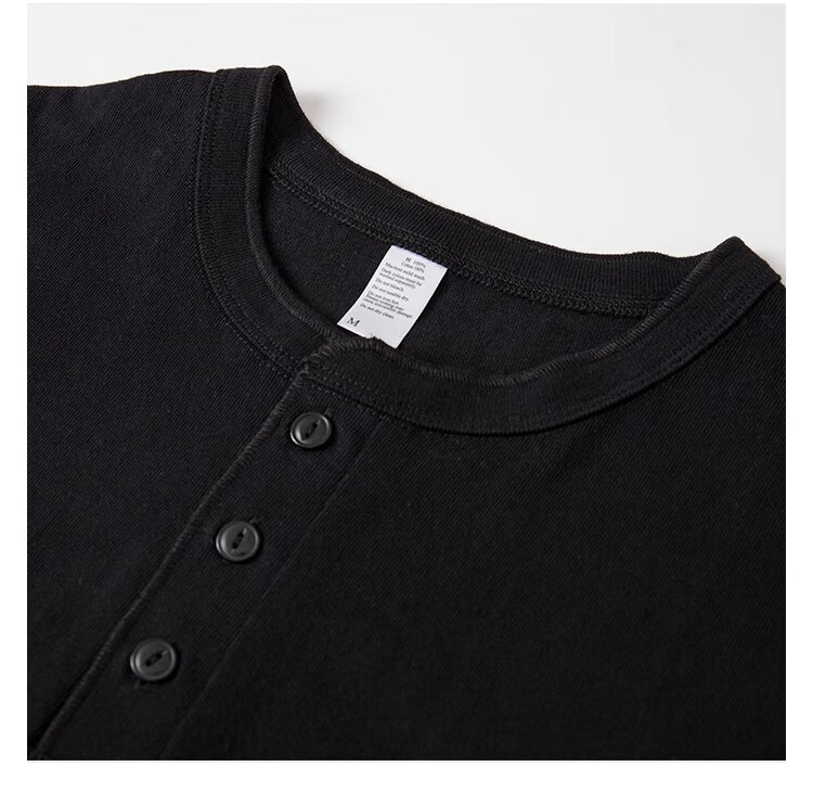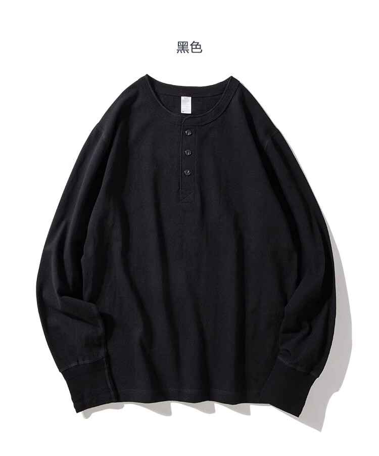 QiaoBanna white cotton American khaki Henry collar heavy long-sleeved T-shirt pure cotton loose basic men's and women's base shirt autumn white M