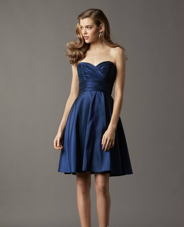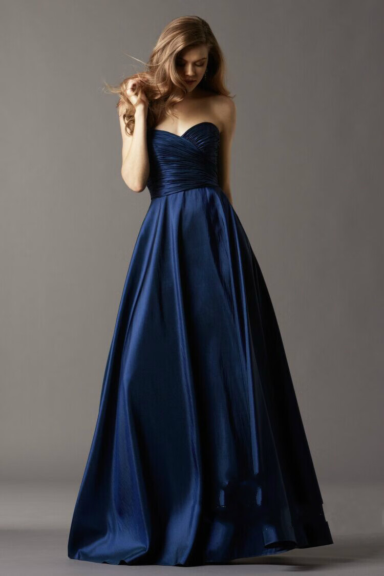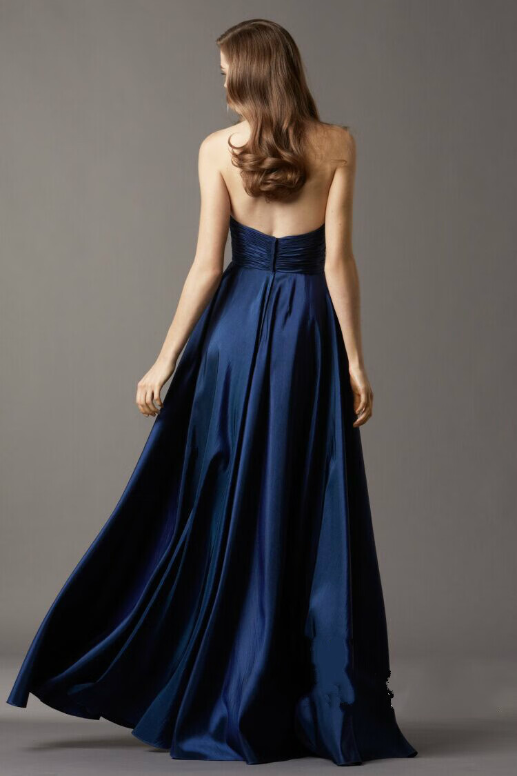Timochi satin dress women's banquet evening dress tube top long / European and American elegant floor-length taffeta / performance host dress navy blue short XXL