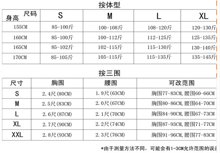 China (cm) 160-165/84-86 165-170 / 88-90 167-172 / 92-96 168-173 / 98-102 170-176 / 106-110