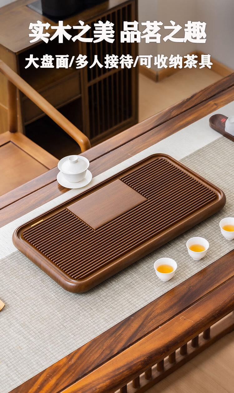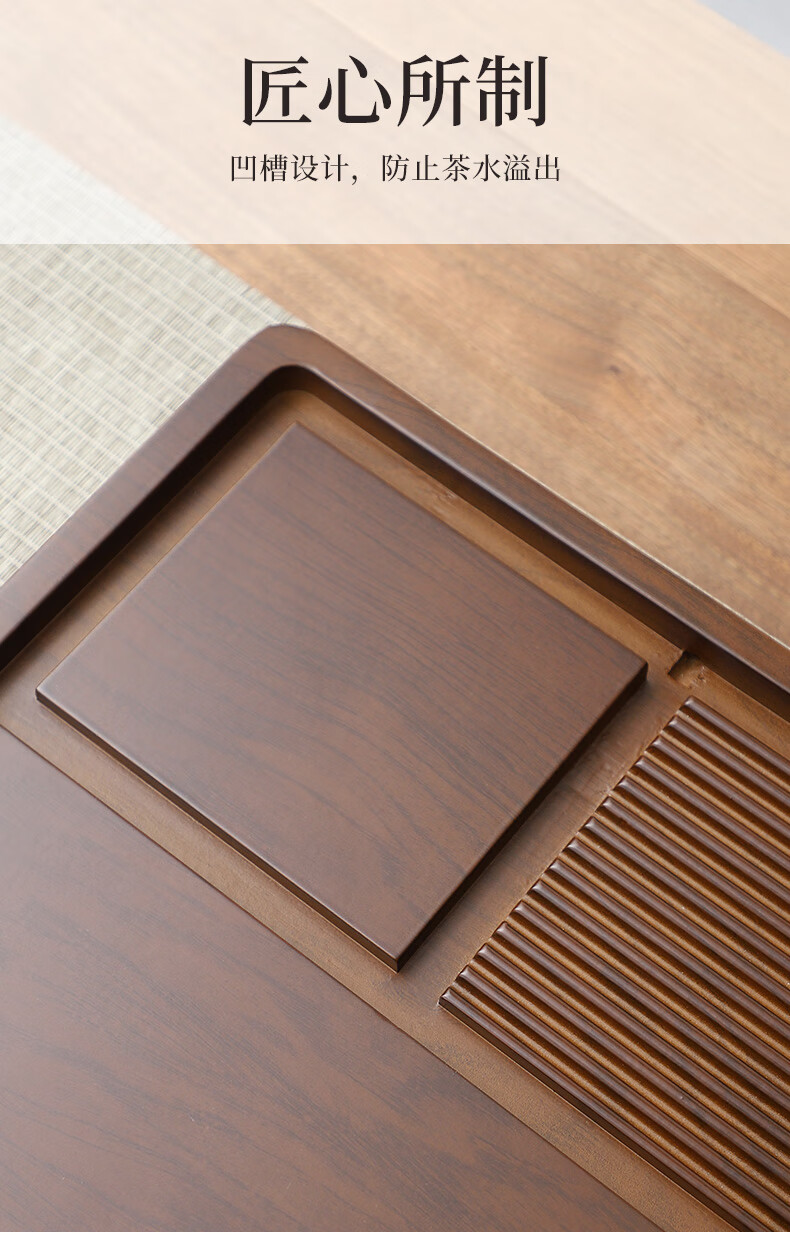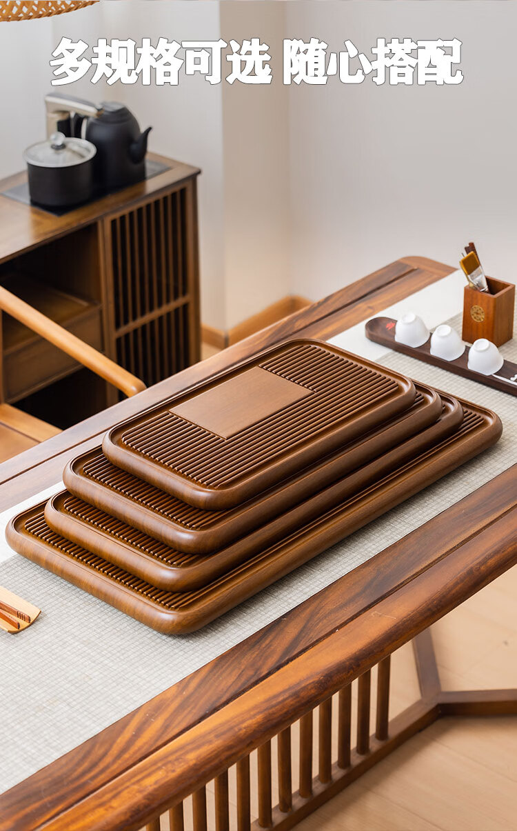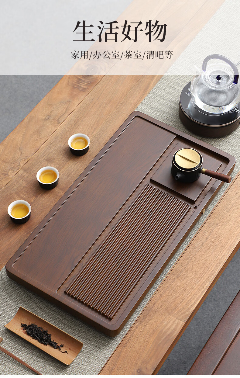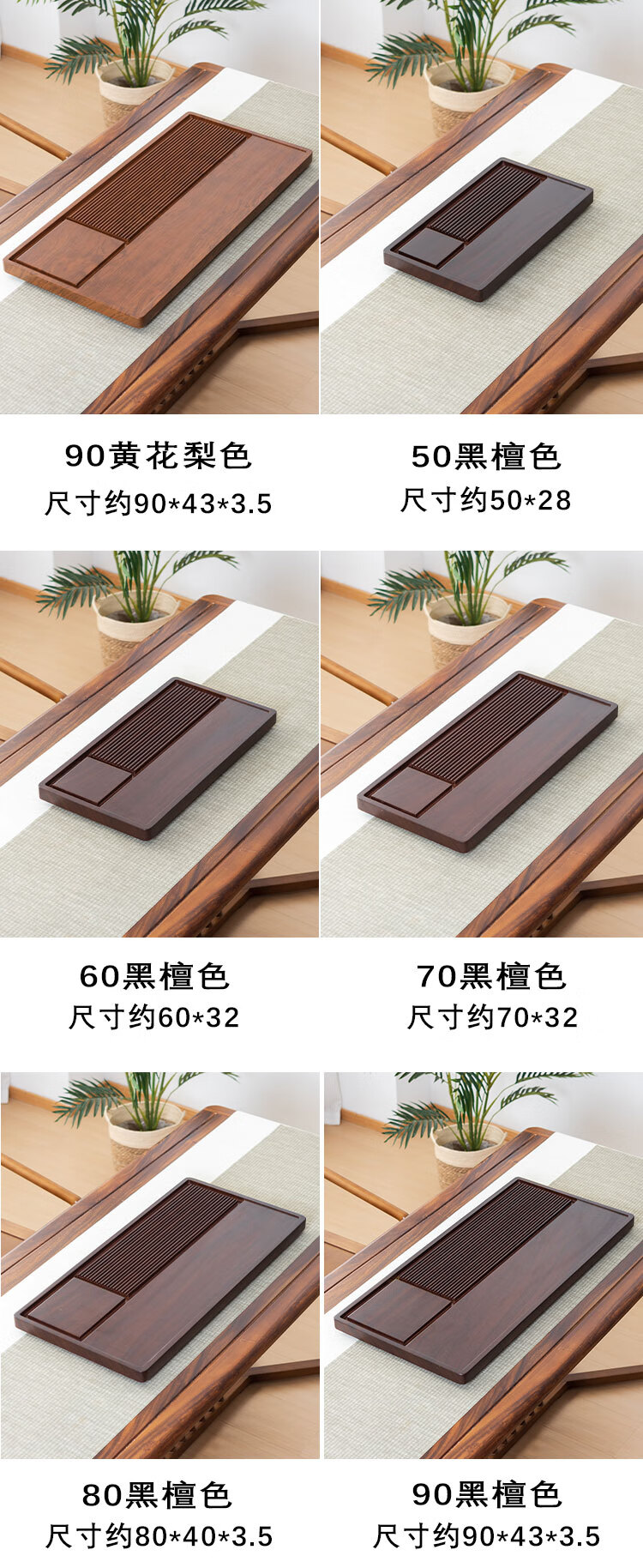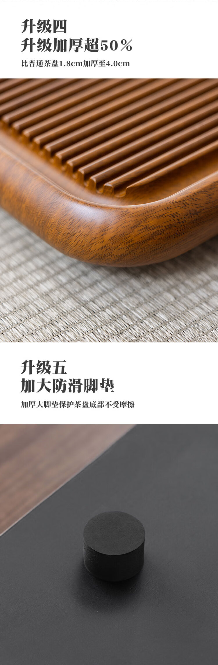Chenshi tea tray solid wood household Bakelite new dry brewing small tea table tray whole piece office Kung Fu tea set drainage tea table Huanghuali color Pinyi 40*20 free water balloon water pipe