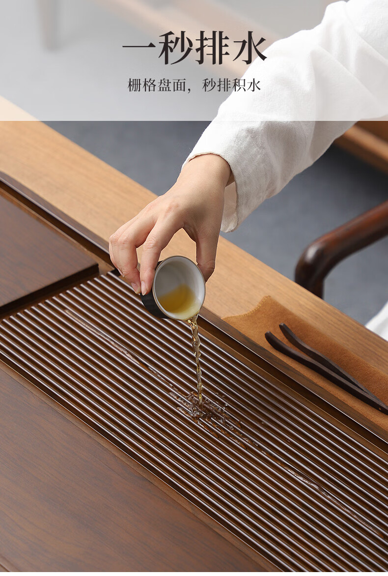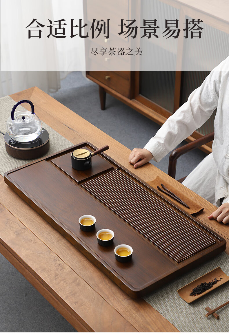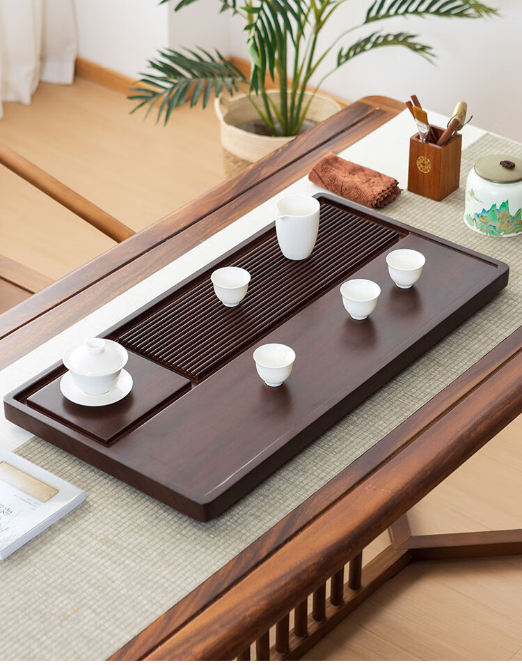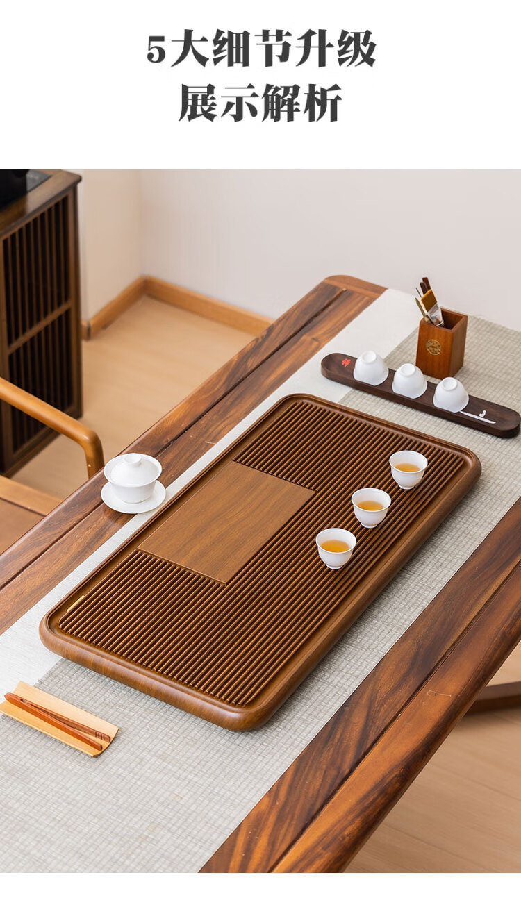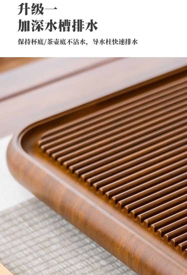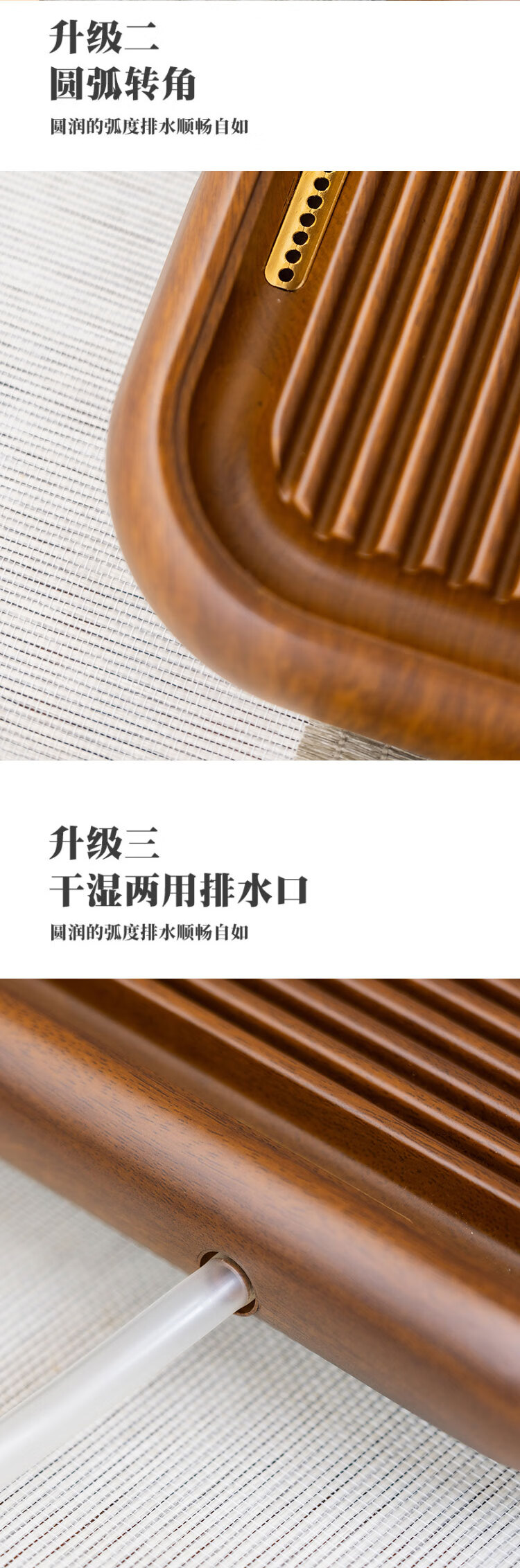 Chenshi tea tray solid wood household Bakelite new dry brewing small tea table tray whole piece office Kung Fu tea set drainage tea table Huanghuali color Pinyi 40*20 free water balloon water pipe