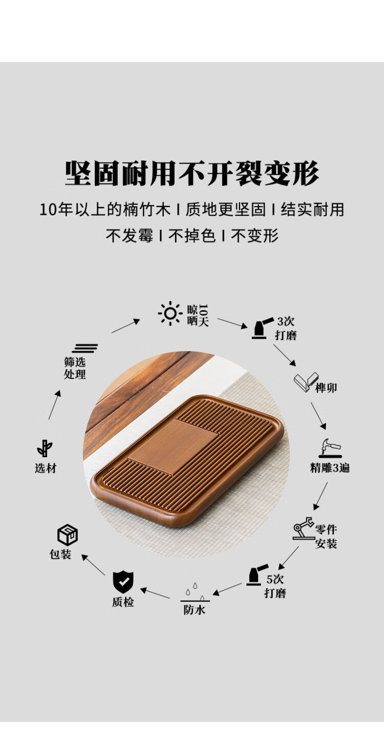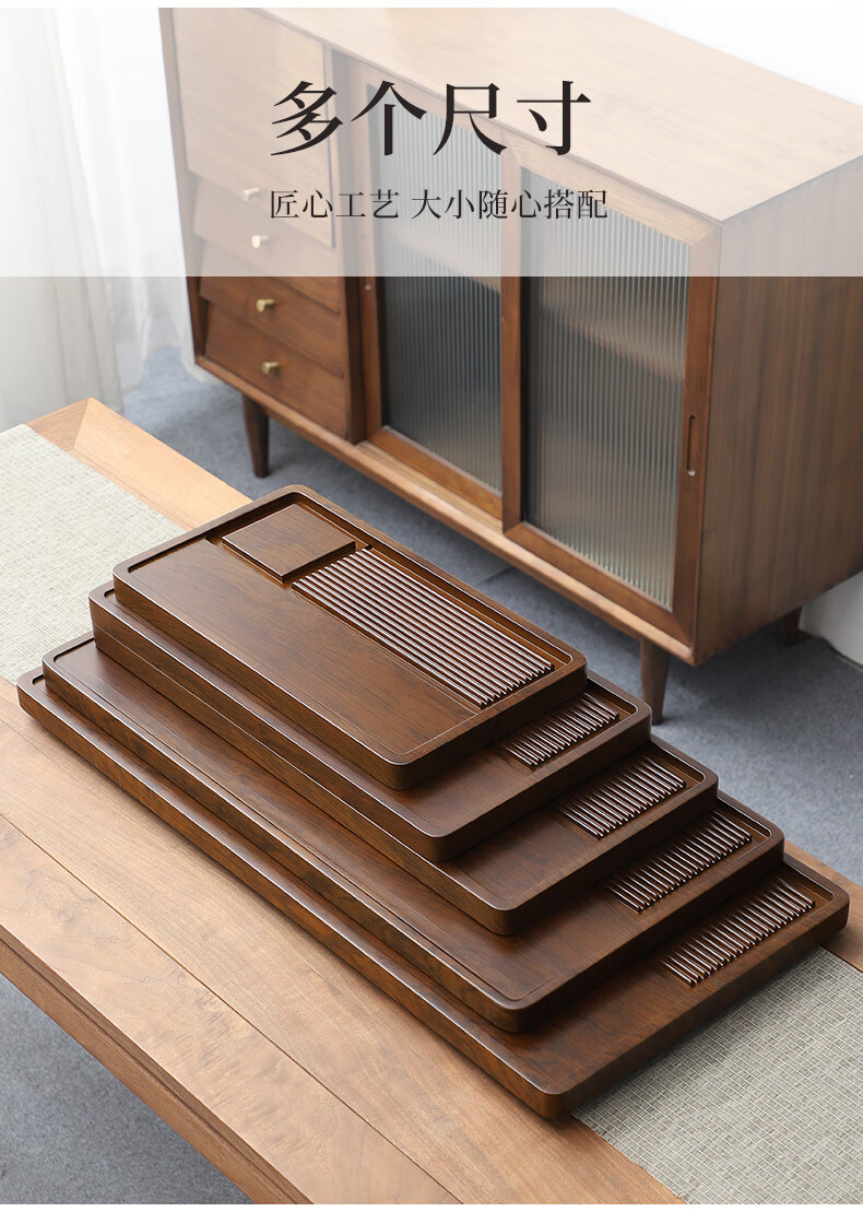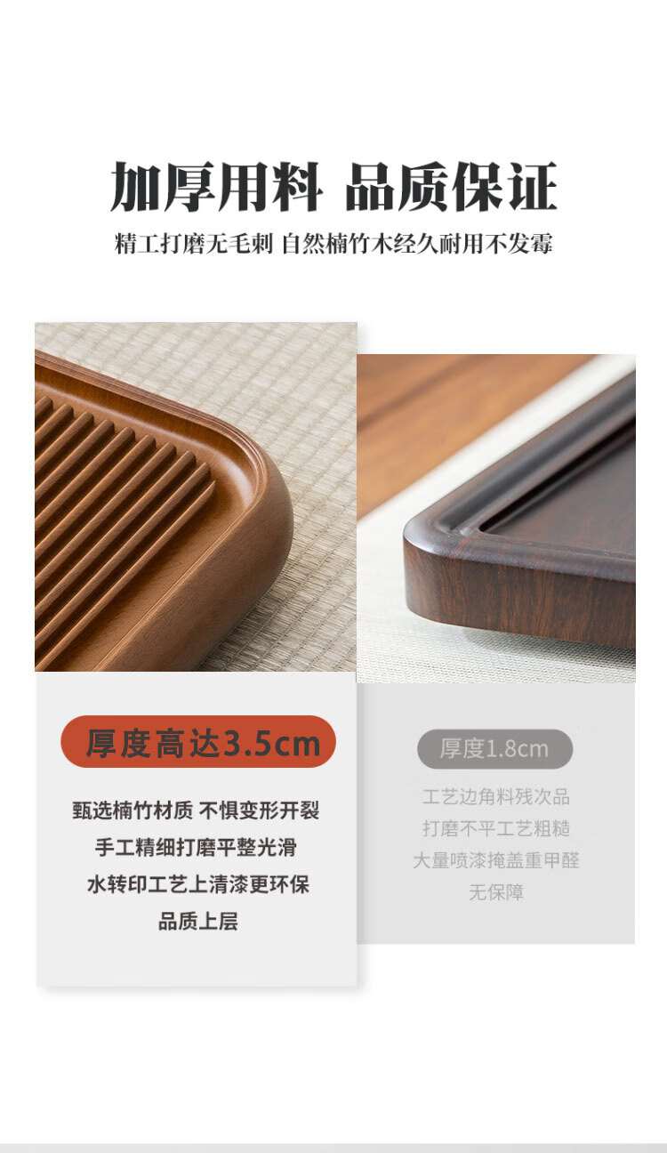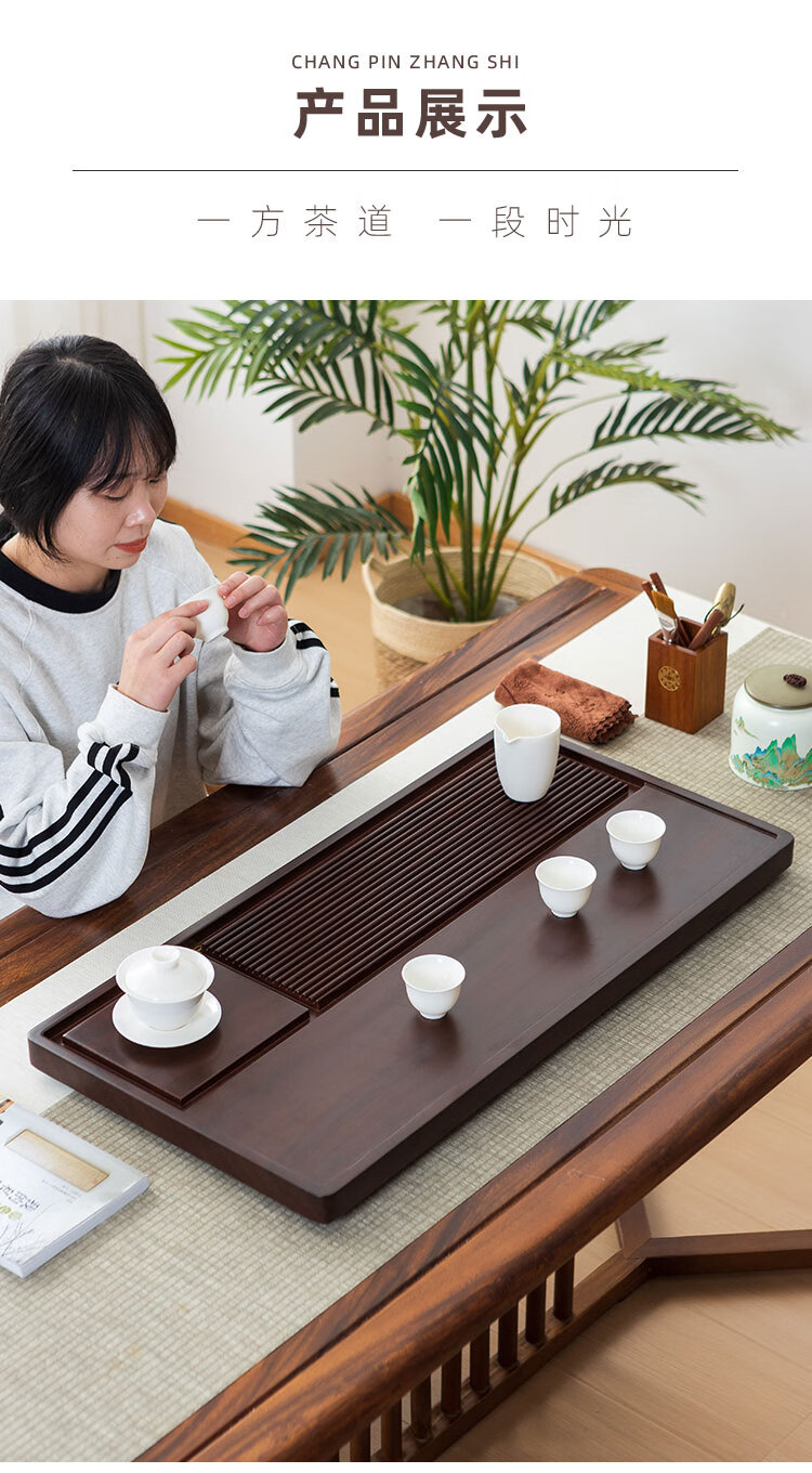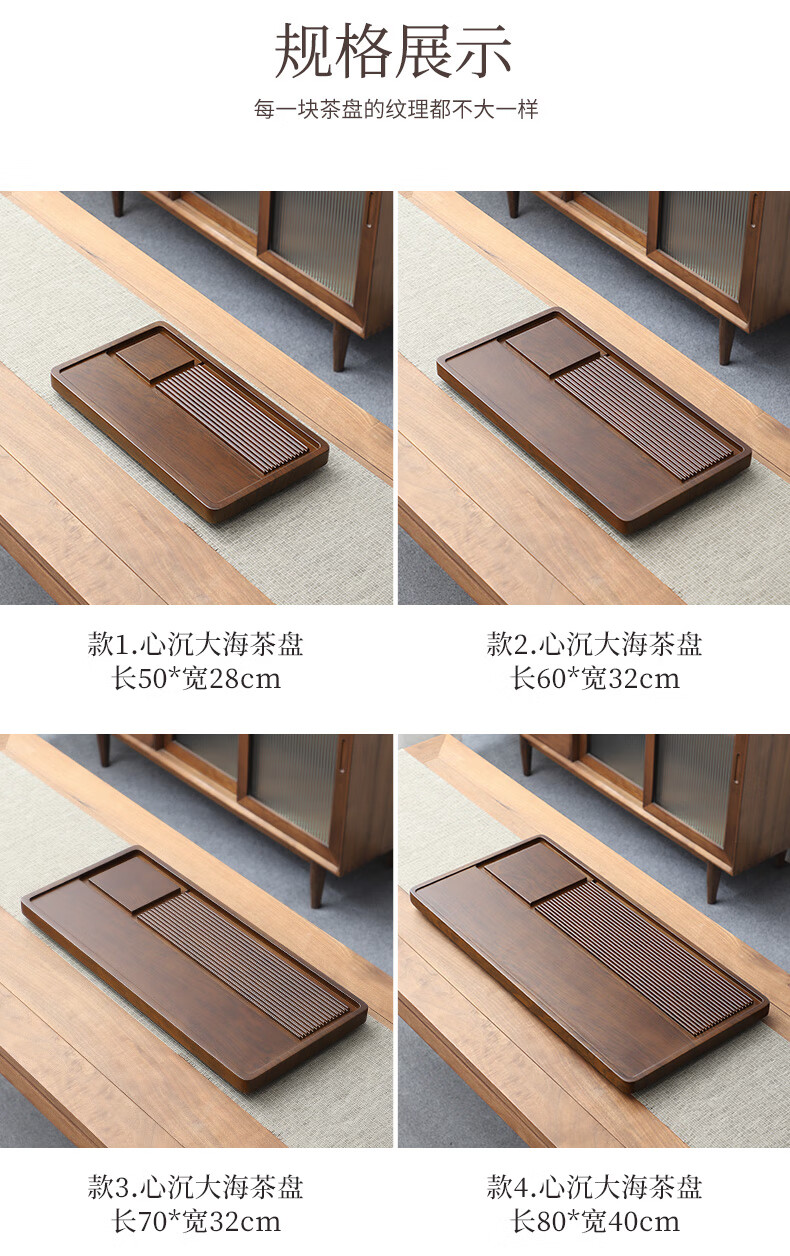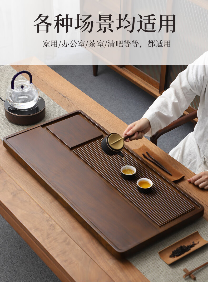 Chenshi tea tray solid wood household Bakelite new dry brewing small tea table tray whole piece office Kung Fu tea set drainage tea table Huanghuali color Pinyi 40*20 free water balloon water pipe