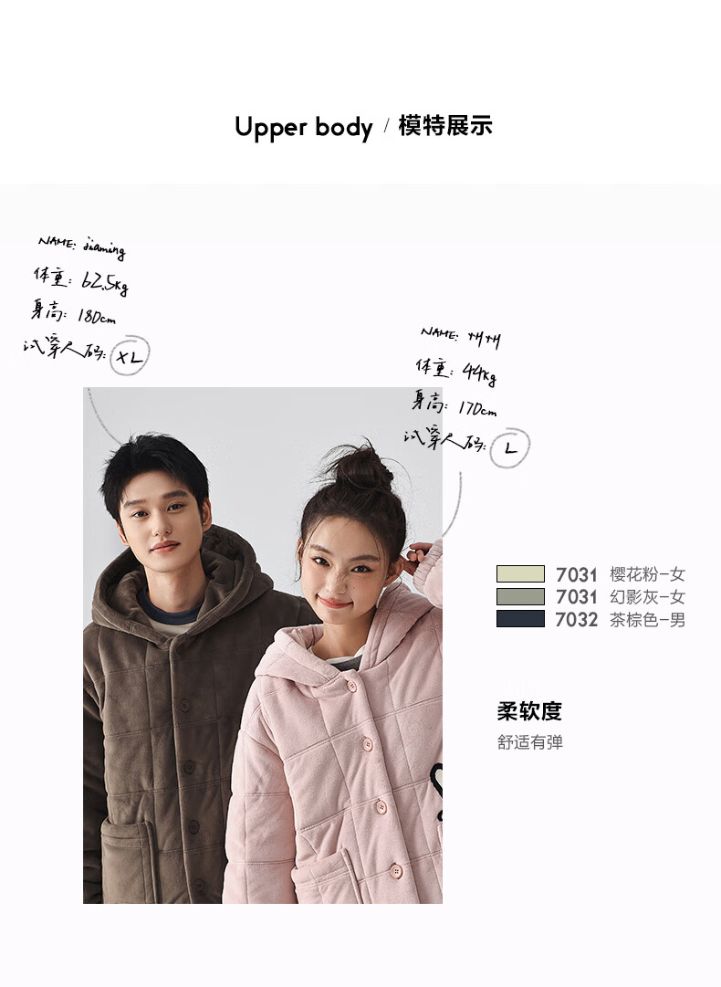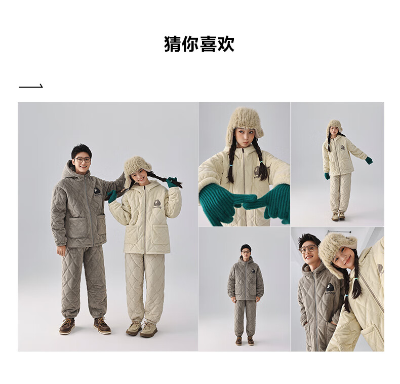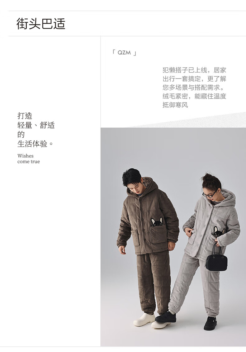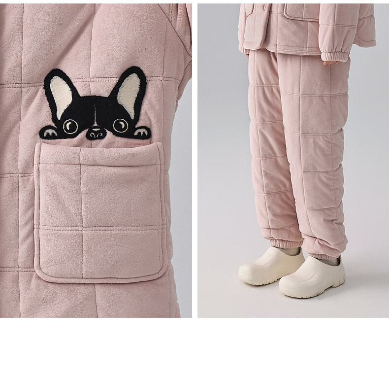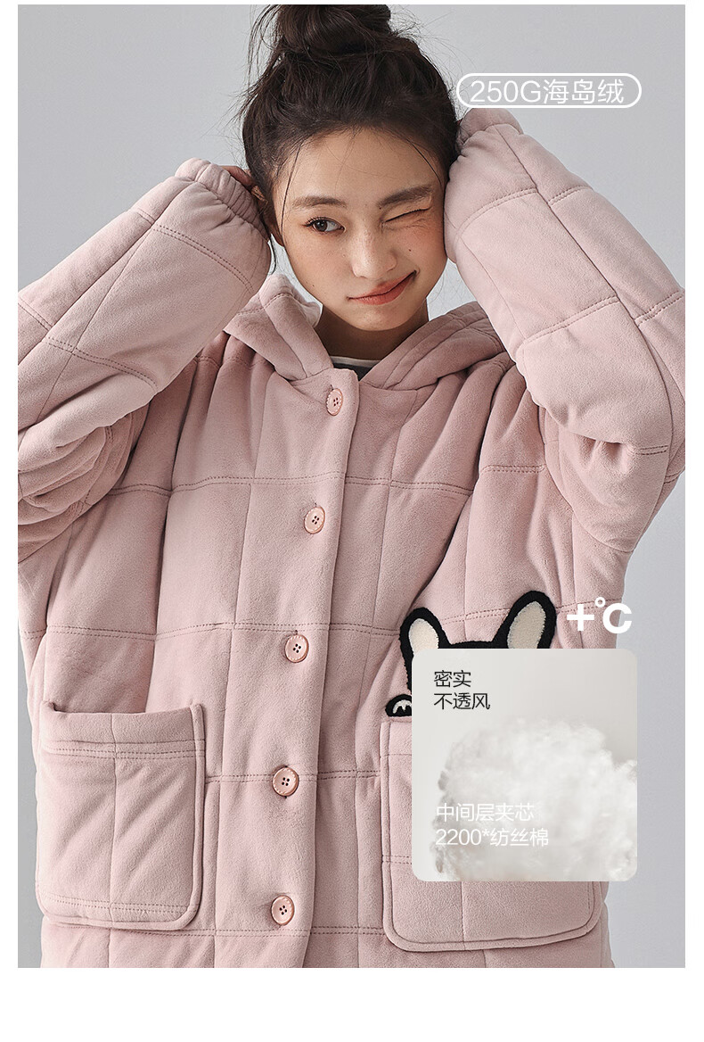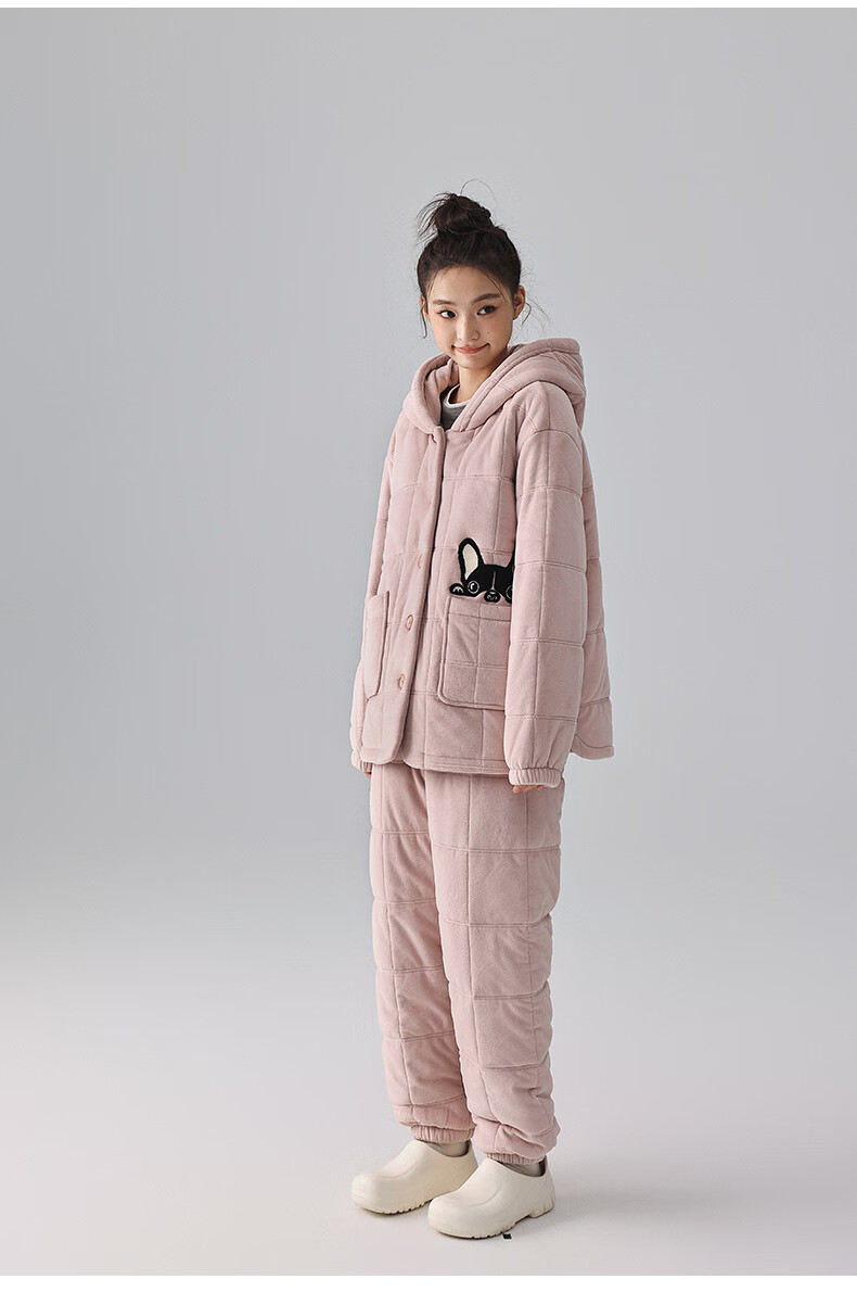 Kissing Cat Hooded Island Velvet Quilted Couple Pajamas Women's Winter Suit Three Layers Thickened Men's Home Clothes Outerwear 7032 Tea Brown Men L