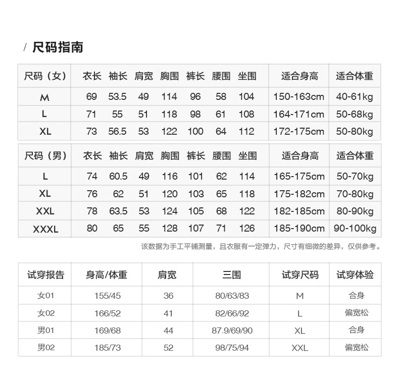 China (cm) 160-165/84-86 165-170 / 88-90 167-172 / 92-96 168-173 / 98-102 170-176 / 106-110