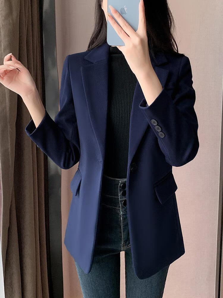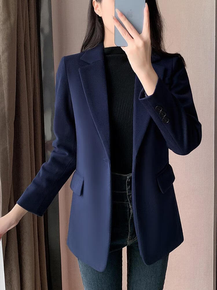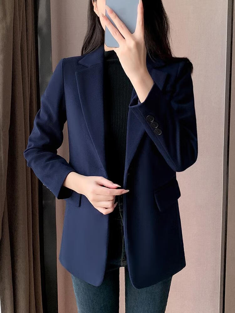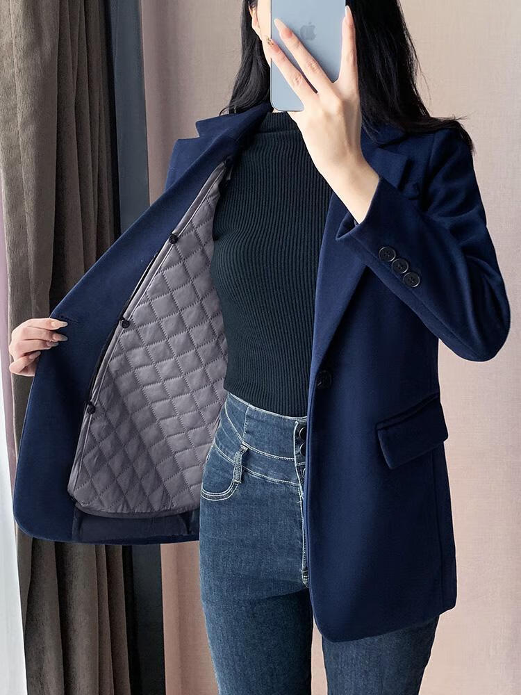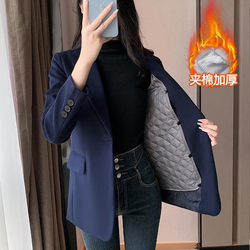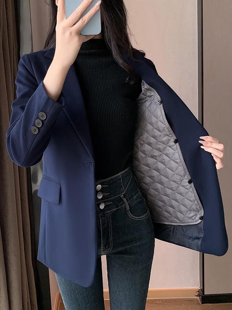 ROMON quilted suit jacket for women winter thickened 2026 new small casual temperament Korean style cotton woolen suit detachable quilted style blue suit + quilted S