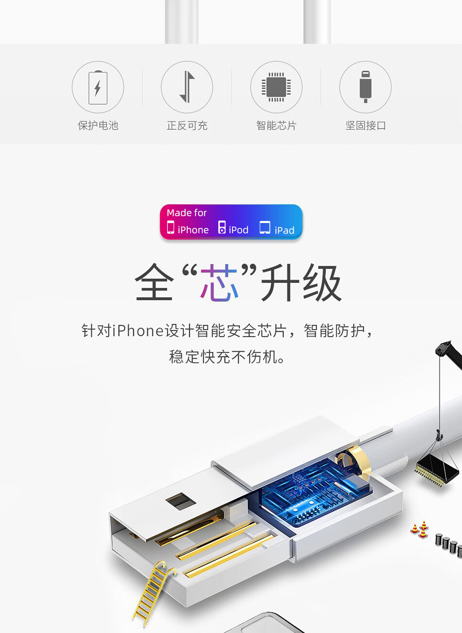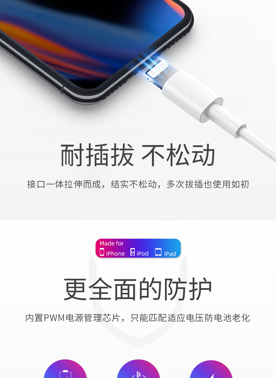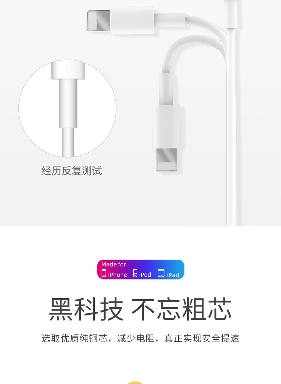 REIOENS Genuine Apple Data Cable Charger Cable Fast Charging Cable USB Power Cable iPhone15/16//1713 14 12 11 XS XR 7