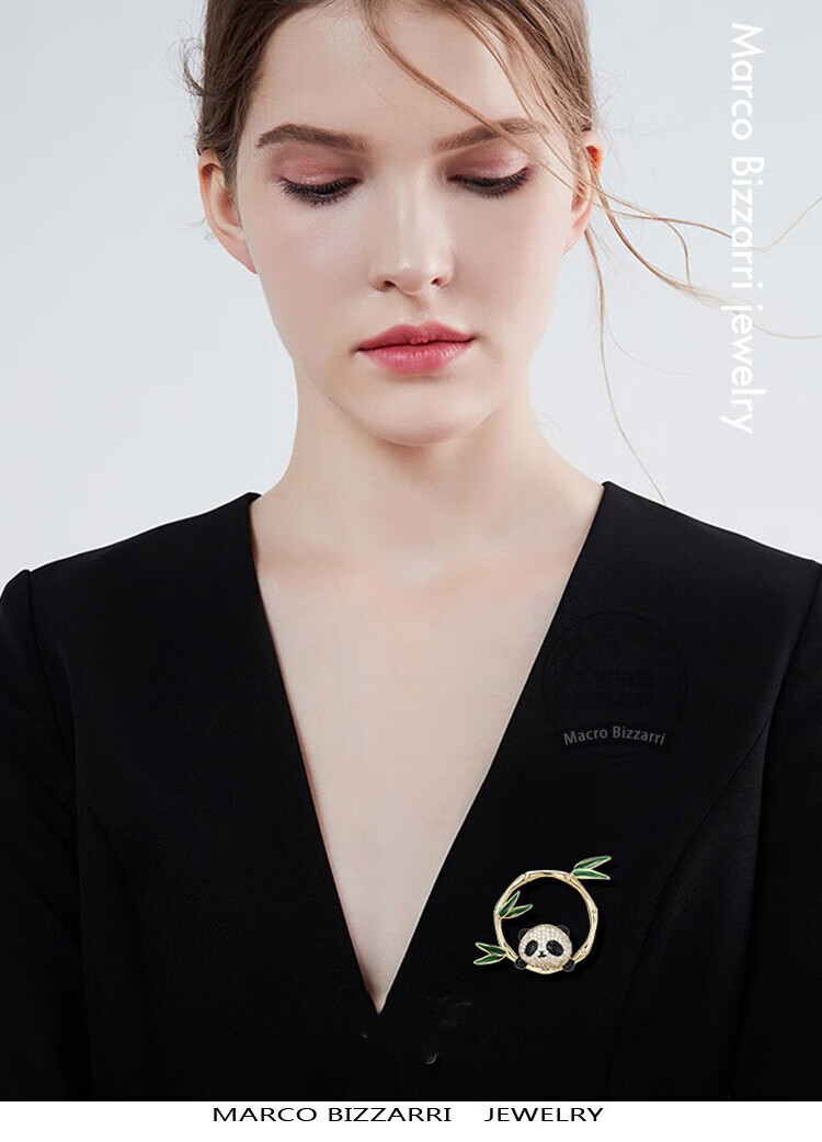 Marco Bizzarri's national trendy creative jewelry, versatile bamboo panda brooch, high-end female cute anti-exposure pin, niche accessories gift, holiday gift for friends, anniversary gift for girlfriend and wife