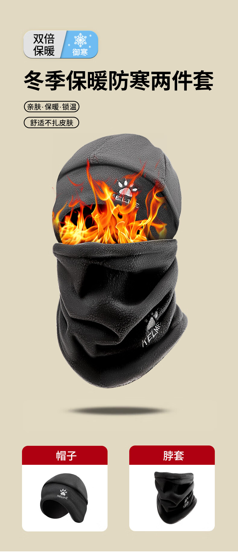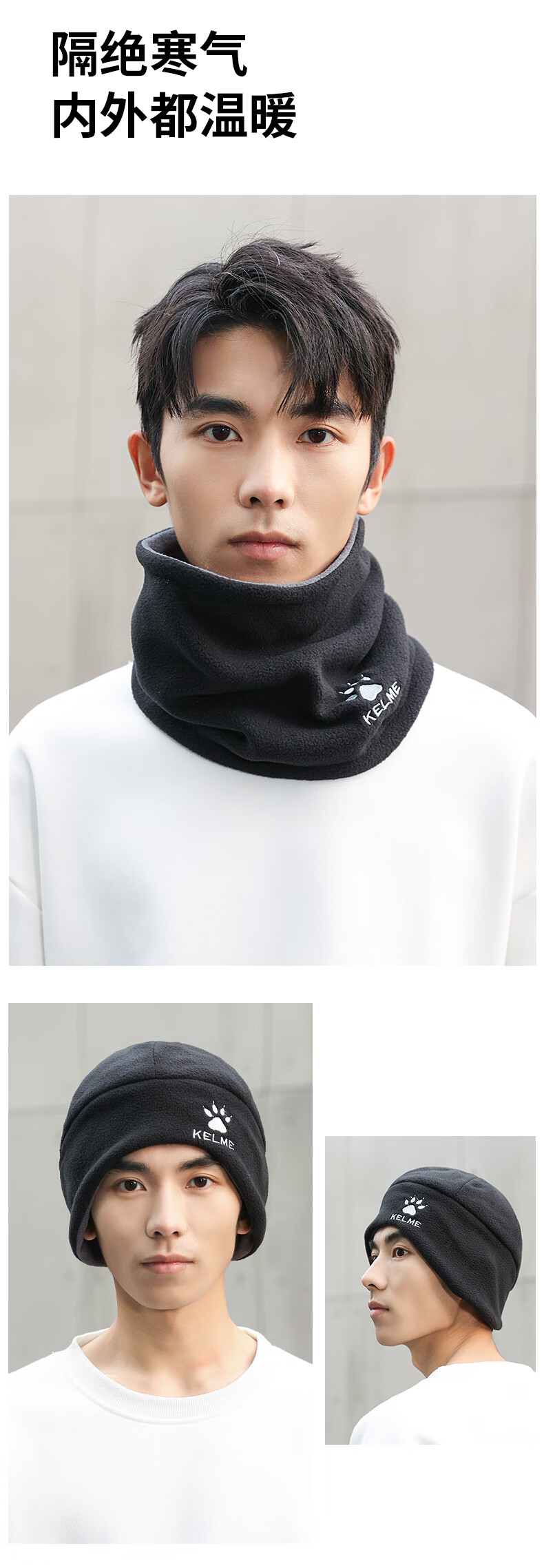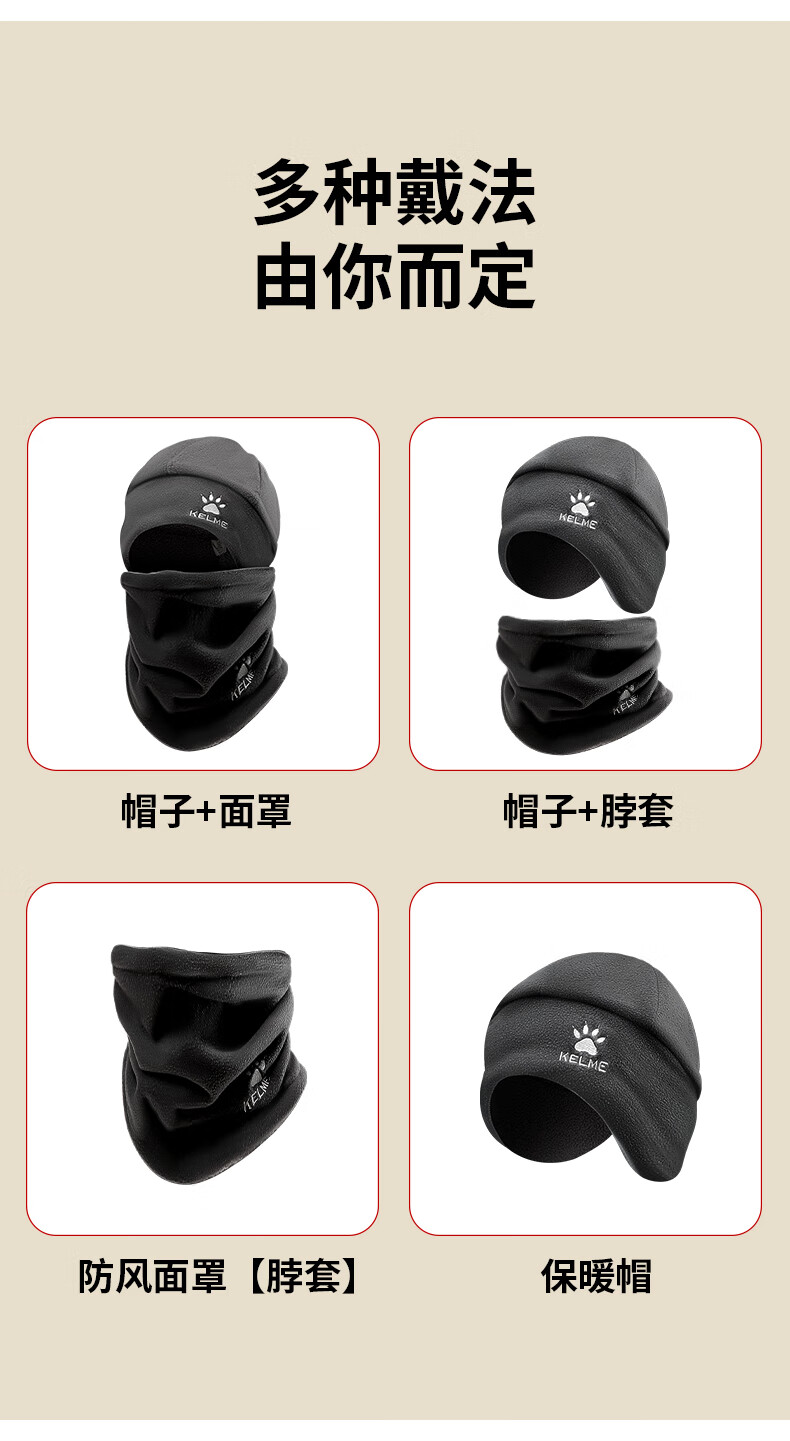 Calme Calme scarf warm hat set winter outdoor running and cycling mask to prevent wind and cold face and neck scarf hat black suit scarf + hat double-sided wearable