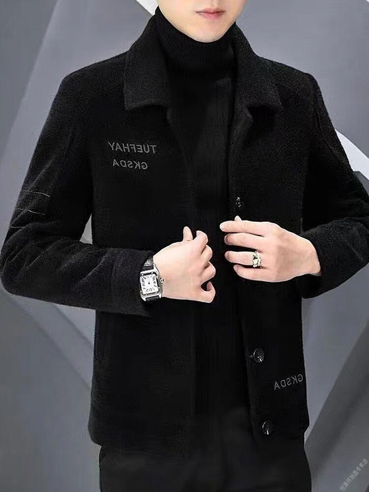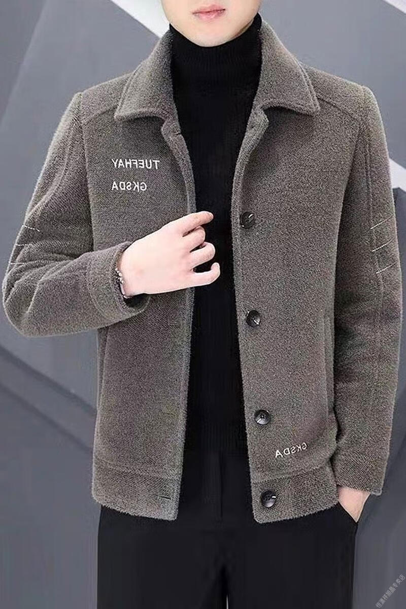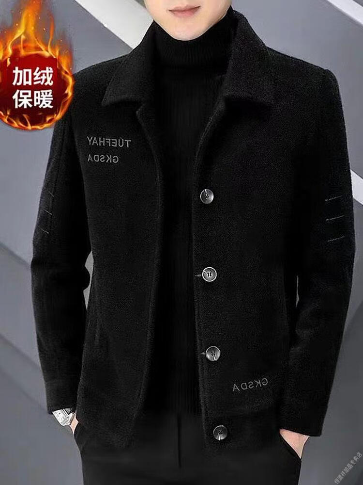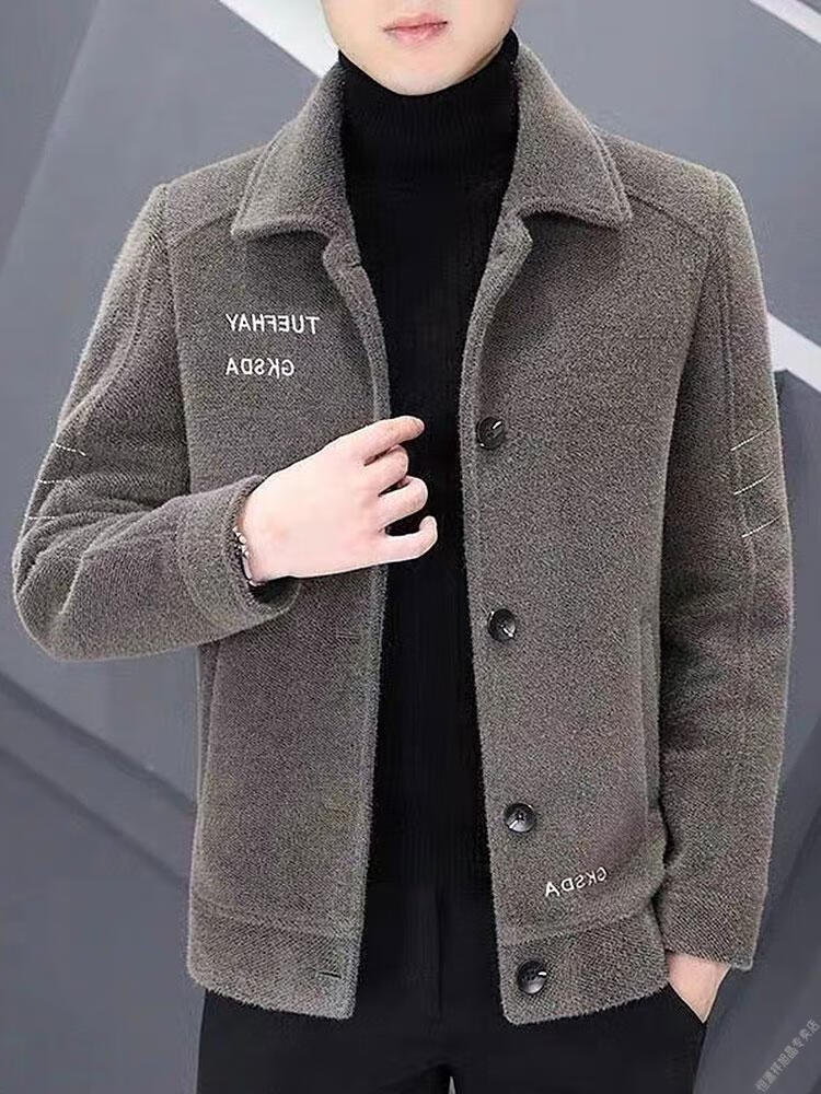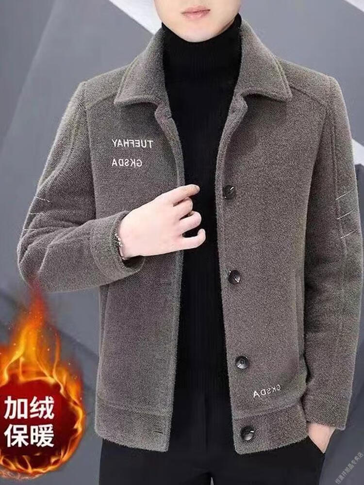 Hengyuanxiang light luxury double-sided woolen woolen coat men's short autumn and winter trendy casual plus velvet thickened lapel jacket khaki plus velvet style 2XL 150-170Jin Jin is equal to 0.5 kg
