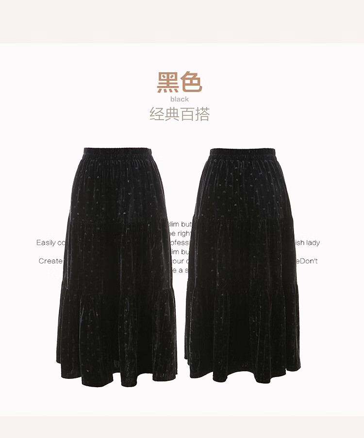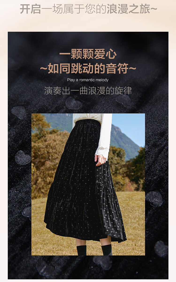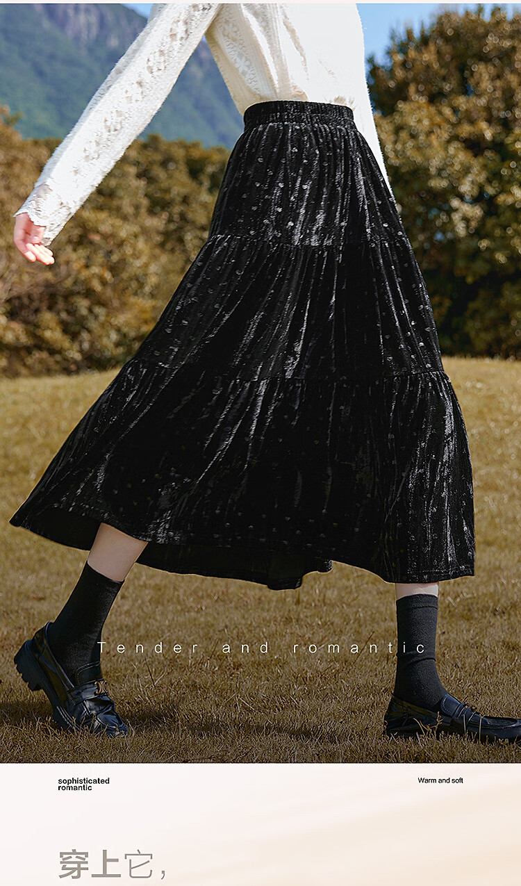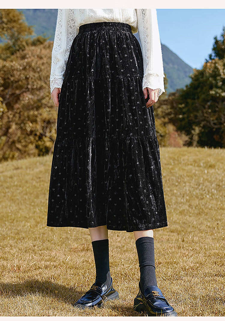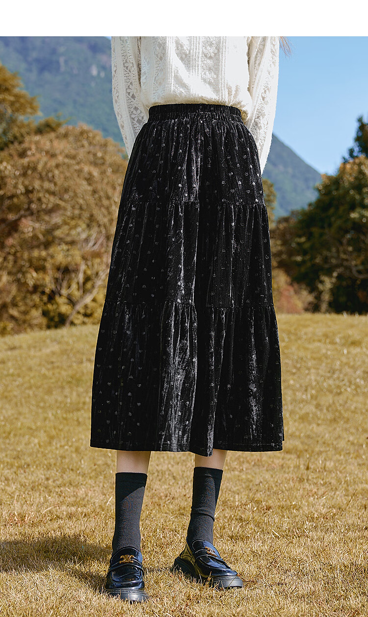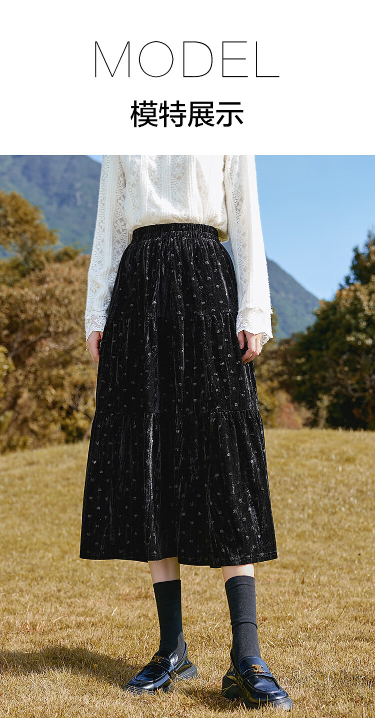 Betu women's winter new skirt elastic waist love velvet embossed skirt women 2411D05 black M