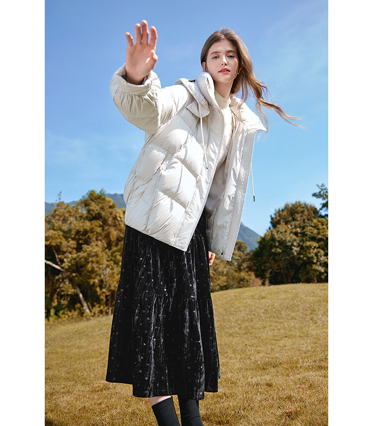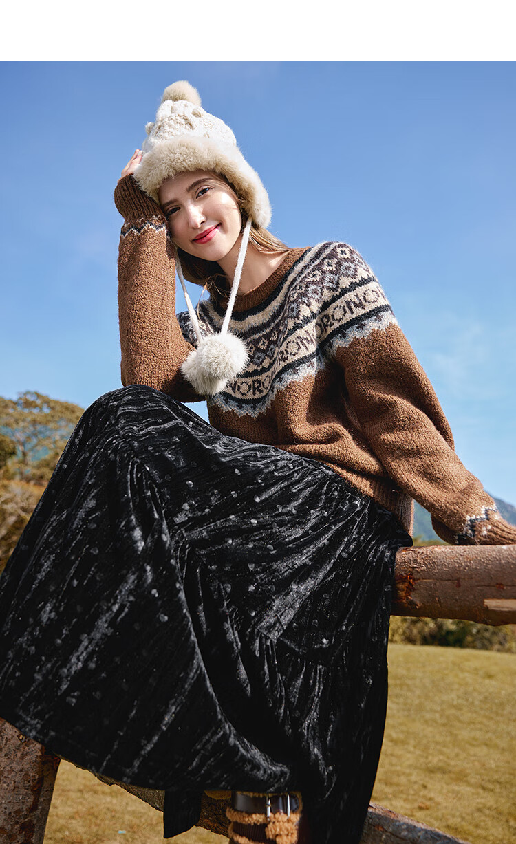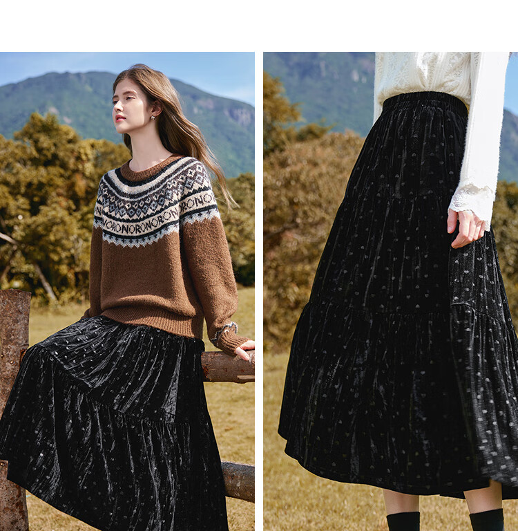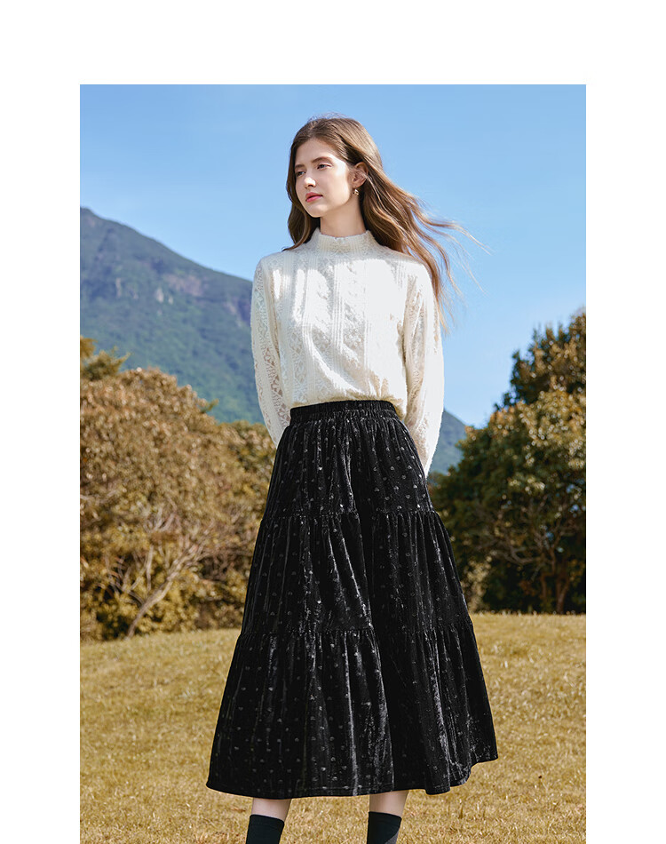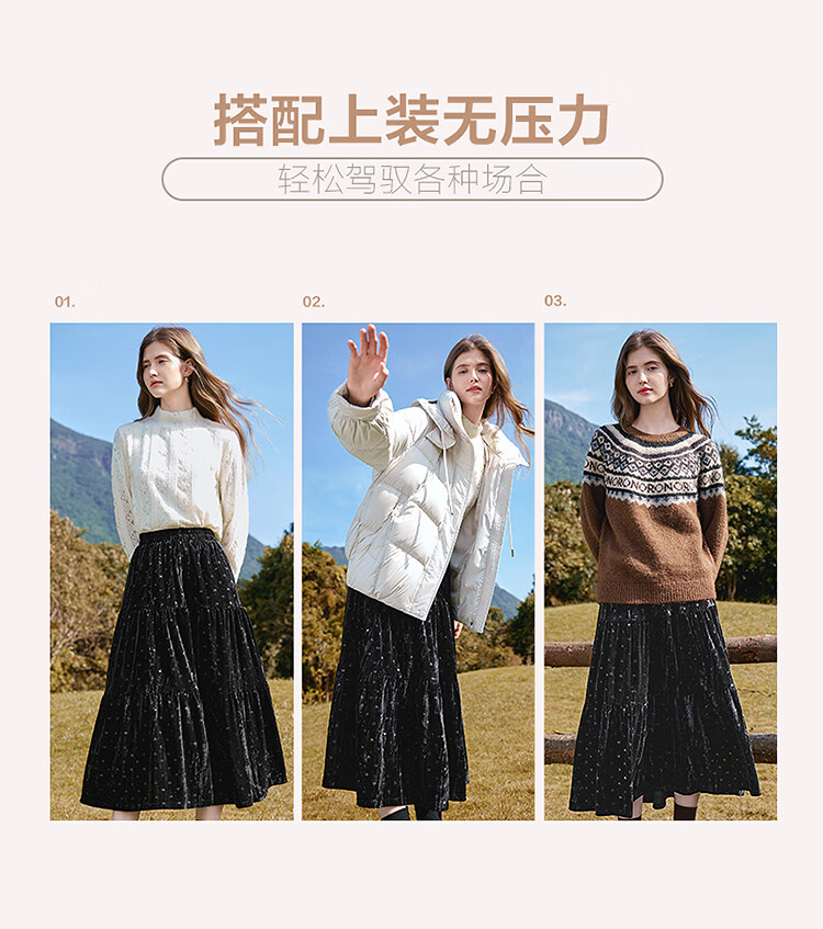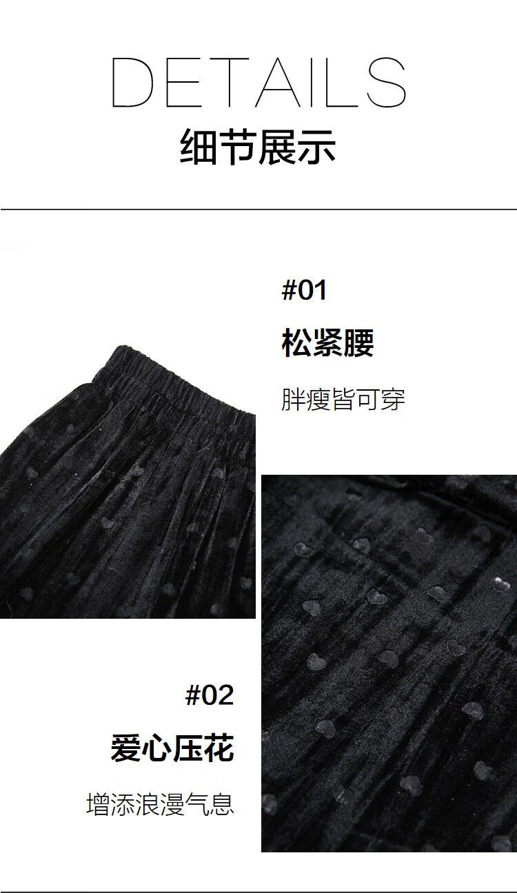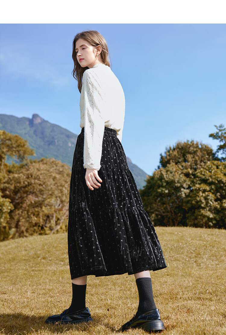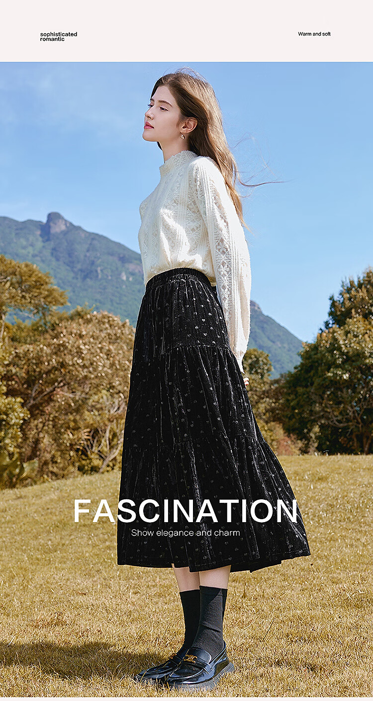 Betu women's winter new skirt elastic waist love velvet embossed skirt women 2411D05 black M