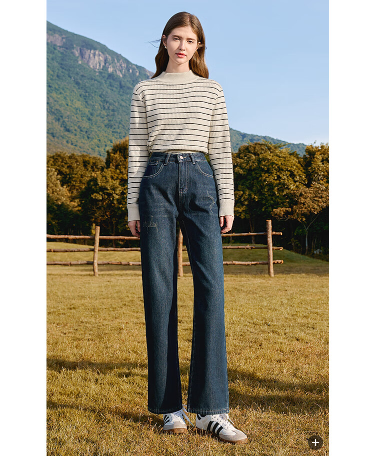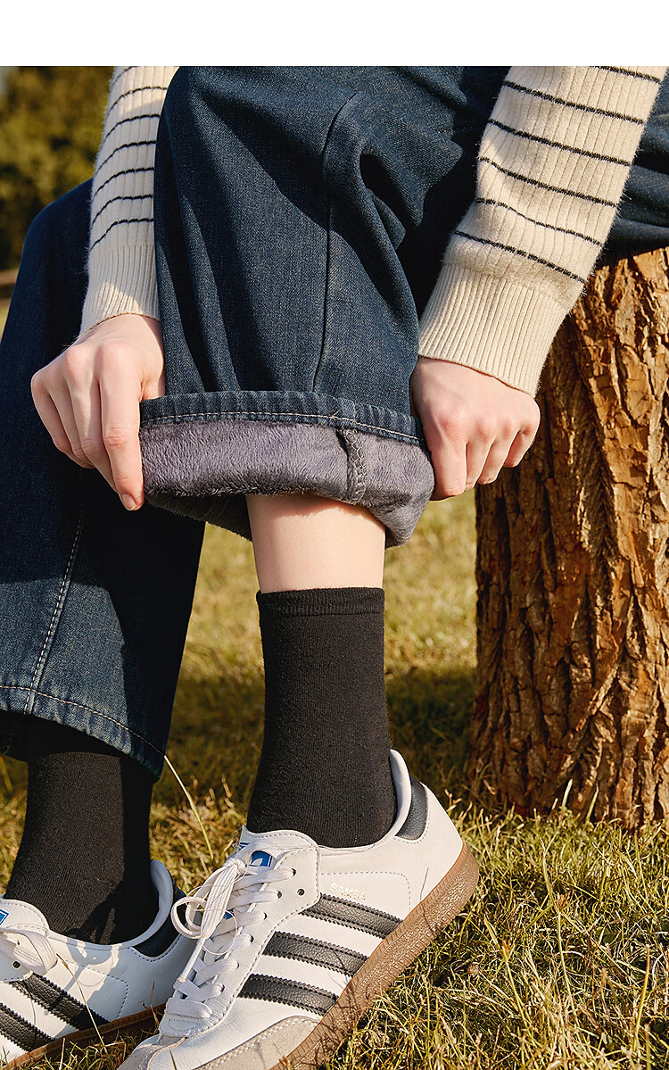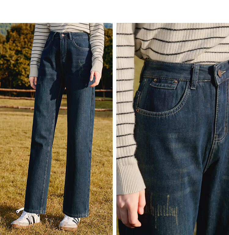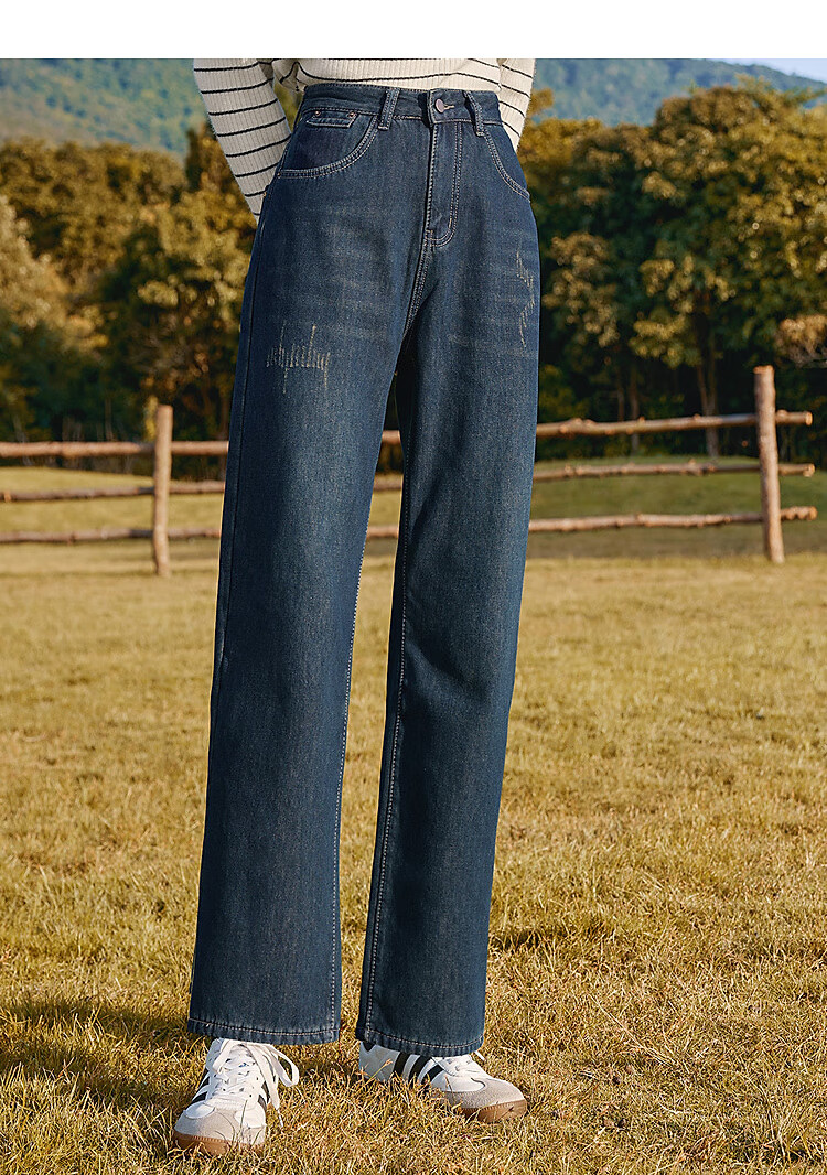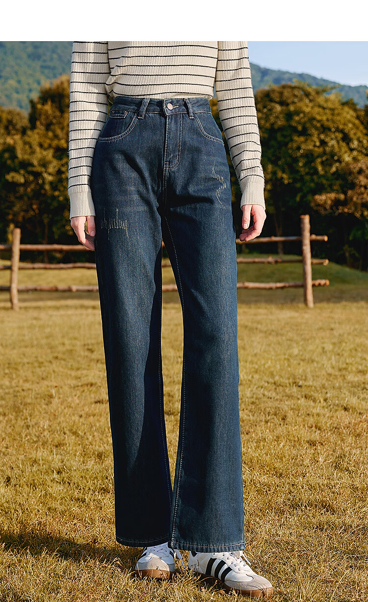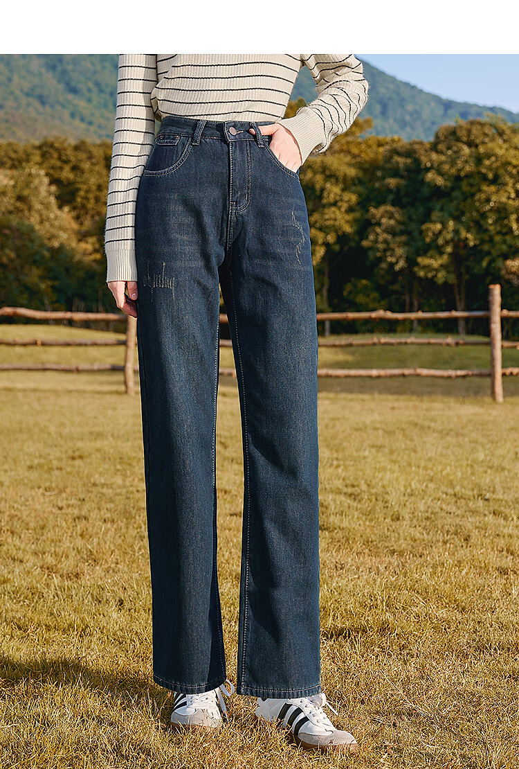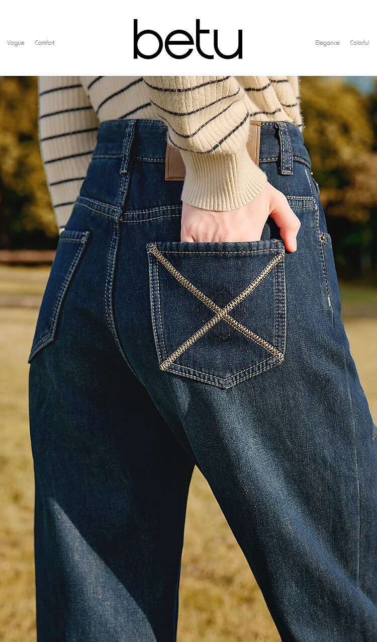 Betu women's new winter jeans plus velvet denim straight pants slimming pants for women 2411X03 denim color M