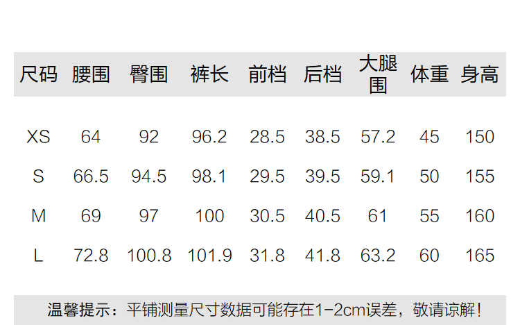 Outseam (cm) 99 cm 101.5 cm 104 cm 106.5 cm 109 cm