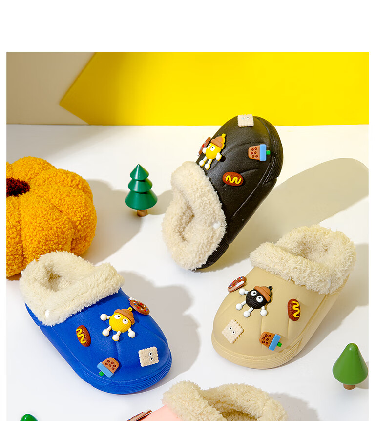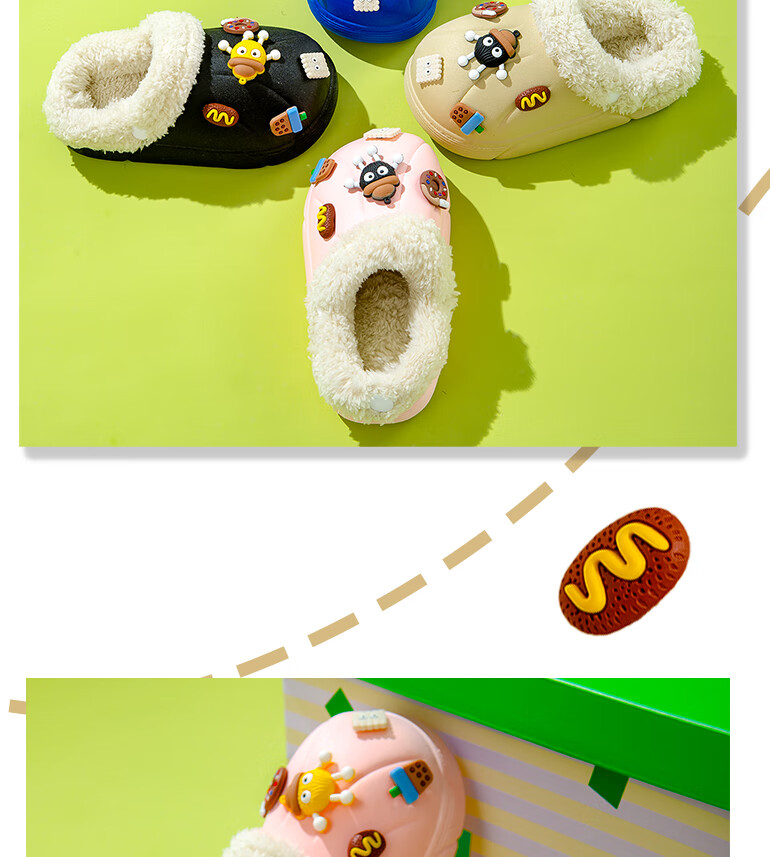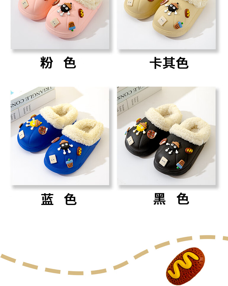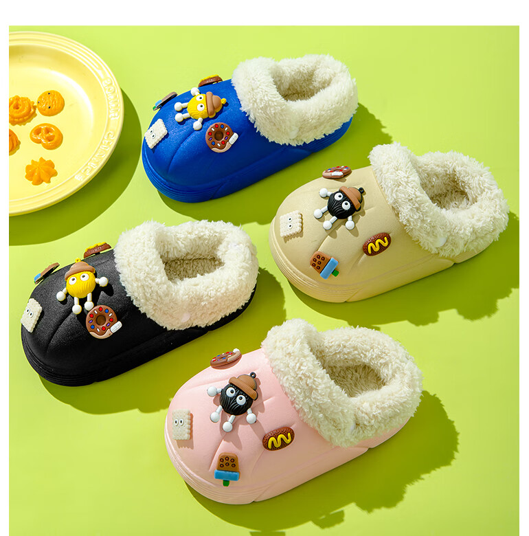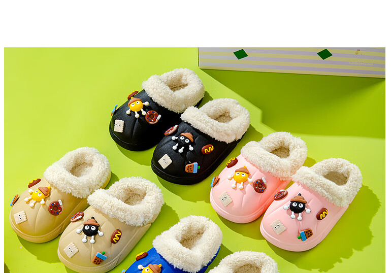 Children's cotton slippers with removable lining for indoor home use, autumn and winter wool slippers, winter parent-child waterproof cotton slippers, black, 36-37, inner length 22cm
