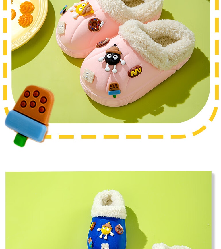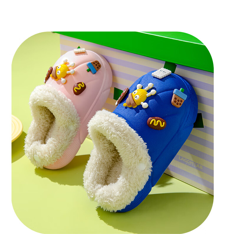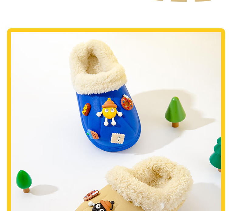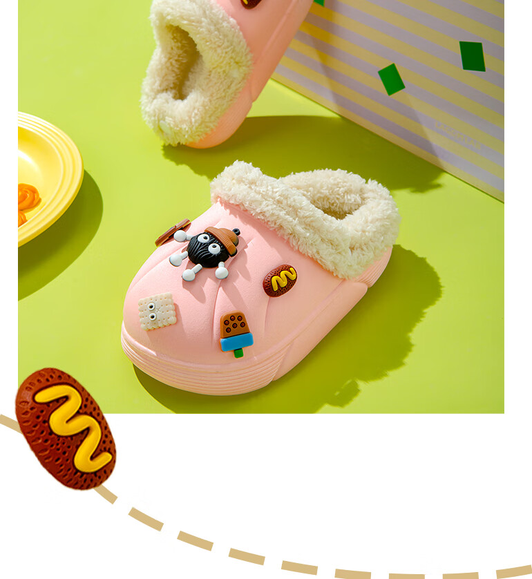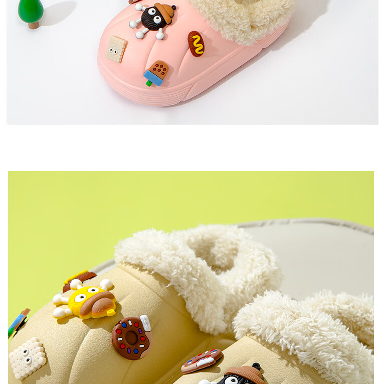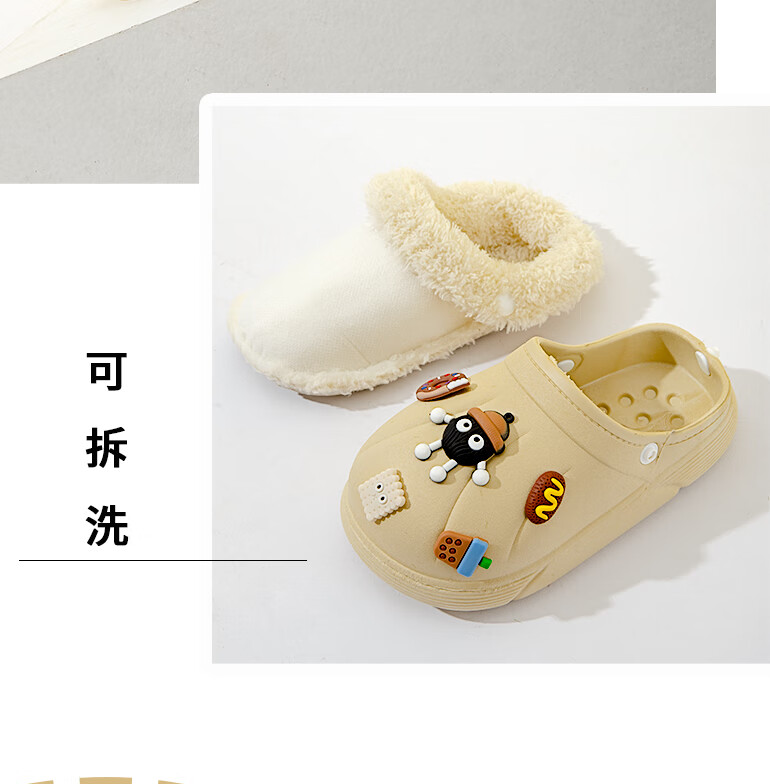 Children's cotton slippers with removable lining for indoor home use, autumn and winter wool slippers, winter parent-child waterproof cotton slippers, black, 36-37, inner length 22cm