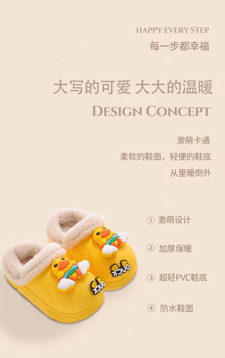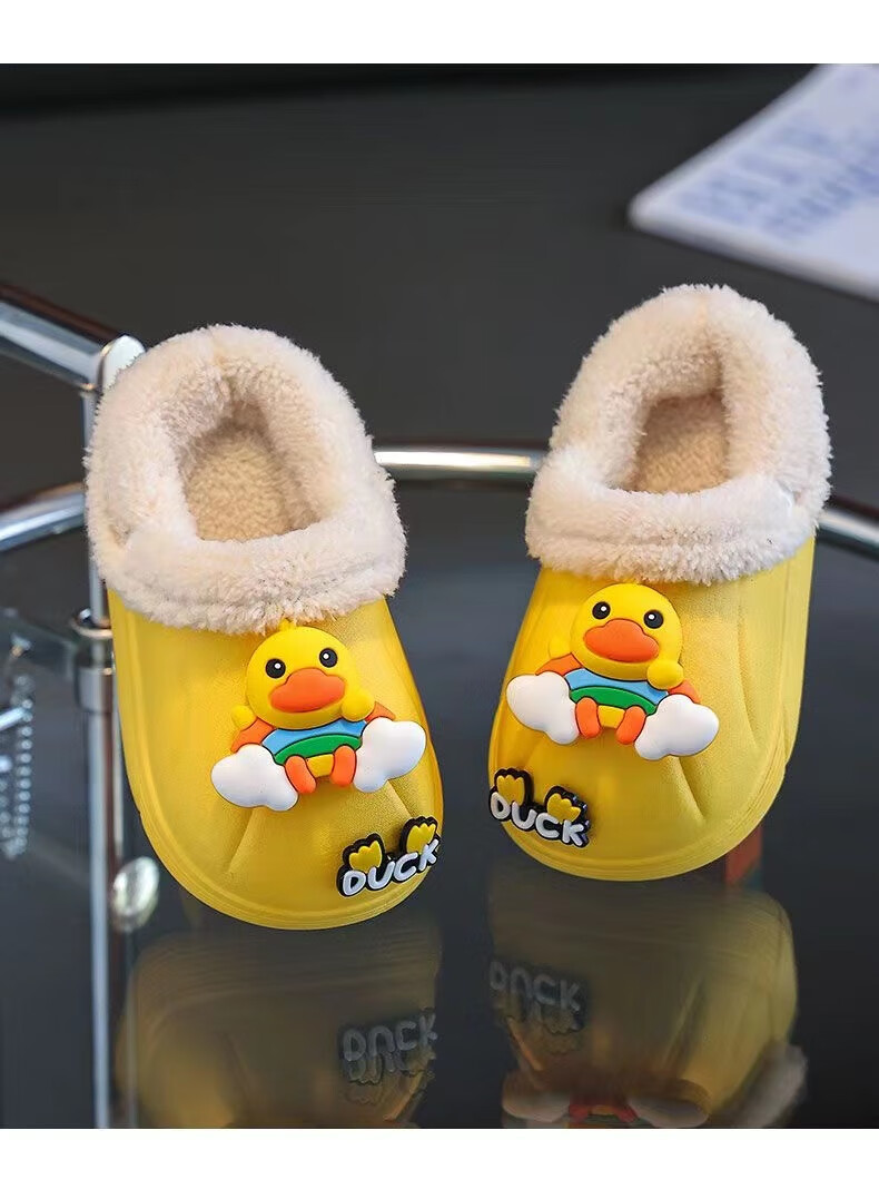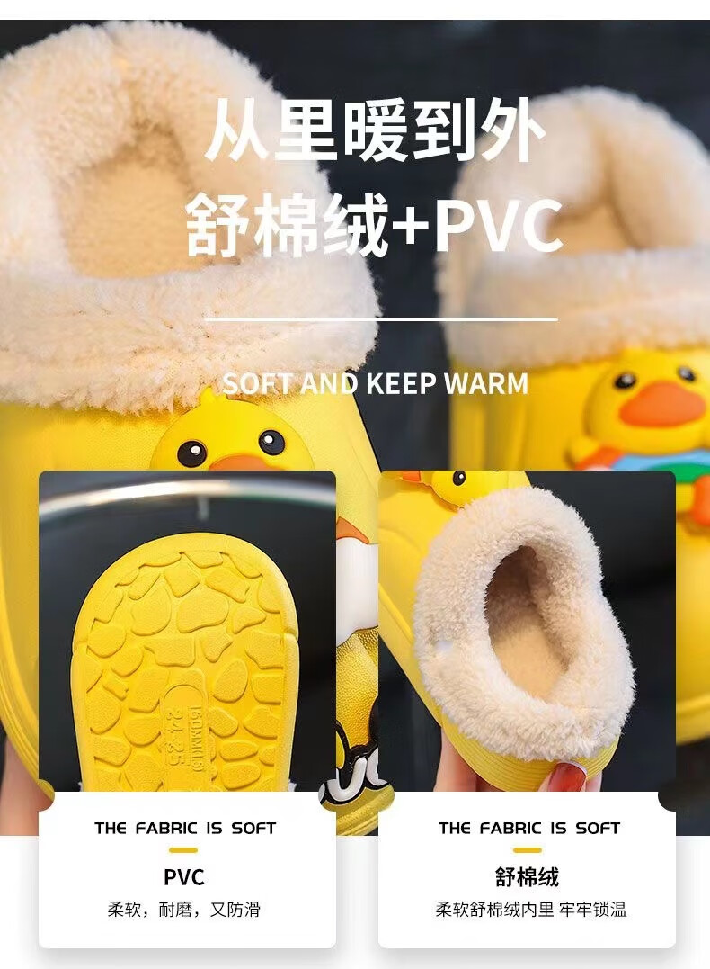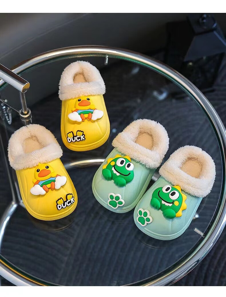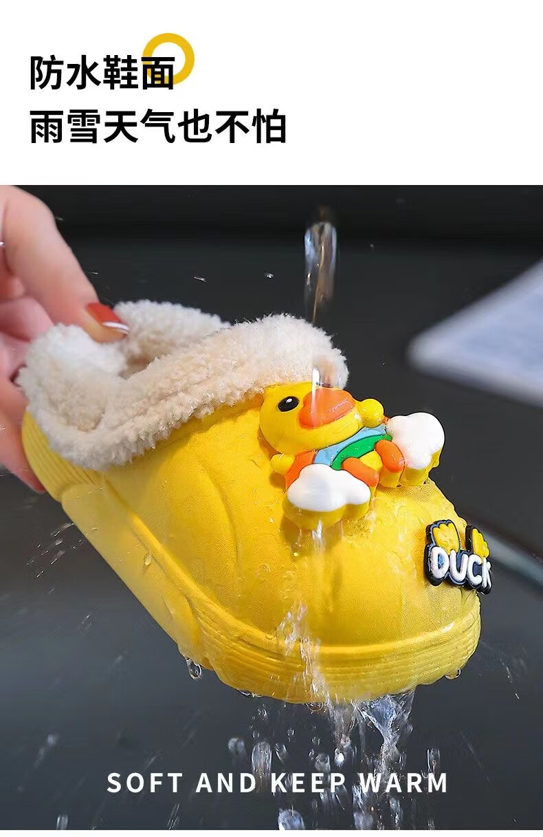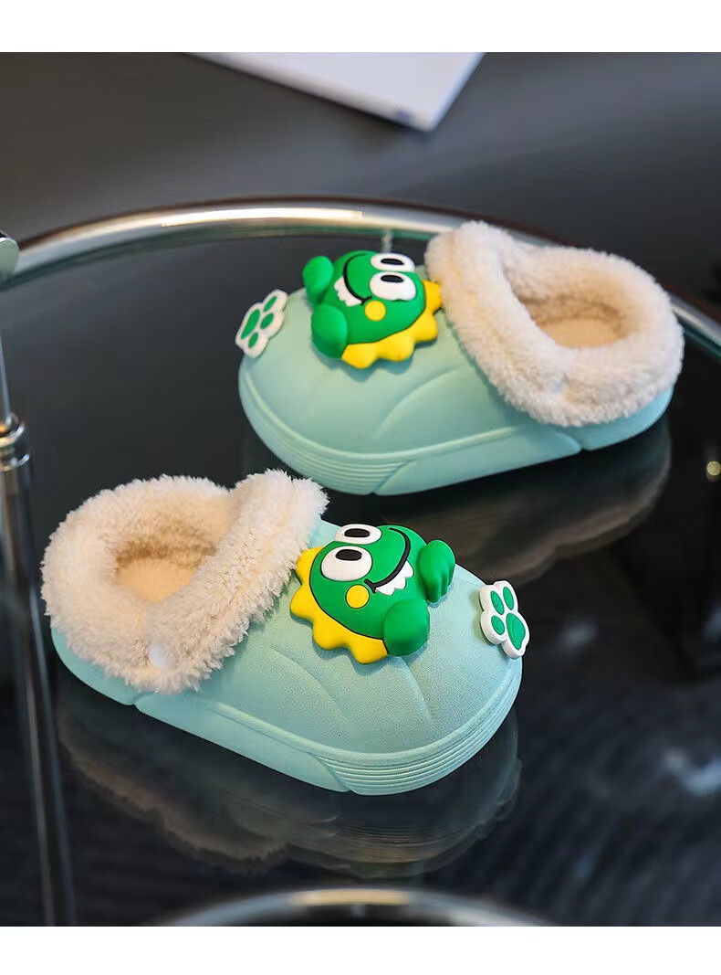 Children's cotton slippers with velvet and thickened removable foot covers in winter, waterproof and non-slip, cute cotton slippers for children and men, rose red, Strawberry Bear, 26.5, inner length 16cm, size too small
