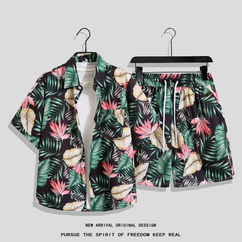 MOLOON swimsuit men's beach flower shirt suit loose large size Hawaii seaside vacation casual couple shirt suit 3682 suit XL (recommended weight 125-145Jin Jin equals 0.5 kg)
