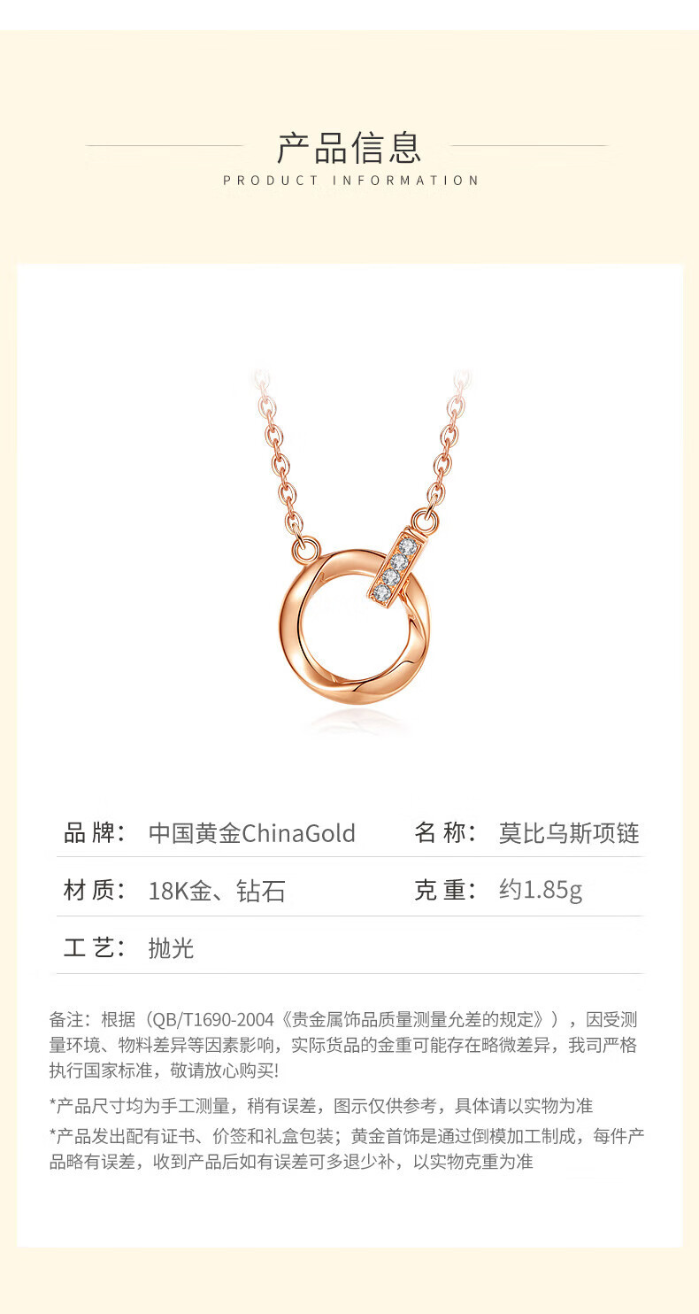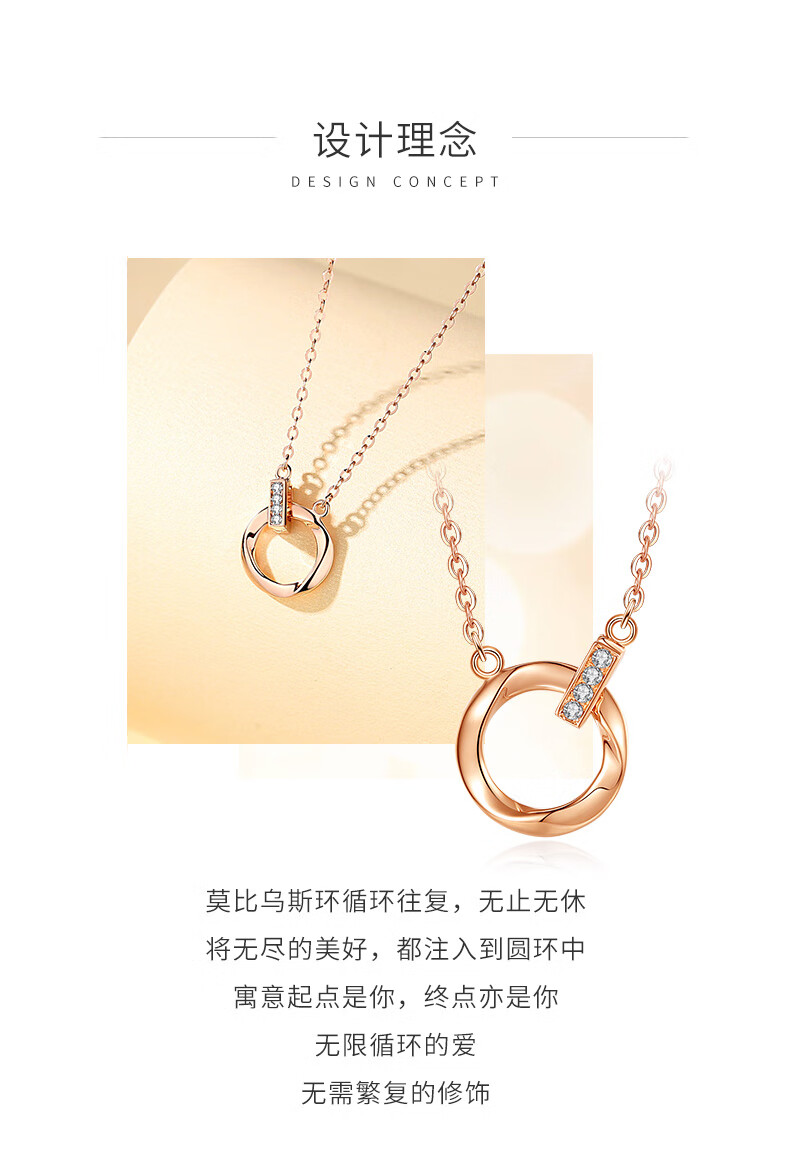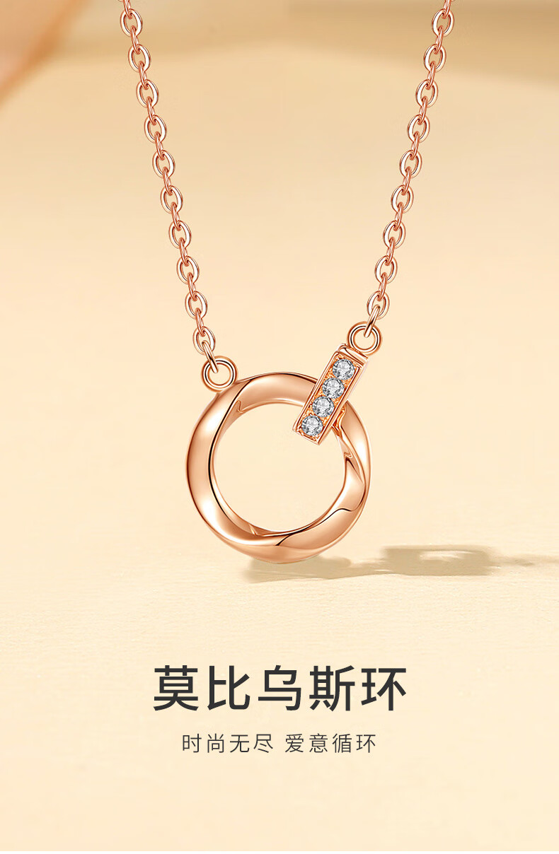 CHINA GOLD Möbius strip 18K gold necklace for women rose gold pendant diamond set chain Valentine's Day birthday gift for girlfriend 18K gold Möbius strip necklace rose gift box