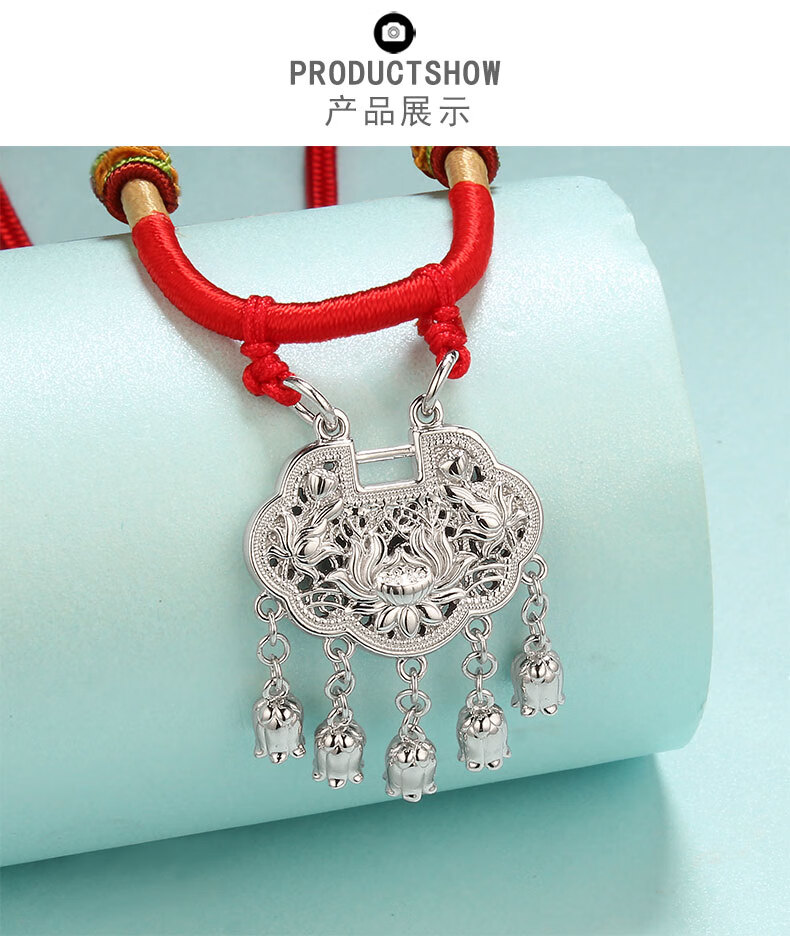 Jin Yixin platinum pendant for women pt950 platinum necklace women's pendant separate pendant chain platinum necklace women's safety lock pendant weighs about 10.9 grams red rope