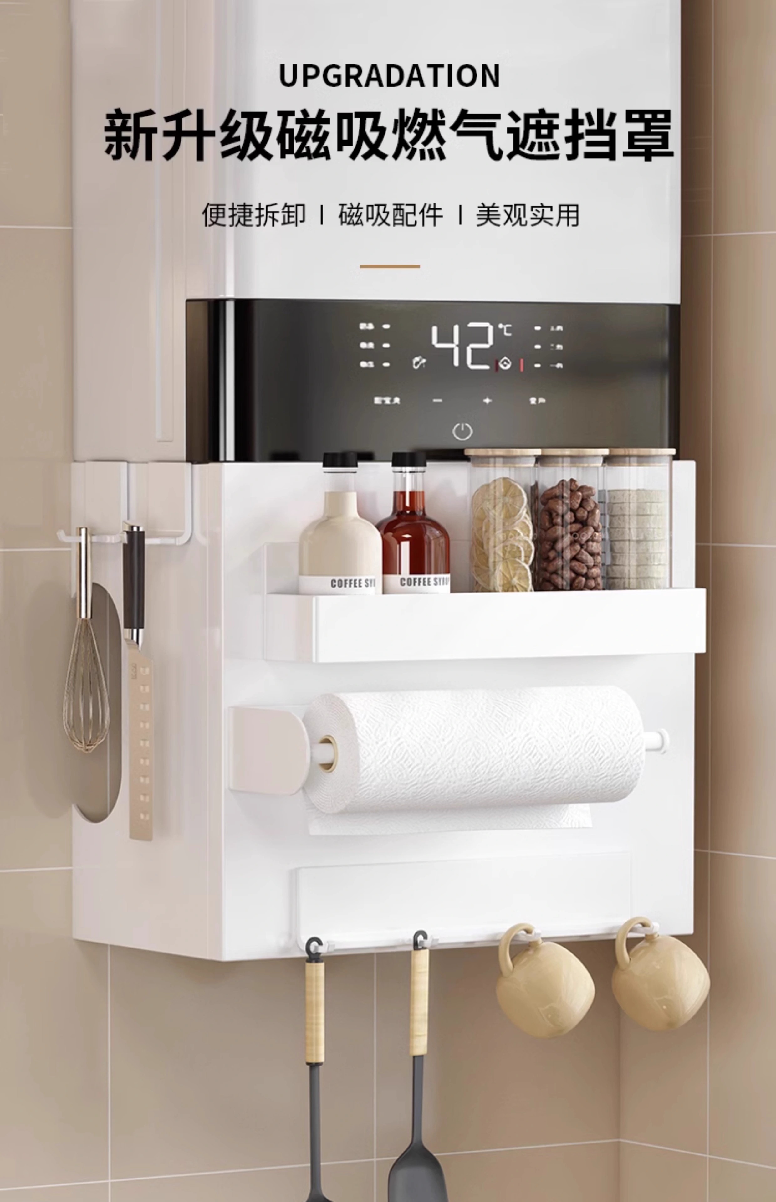 L AMAVO water heater cover, gas kitchen pipe rack cover, hole plate magnetic suction punch-free decorative cover, magnetic suction paper towel holder