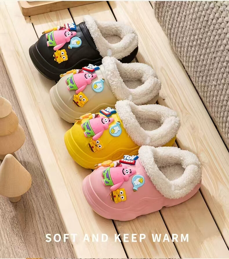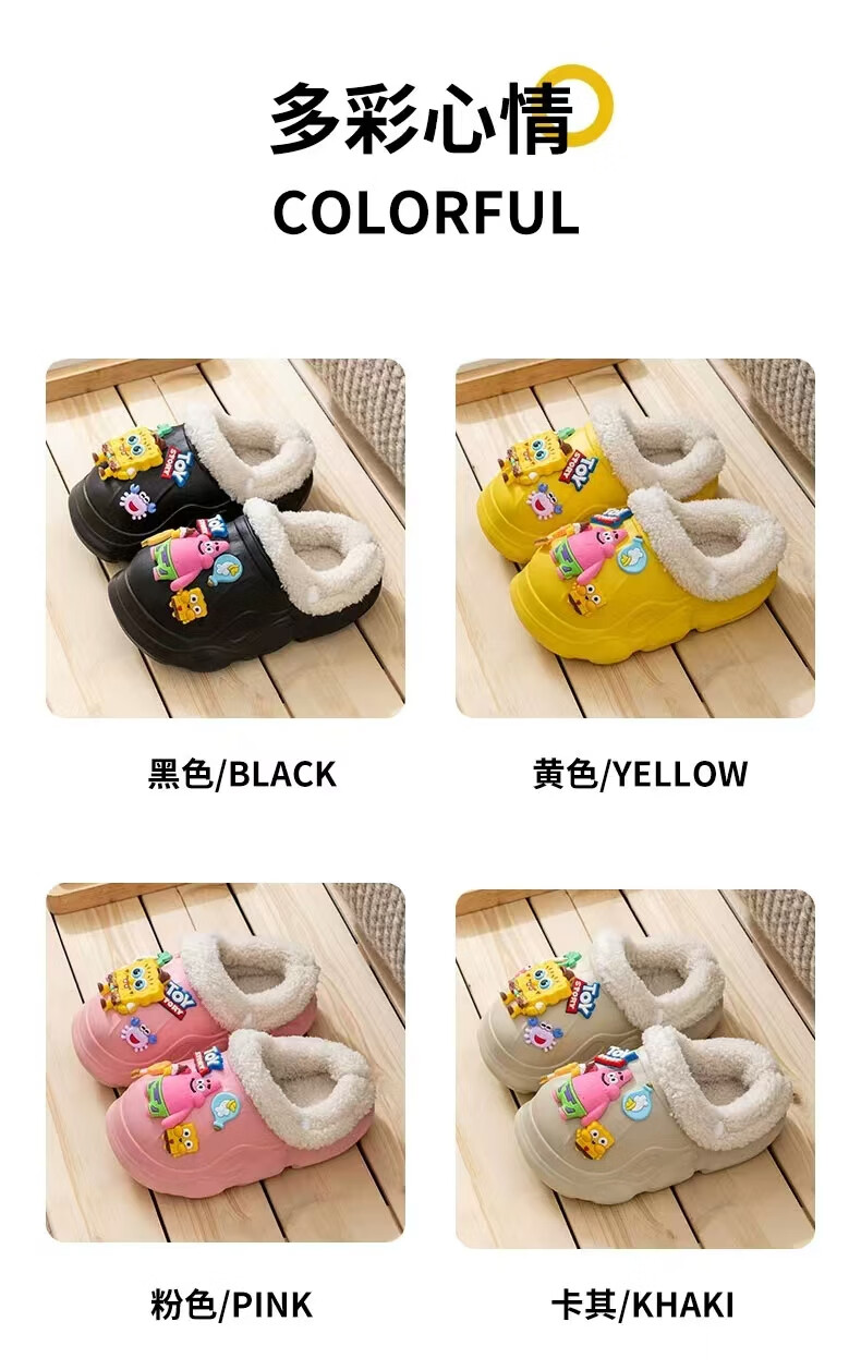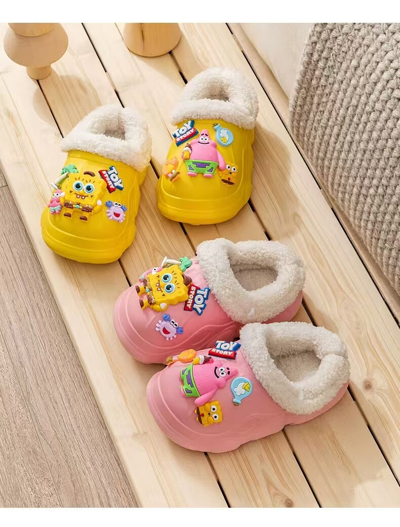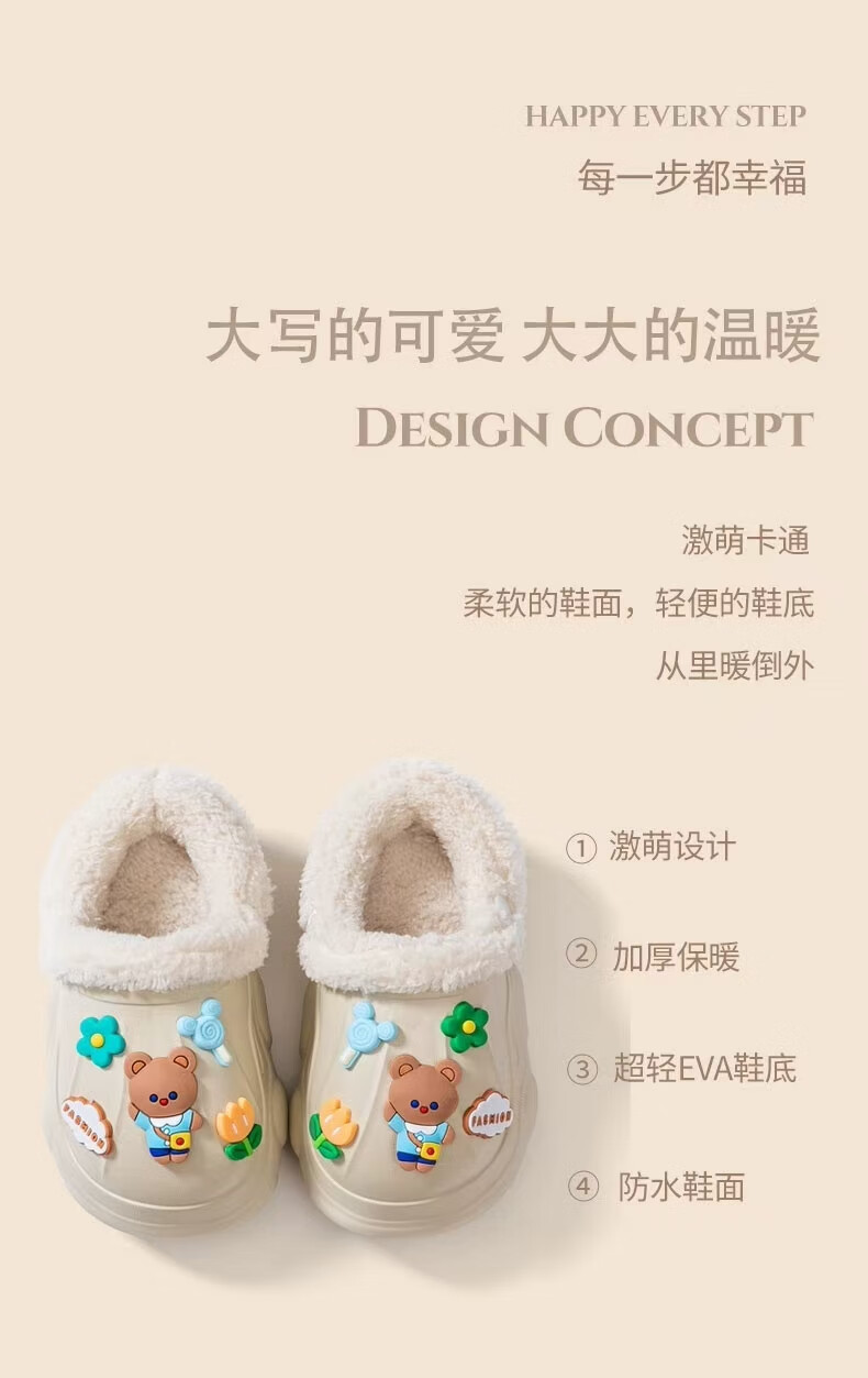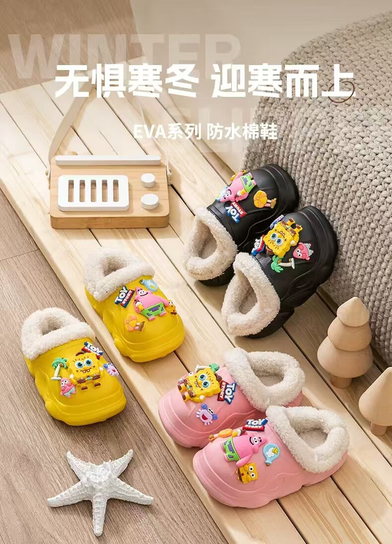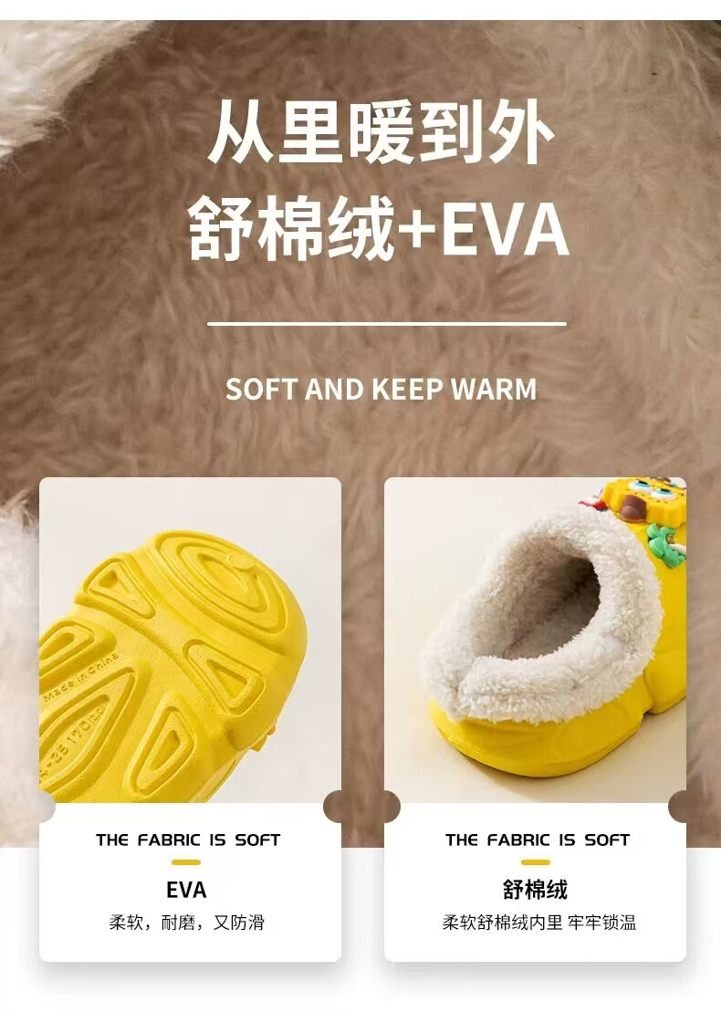 EVA children's cotton slippers for boys and girls, parent-child style, home indoor, soft, waterproof, non-slip, velvet warm shoes, pink 24, size 2-25, inner length 14-14.5 cm