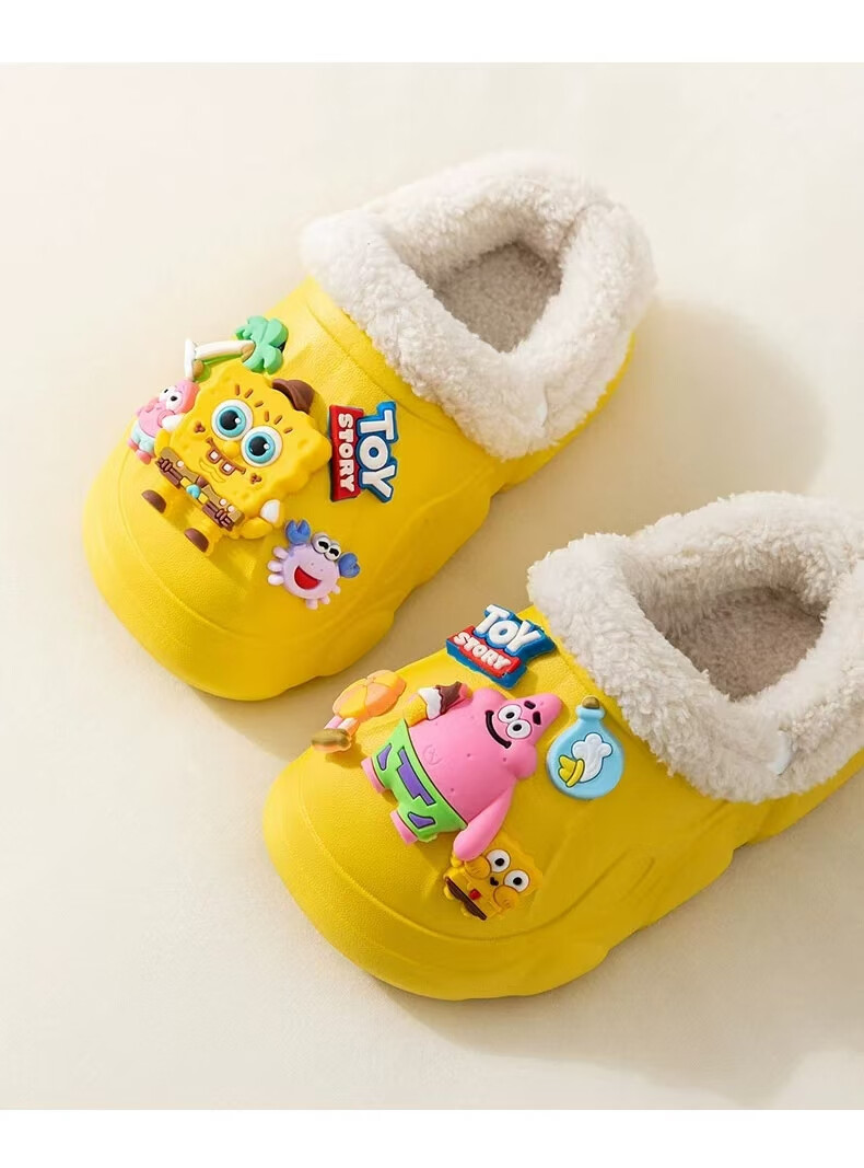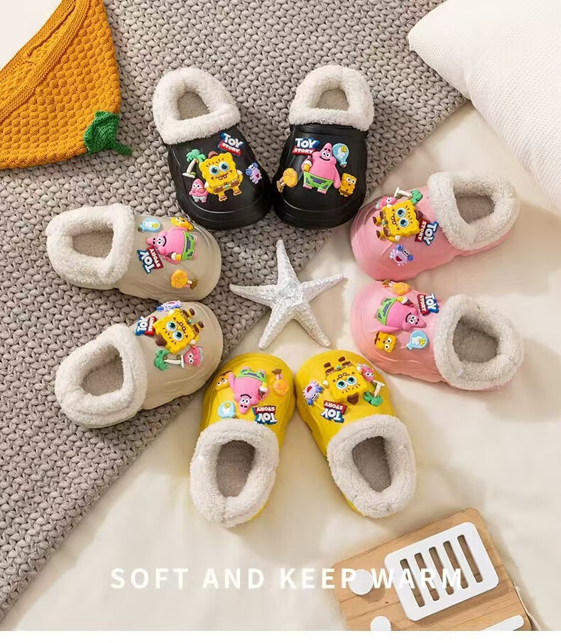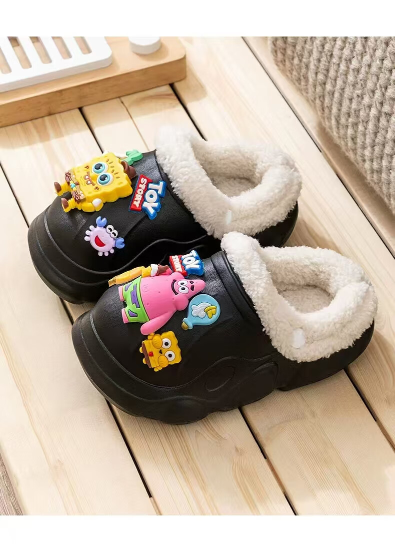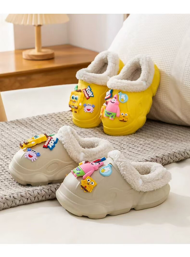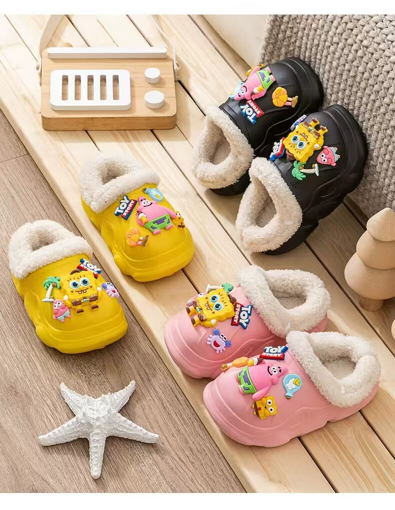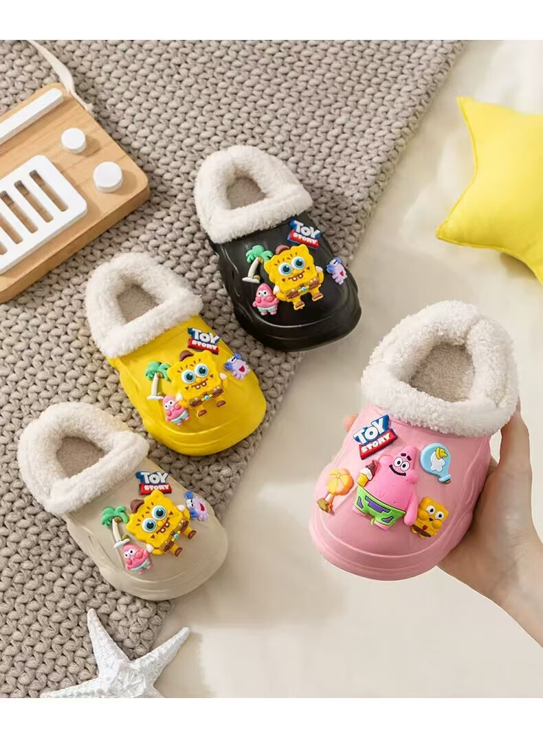 EVA children's cotton slippers for boys and girls, parent-child style, home indoor, soft, waterproof, non-slip, velvet warm shoes, pink 24, size 2-25, inner length 14-14.5 cm