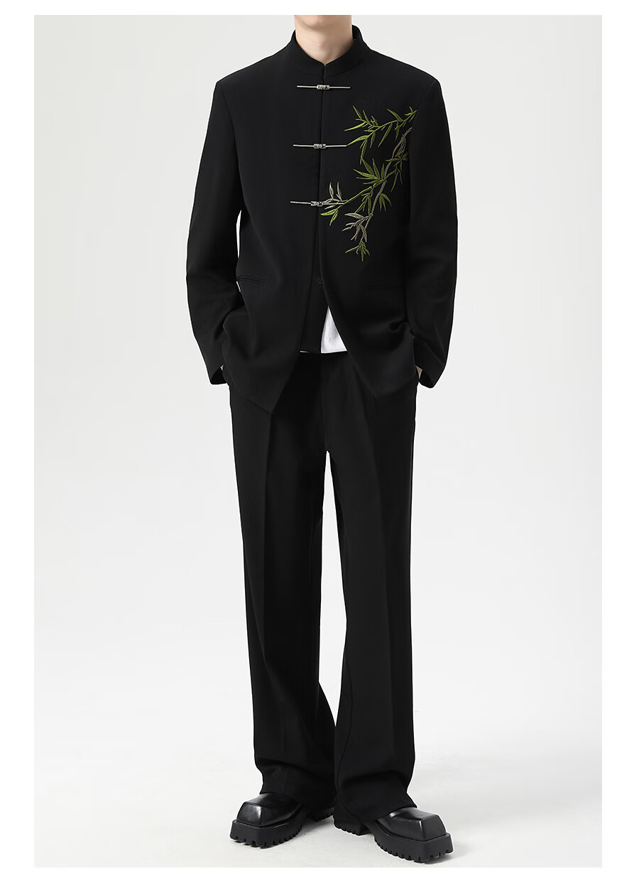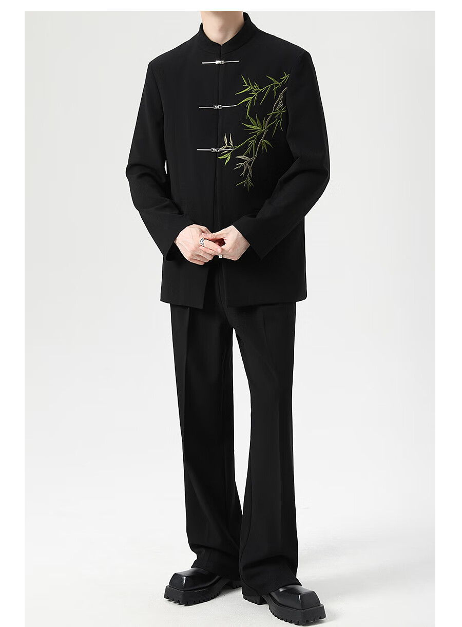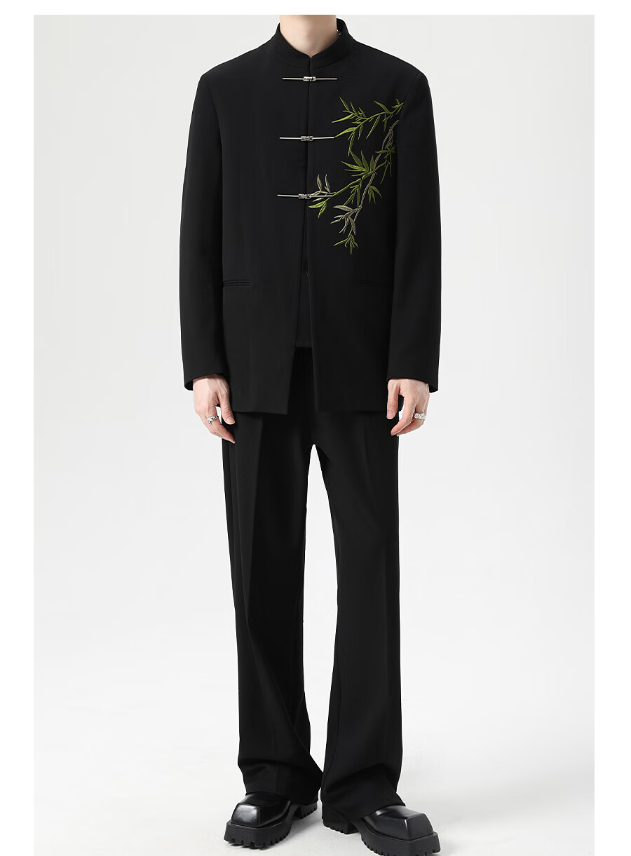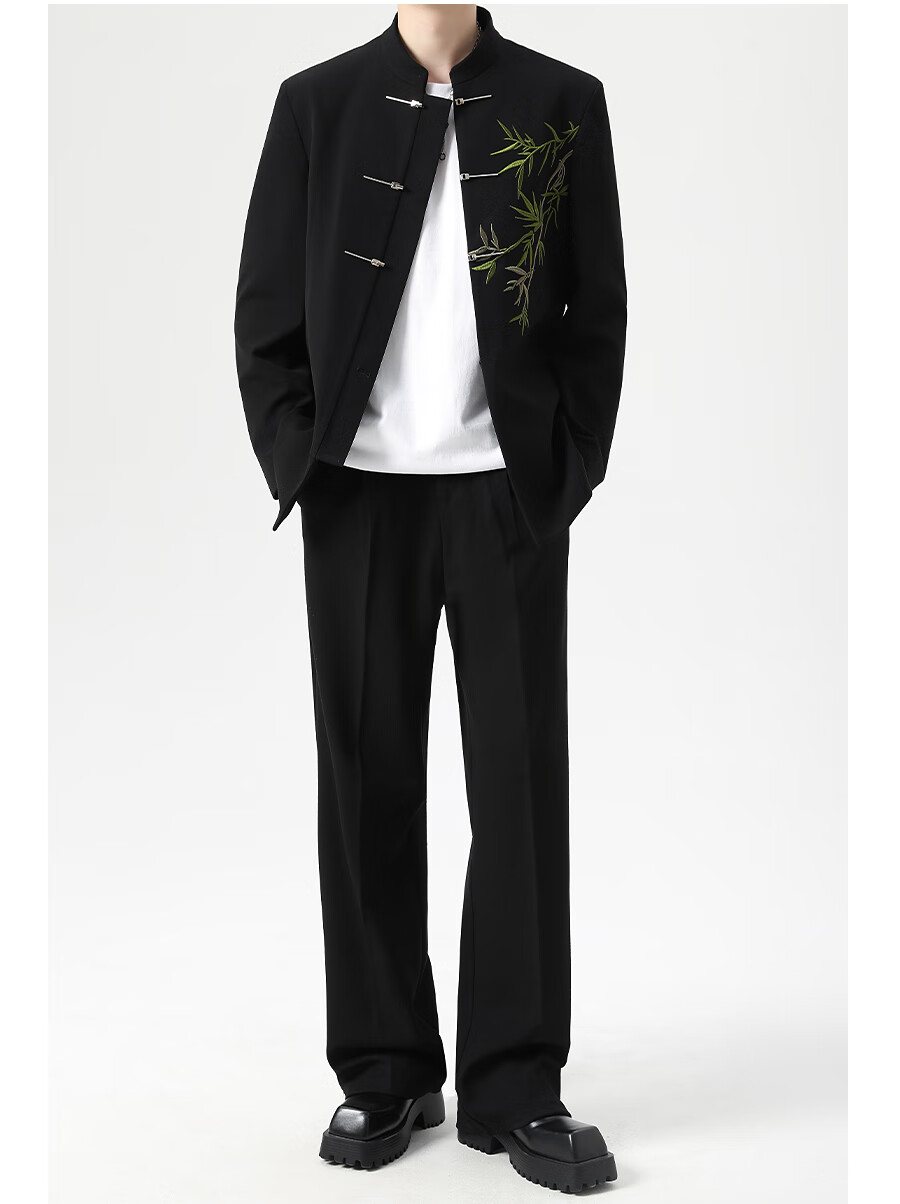 ROMON's new tunic suit, stand-up collar, new Chinese-style suit for men, engagement wedding, groom's high-end handsome suit, two-piece set, jacket + pants XL