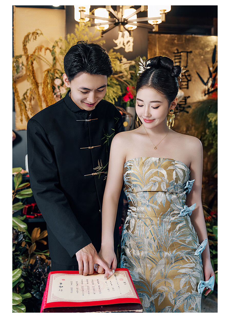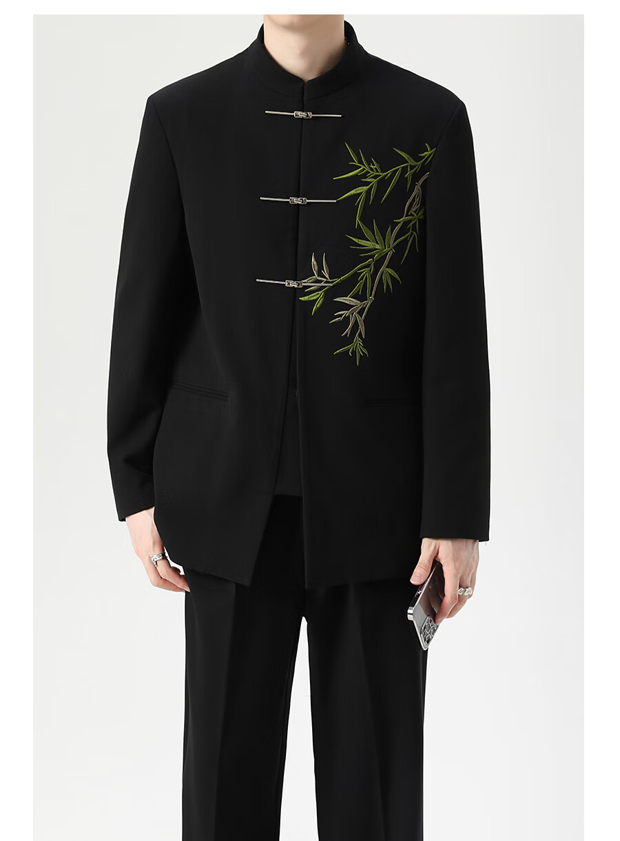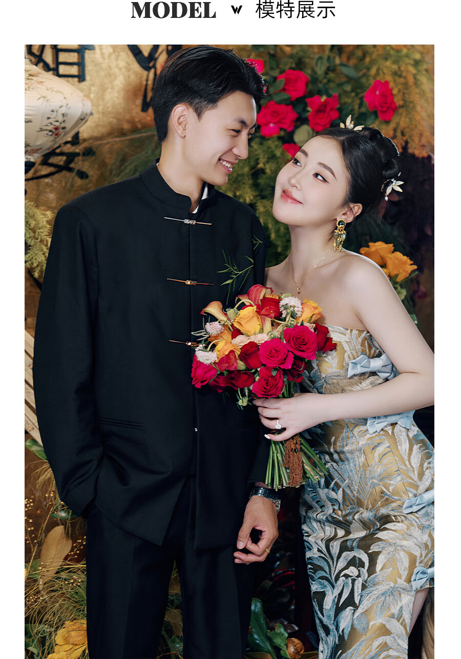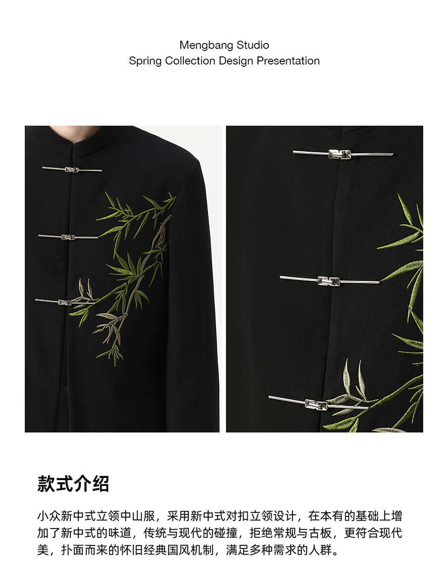 ROMON's new tunic suit, stand-up collar, new Chinese-style suit for men, engagement wedding, groom's high-end handsome suit, two-piece set, jacket + pants XL