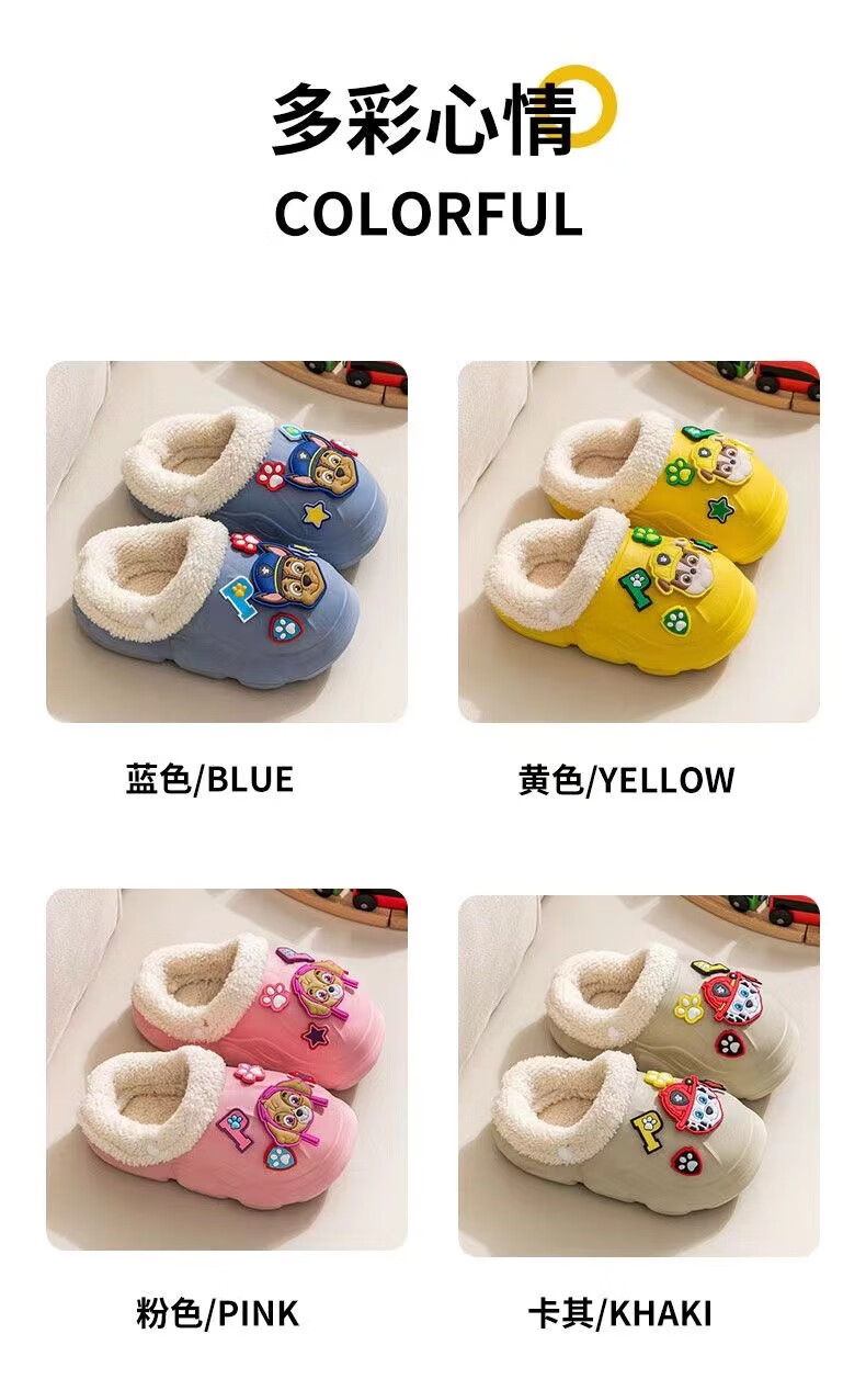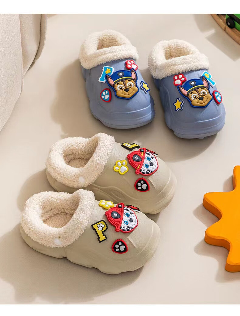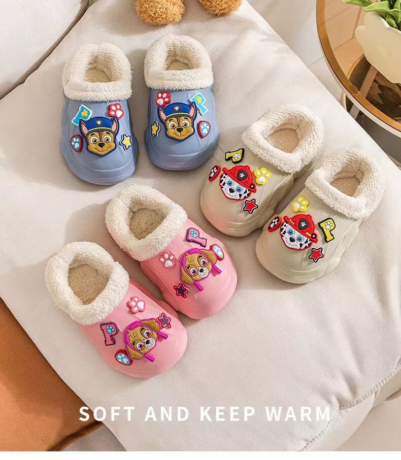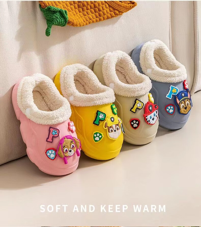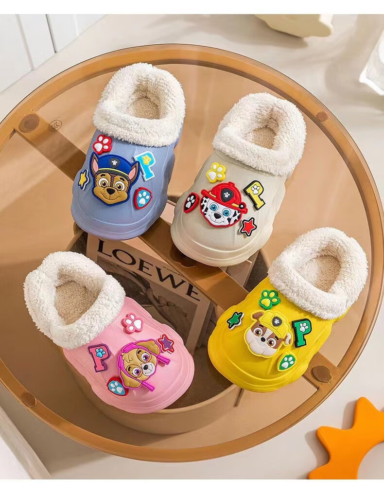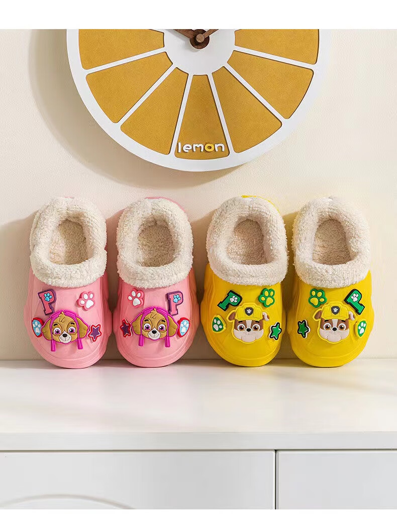 PAW PATROL EVA children's cotton slippers Paw Patrol winter warm waterproof and non-slip removable parent-child slippers for boys and girls, yellow, size 32-33, inner length 18-18.5 cm