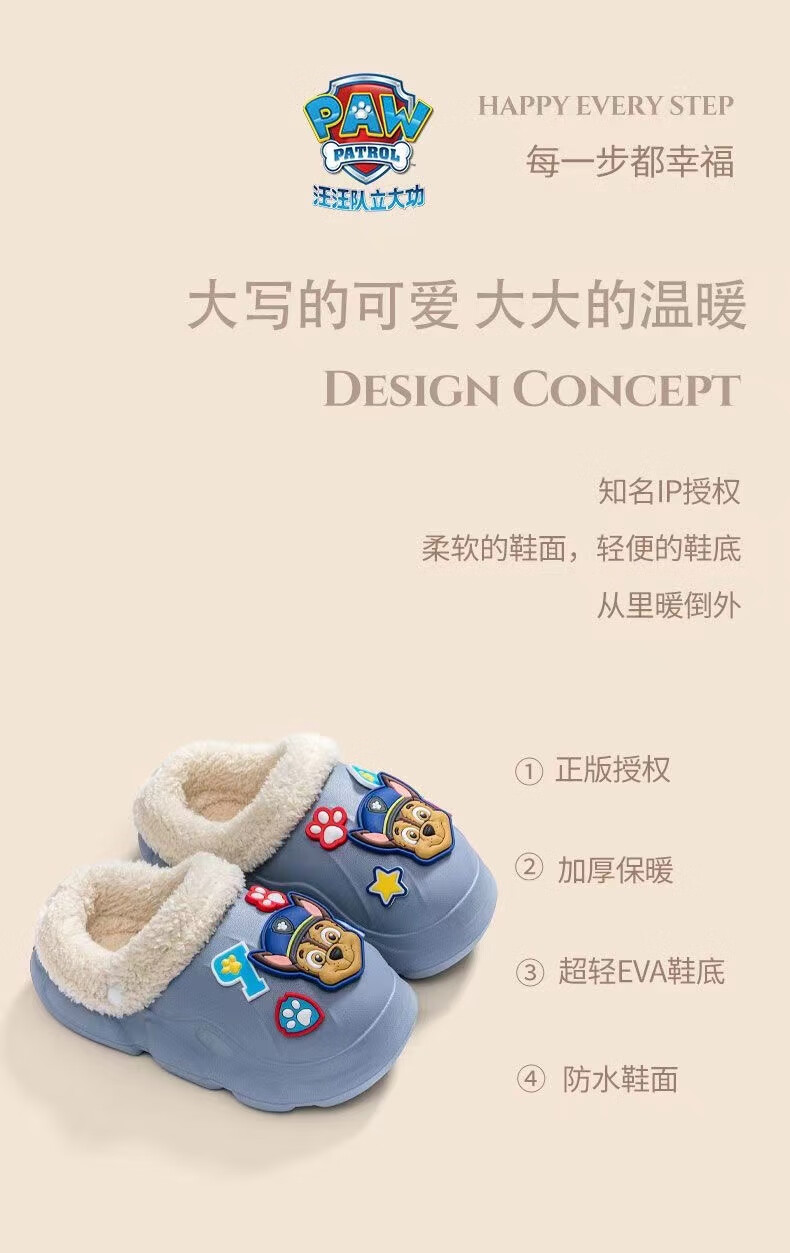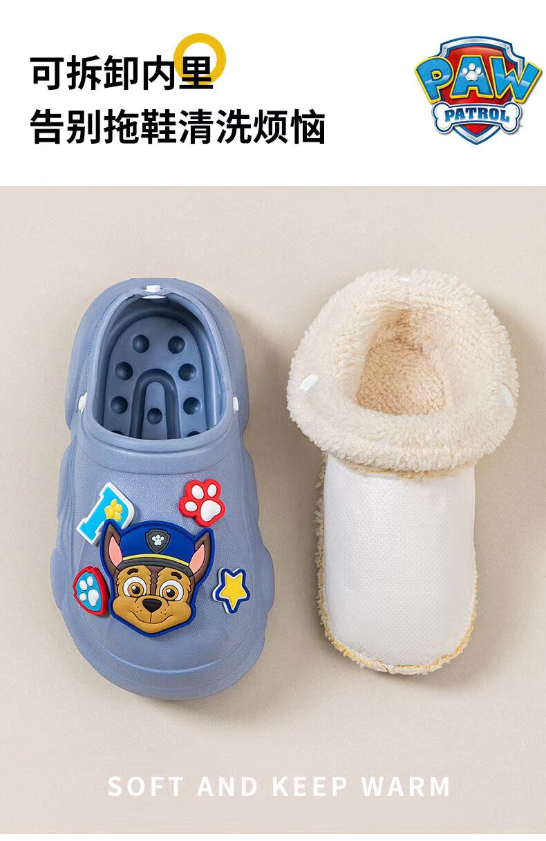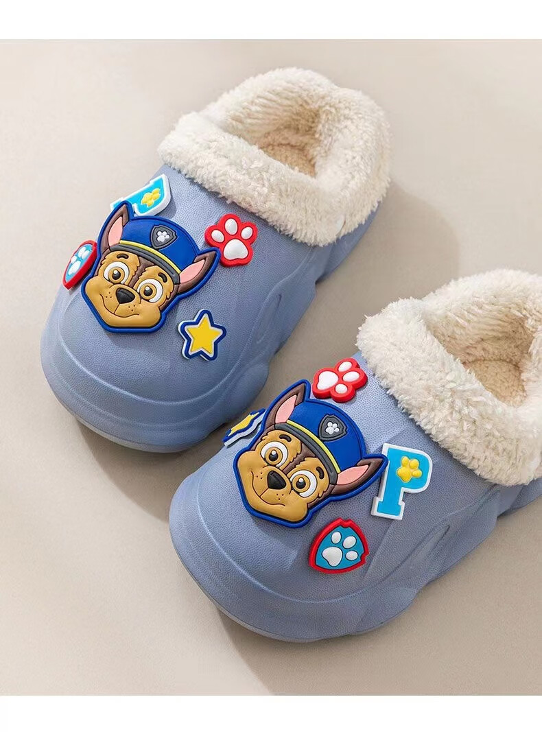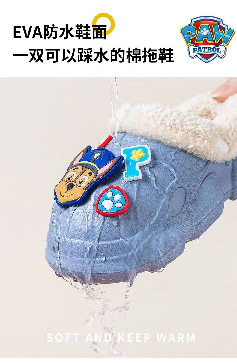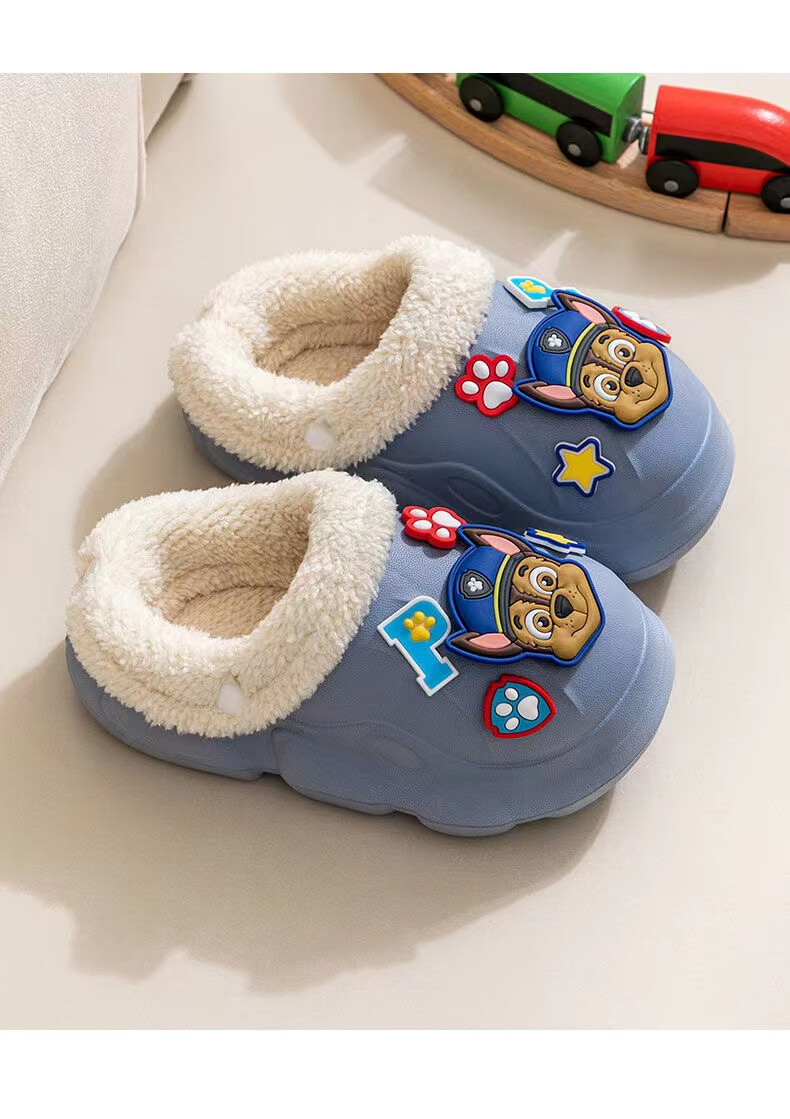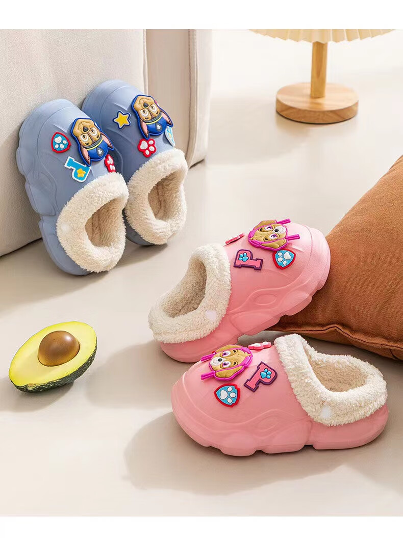 PAW PATROL EVA children's cotton slippers Paw Patrol winter warm waterproof and non-slip removable parent-child slippers for boys and girls, yellow, size 32-33, inner length 18-18.5 cm