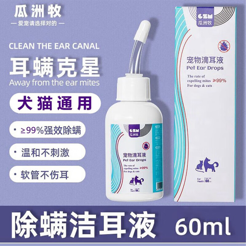 Guazhou Mu Ear Mite Ear Drops for Pet Cats Ear Mite Fungus Remover for Cats and Dogs Ear Cleansing Mite + Bacteria Ear Cleansing Solution 120ml + Cotton Swabs