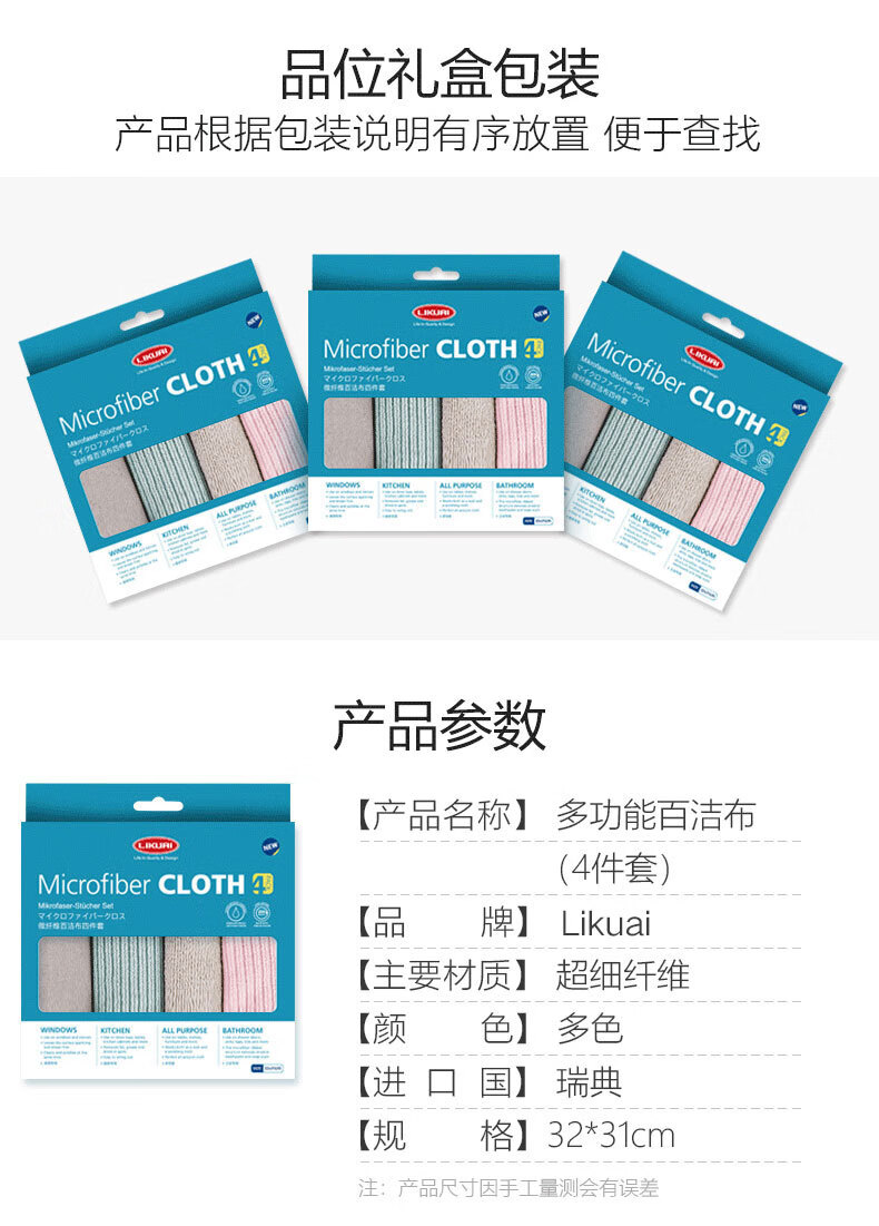 Likuai imported rags, scouring pads, kitchen household fiber cloths, dishcloths, cleaning cloths, caterpillar kitchen cleaning wipes