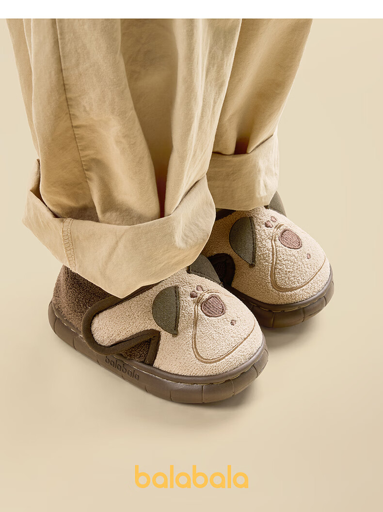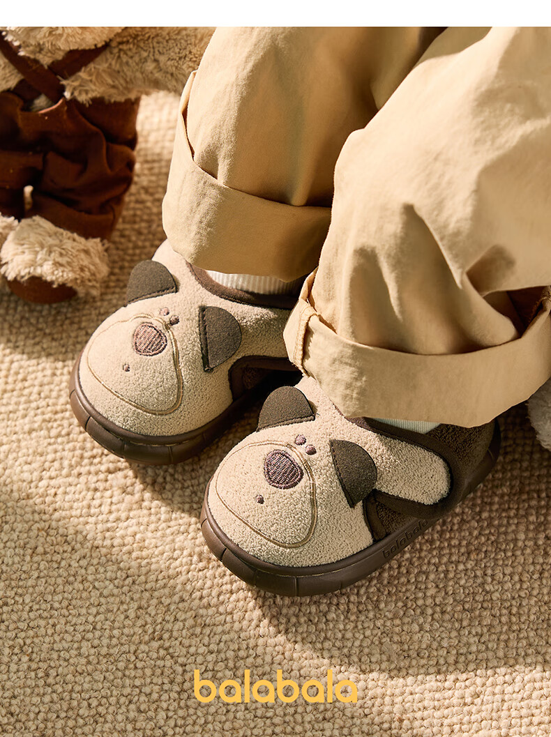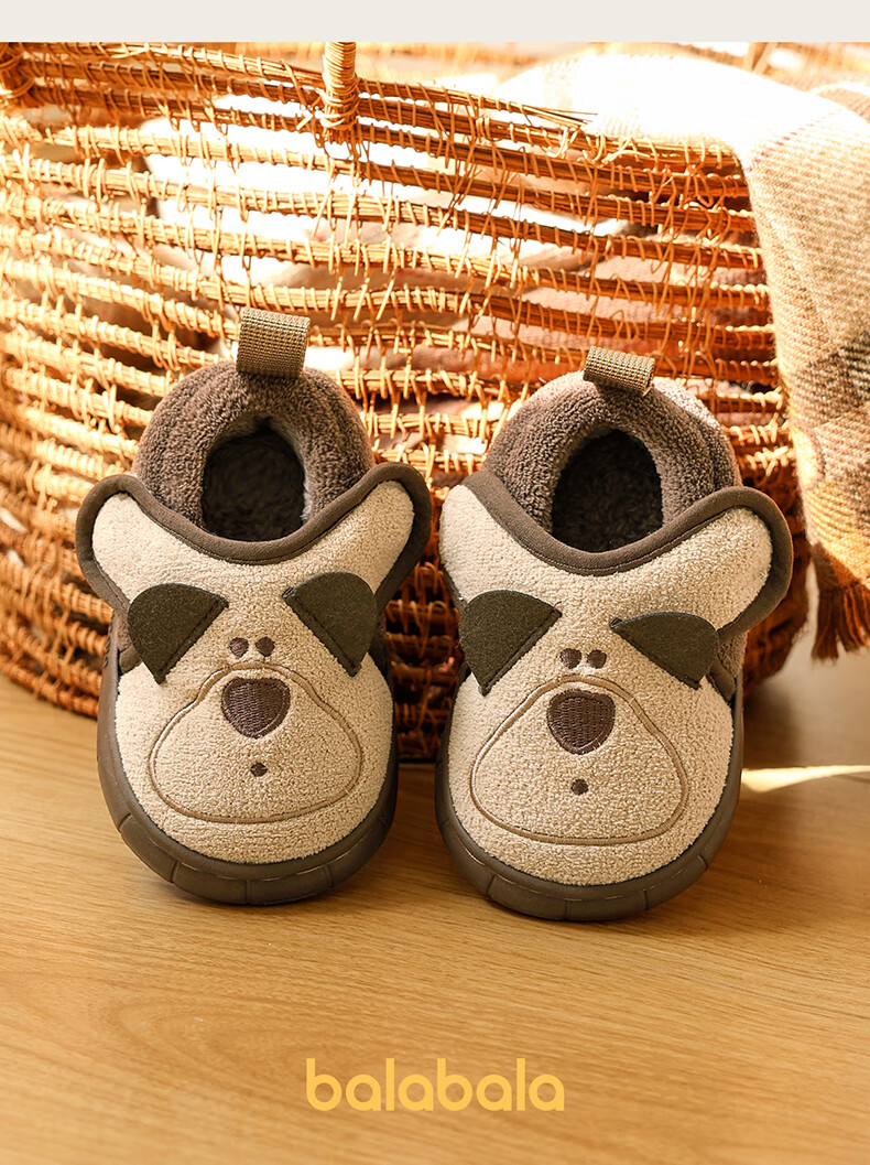 Balabala Children's Cotton Slippers for Boys and Baby Winter Soft Bottom Indoor Cartoon Girls Lightweight Furry Shoes with Heel Warm Cotton Shoes Brown Bear 21 Inner Length 14cm (140) Suitable for Feet 13cm Long