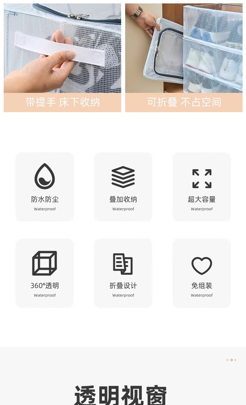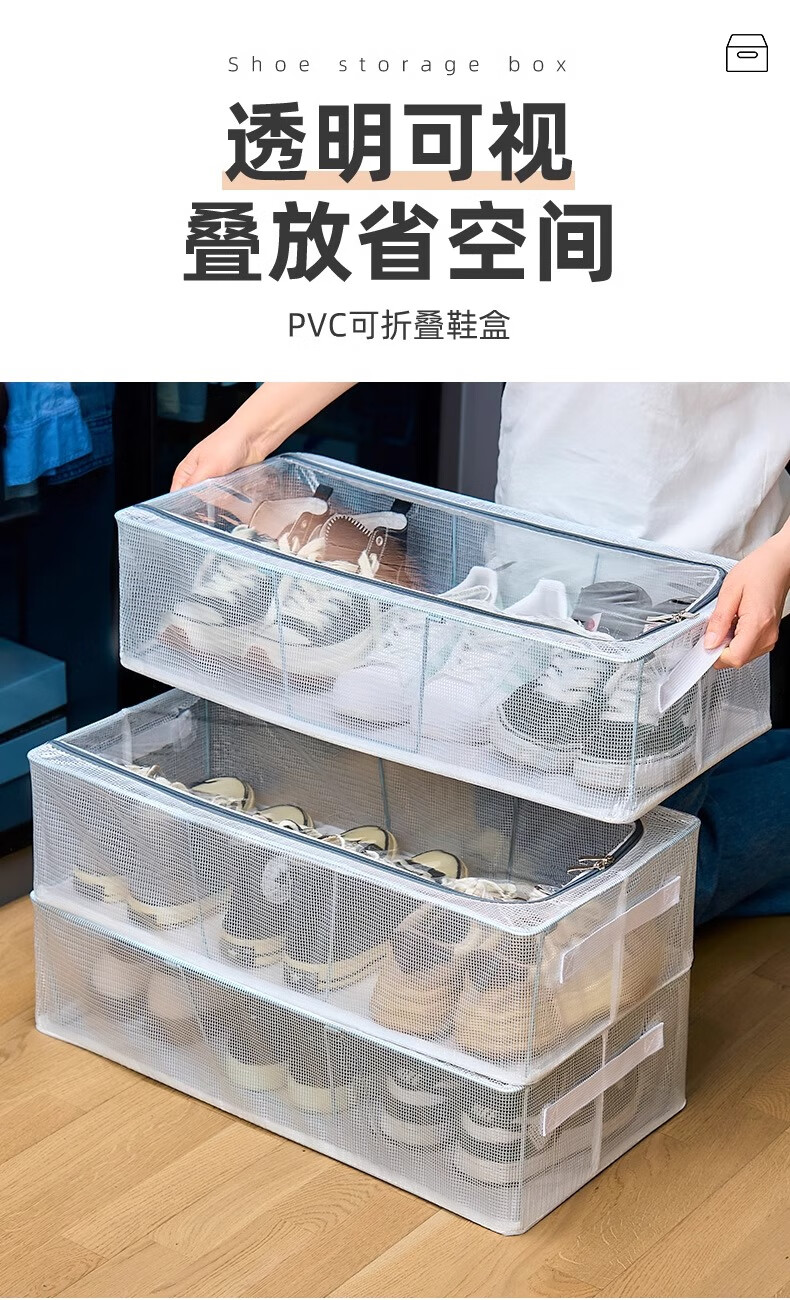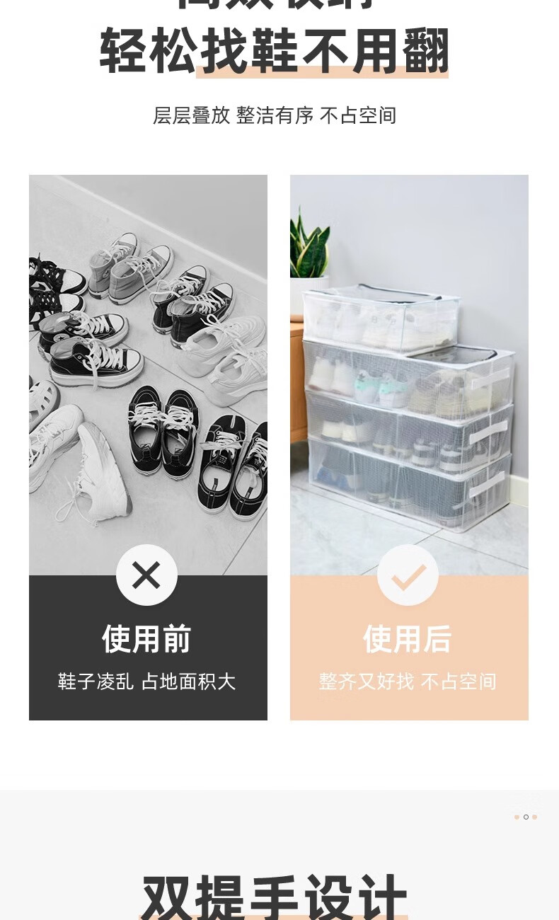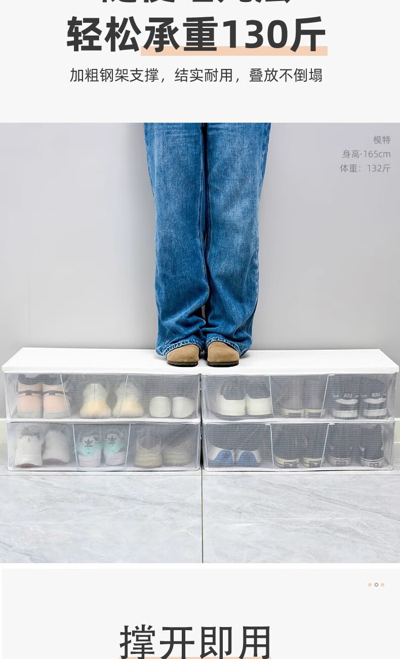 JD Logistics installation-free shoe box storage box thickened dust-proof transparent shoe cabinet artifact storage box folding shoe rack 2 large size 60*30*16cm